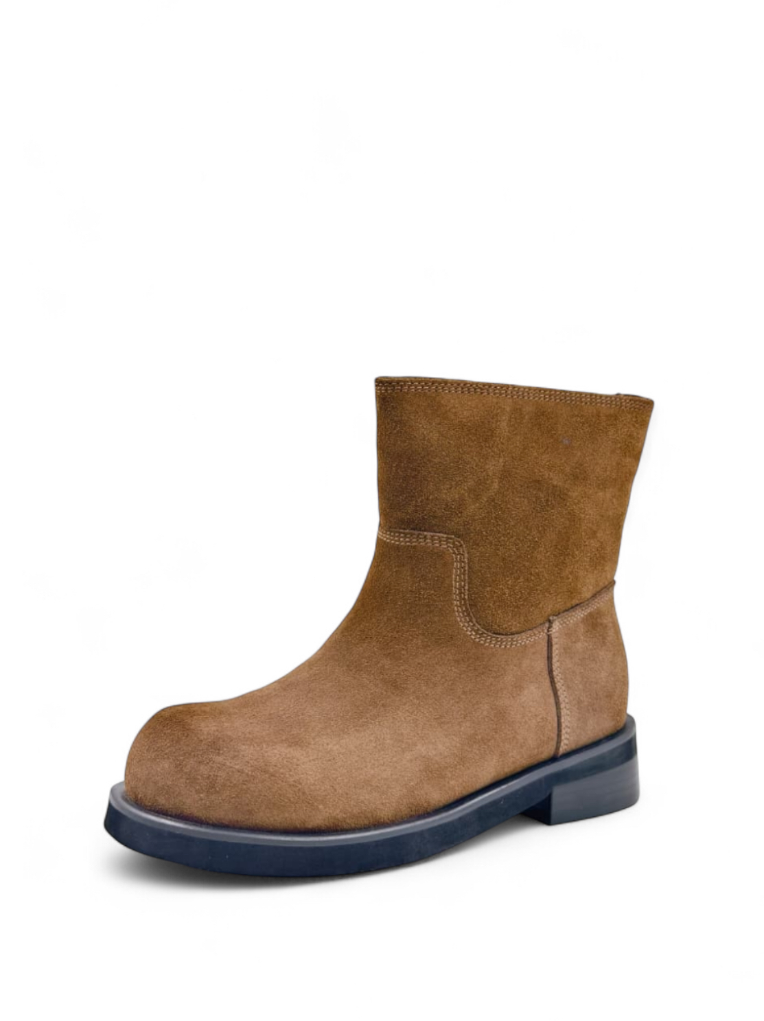 Идеальный выбор для тех, кто ценит стиль и комфорт в холодное время года. Модель отличается круглым мысом, который придаёт обуви изящный и современный вид. Низкий каблук обеспечивает устойчивость и удобство при ходьбе, снижая нагрузку на стопы.