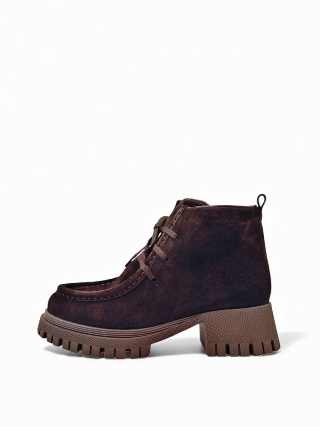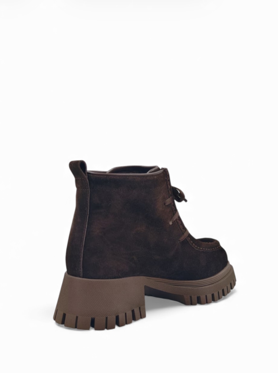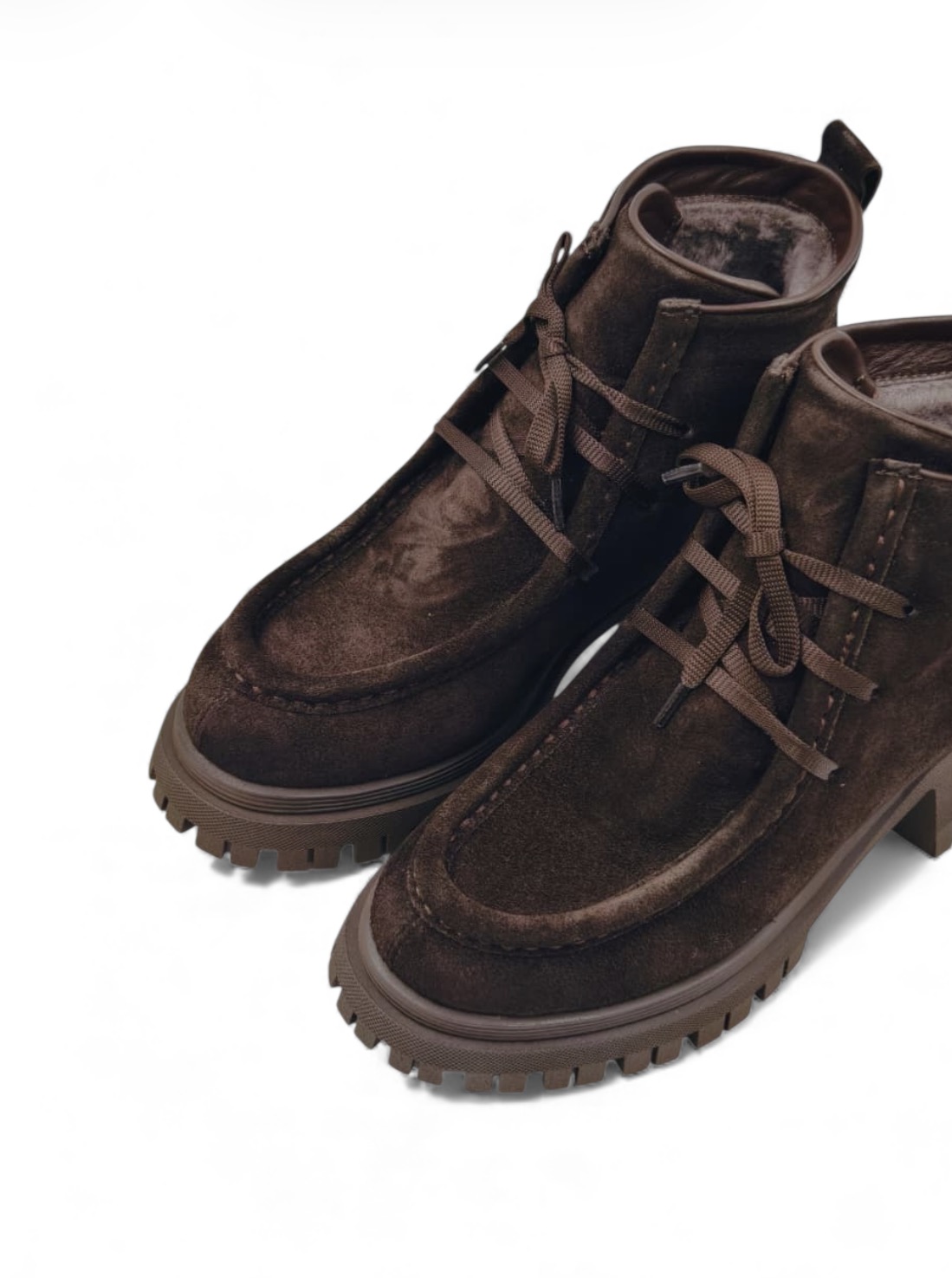 Благодаря использованию натуральной замши, ботинки отличаются особой мягкостью и приятной текстурой. Тракторная подошва обеспечивает отличное сцепление с поверхностью, что делает эти ботинки практичными и удобными для повседневной носки.