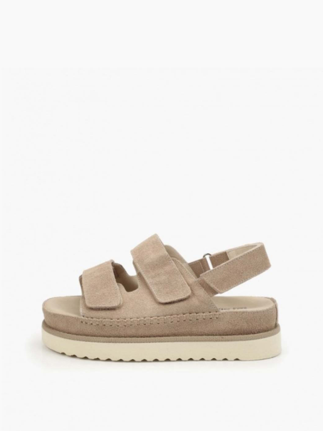 Сандалии из натуральной замши на высокой подошве и липучках.