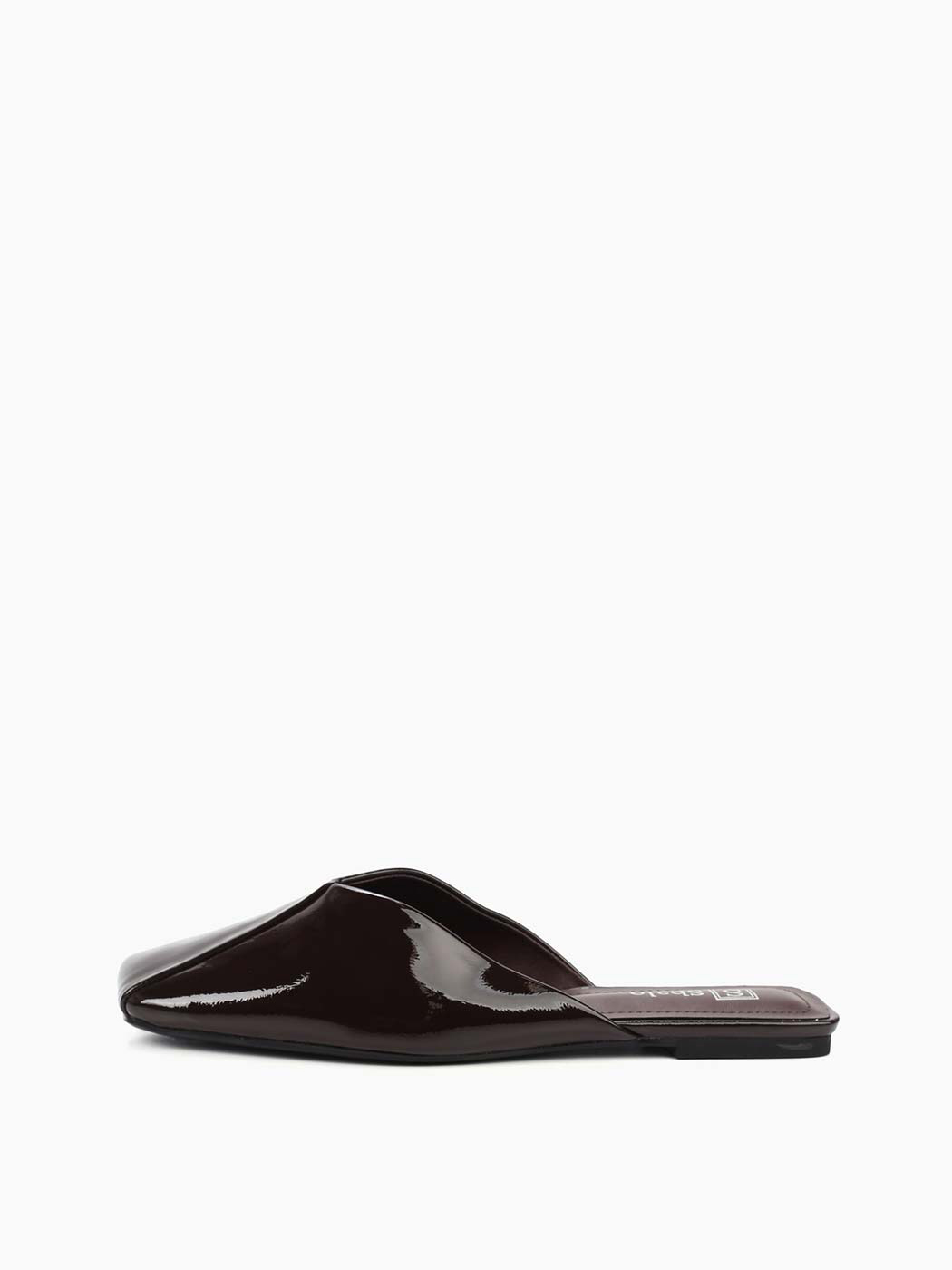 Лакированные тапочки-мюли на плоской подошве подходят как для повседневных, так и более элегантных летних образов.