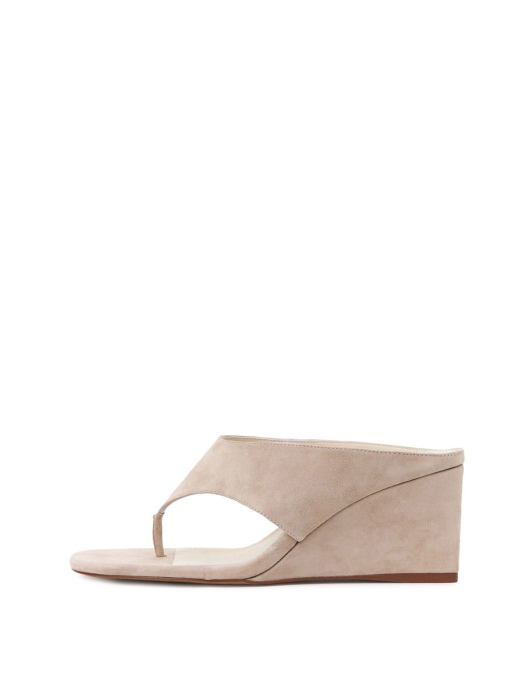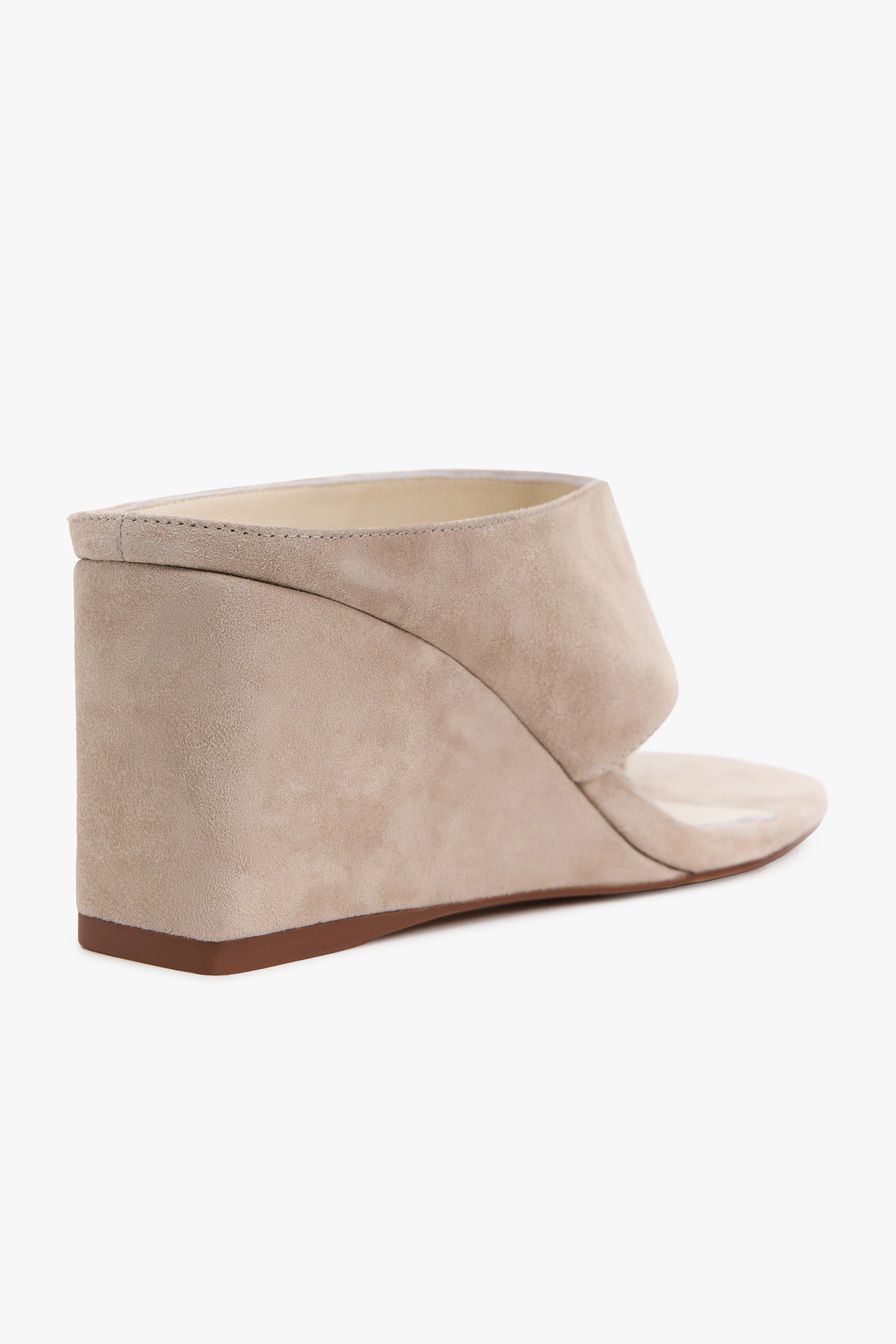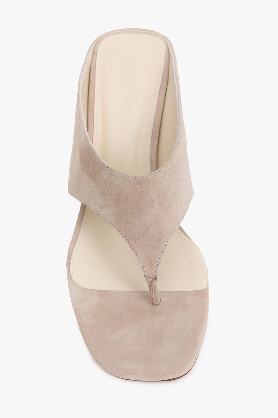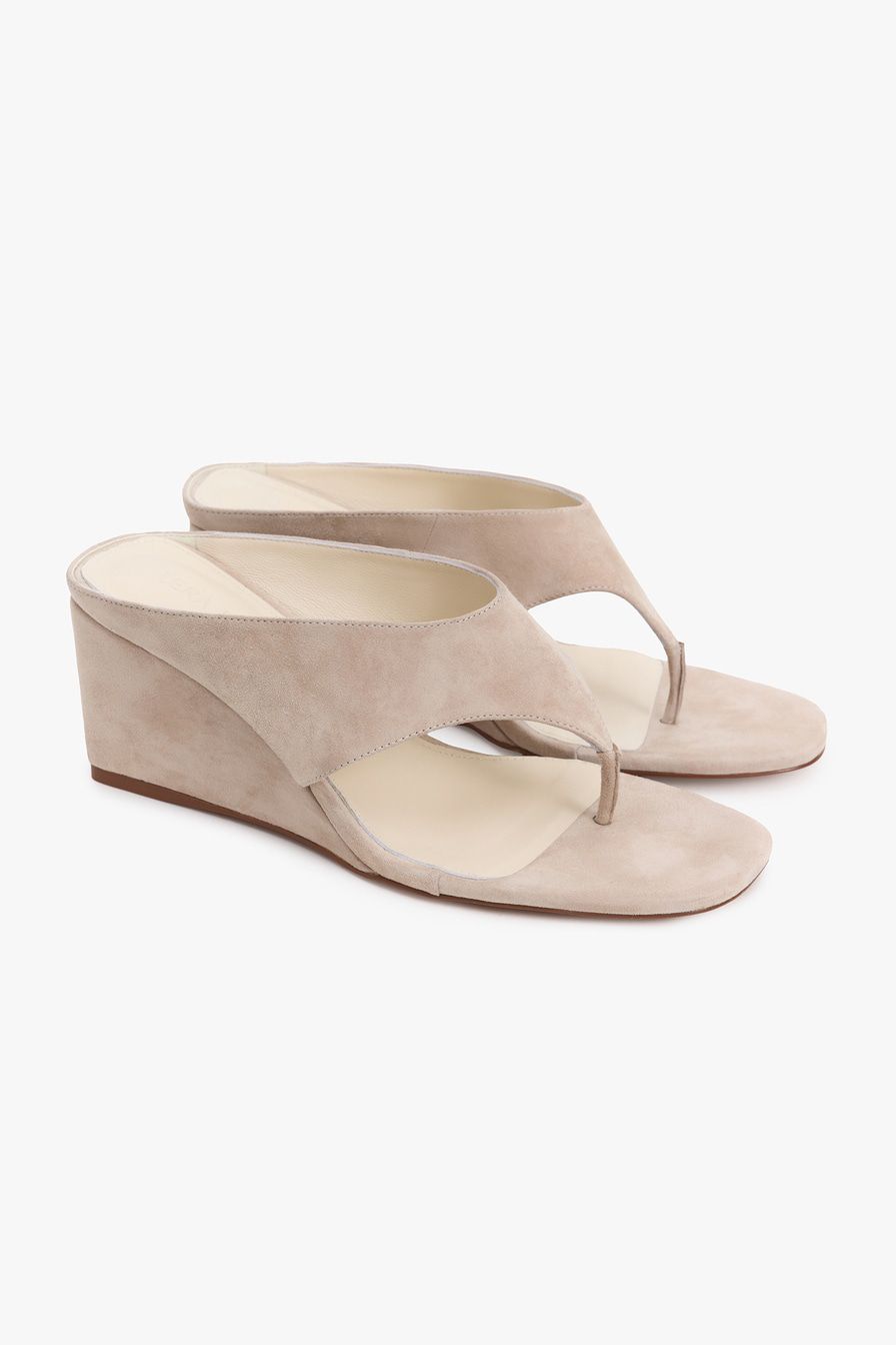 Бежевые босоножки на танкетке выполнены из натуральной замши.