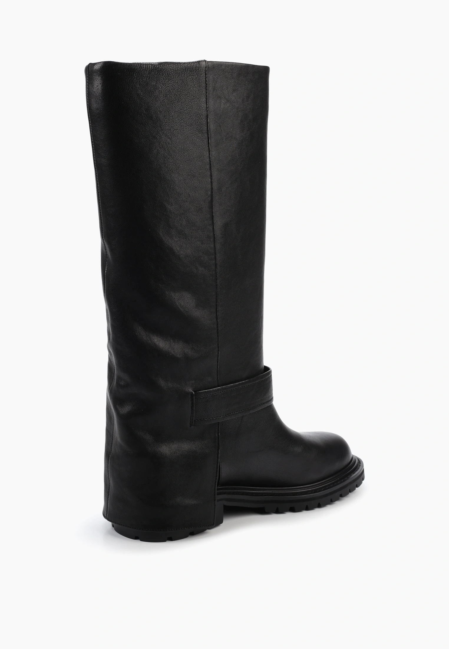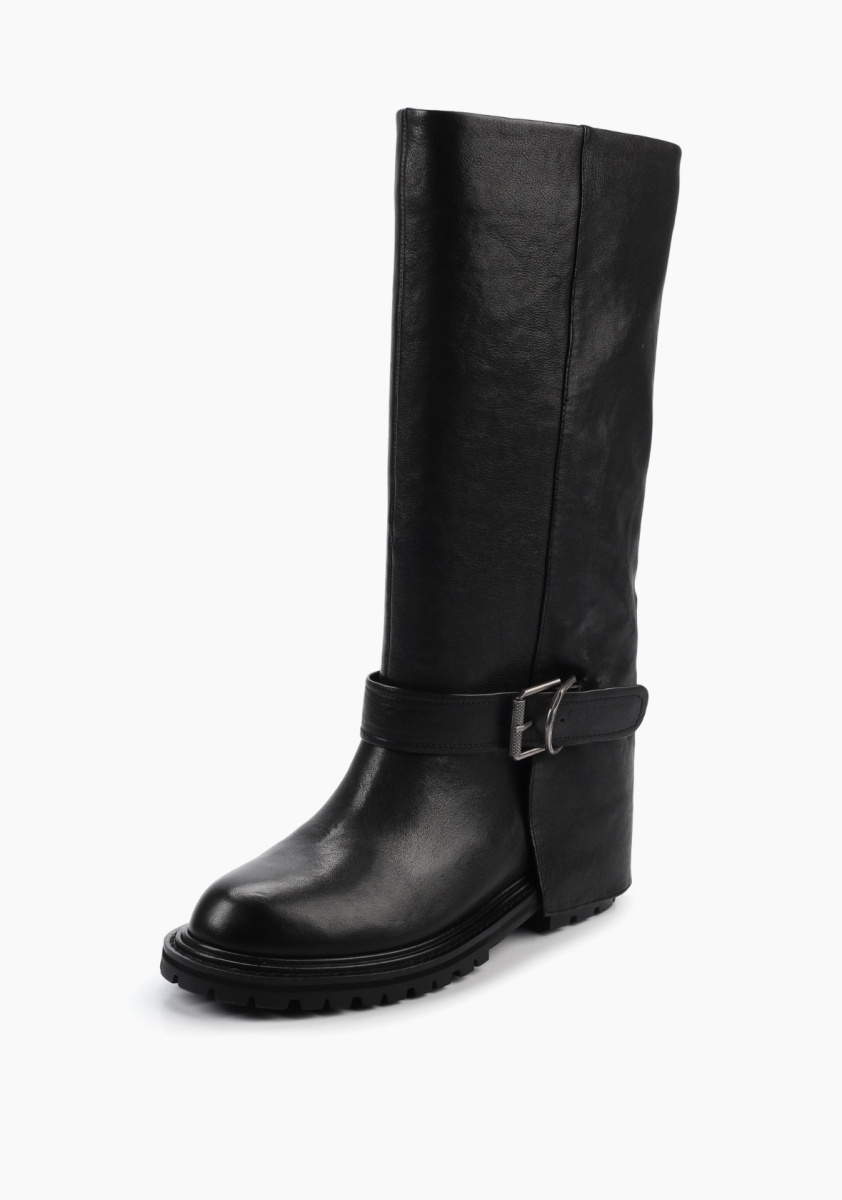 Чёрные сапоги-трубы — стильный и практичный выбор для холодного времени года. Подходят для различных стилей одежды, добавляя в look нотку дерзости и современности.