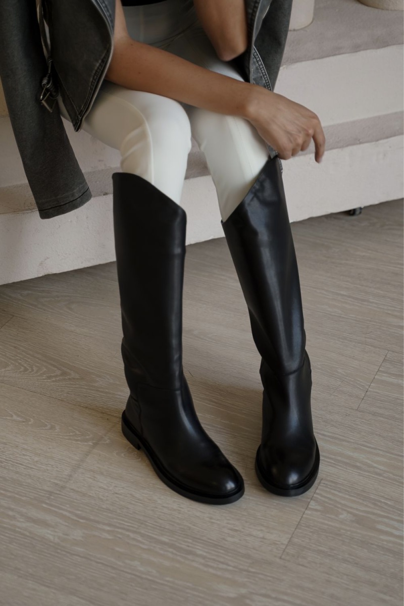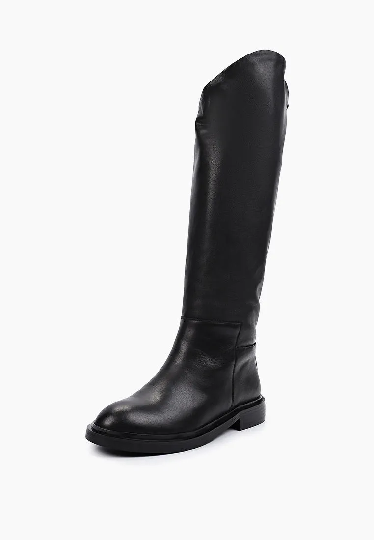 Жокейские сапоги чёрного цвета изготовлены из натуральной кожи.