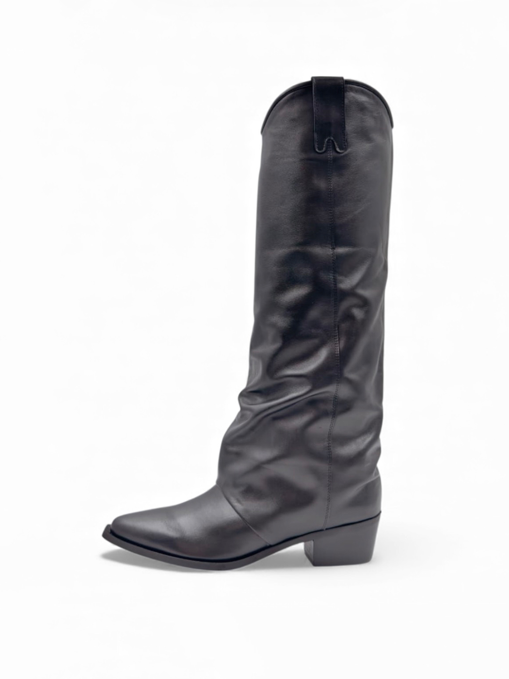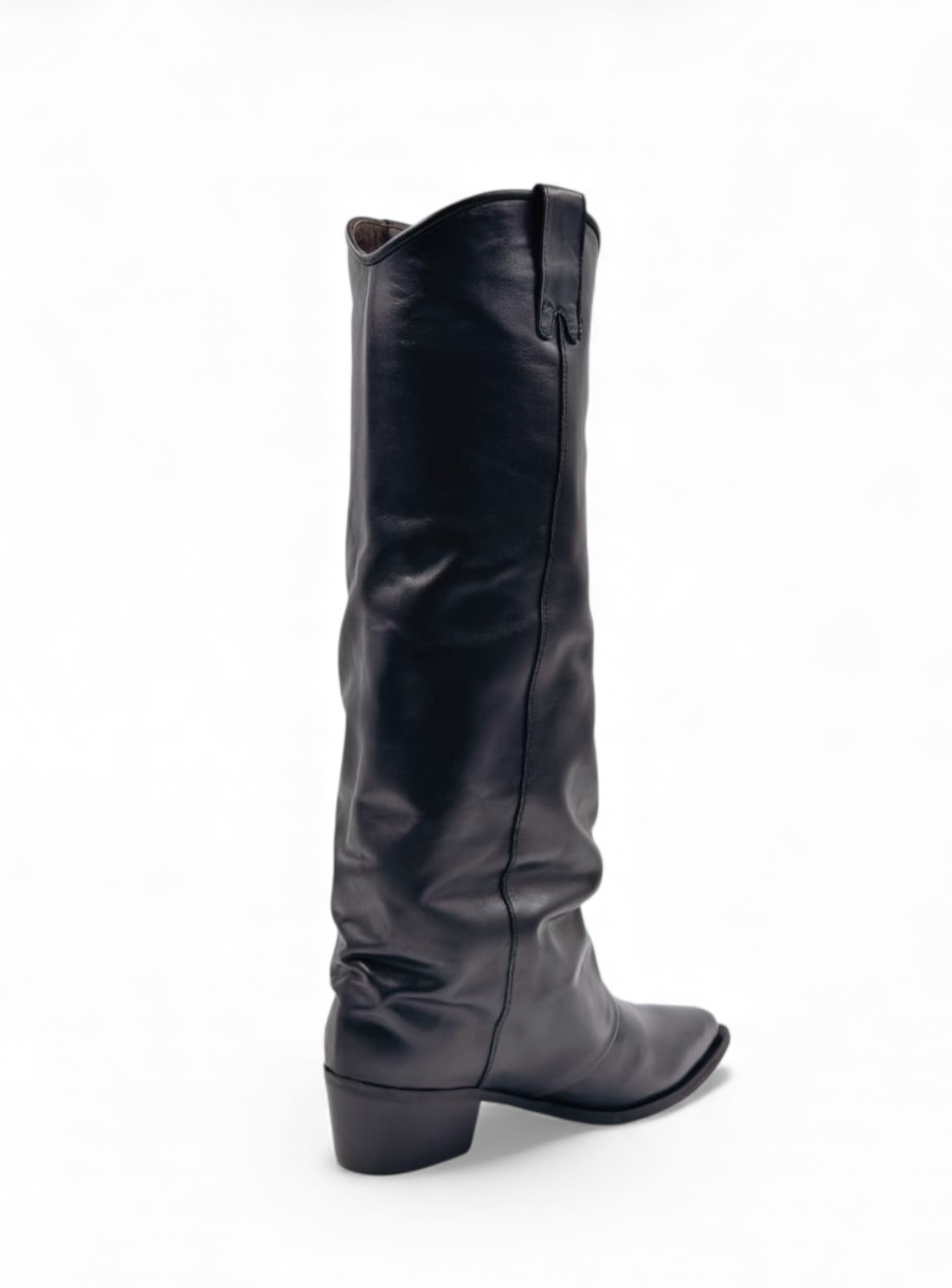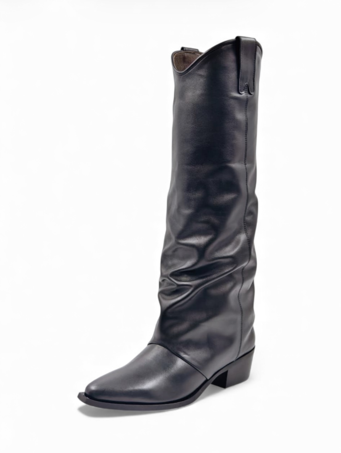 Сапоги имеют удобную форму и устойчивый каблук, что обеспечивает комфорт при ходьбе. Высота голенища защищает ноги от ветра и создаёт стильный образ.