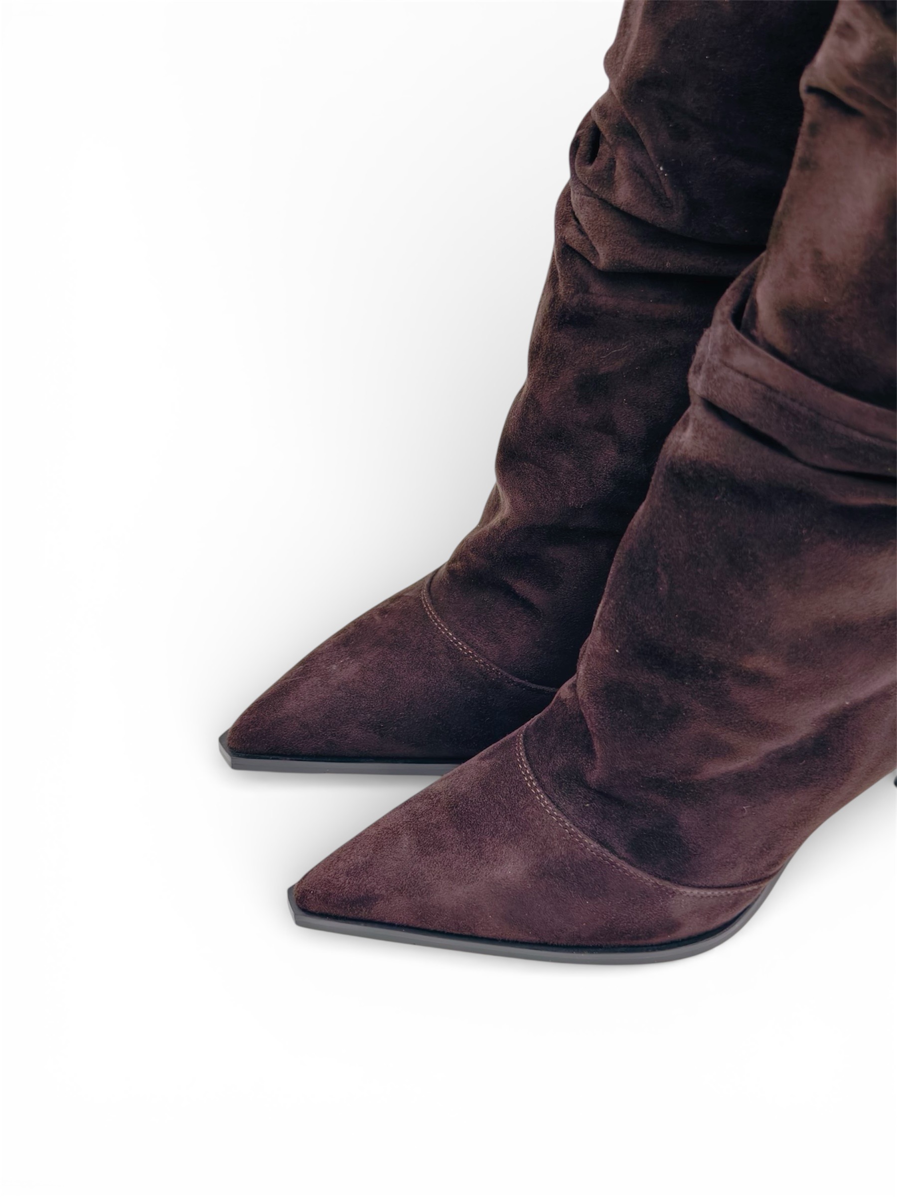 Стильная и комфортная обувь, которая станет отличным дополнением к вашему гардеробу. Острый носок придаёт сапогам современный и элегантный вид. Натуральная замша обеспечивает мягкость и приятную текстуру, а также долговечность и устойчивость к износу. Высокий голенище защищает ногу и создаёт дополнительный комфорт. Эти сапоги идеально подойдут для переменчивой погоды в межсезонье и станут основой для создания различных образов — от повседневных до более изысканных.