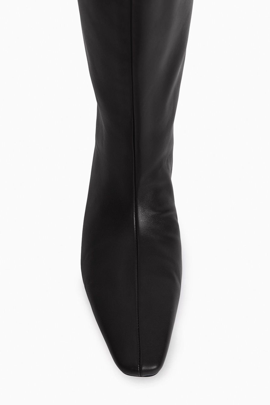 «Для повседневного лука сочетайте сапоги с облегающим трикотажным платьем-мини и двубортным пальто свободного кроя».