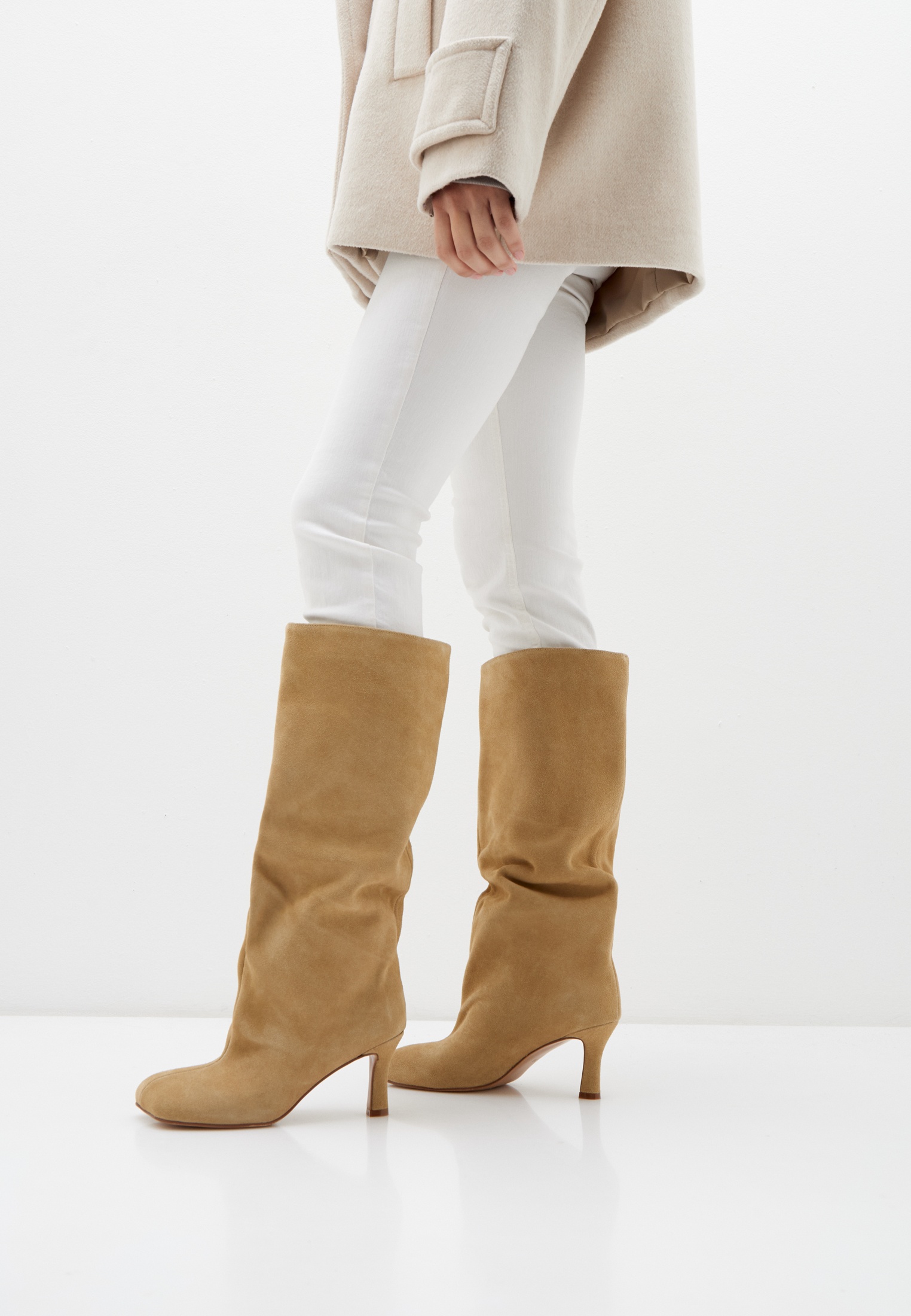 Сапоги с квадратным мысом из натуральной замши
