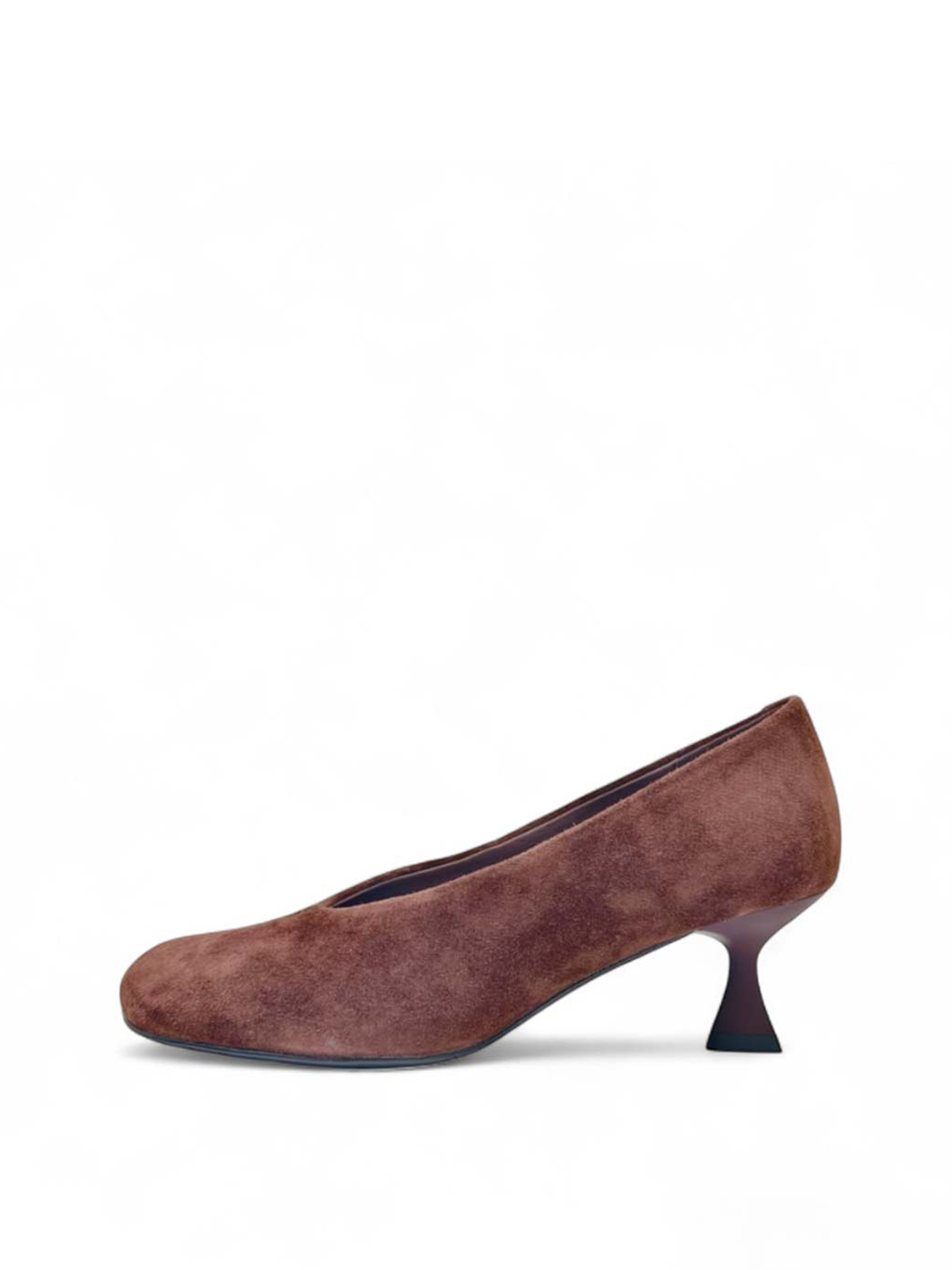 Замшевые туфли с каблуком-рюмочкой и квадратным мыском.
