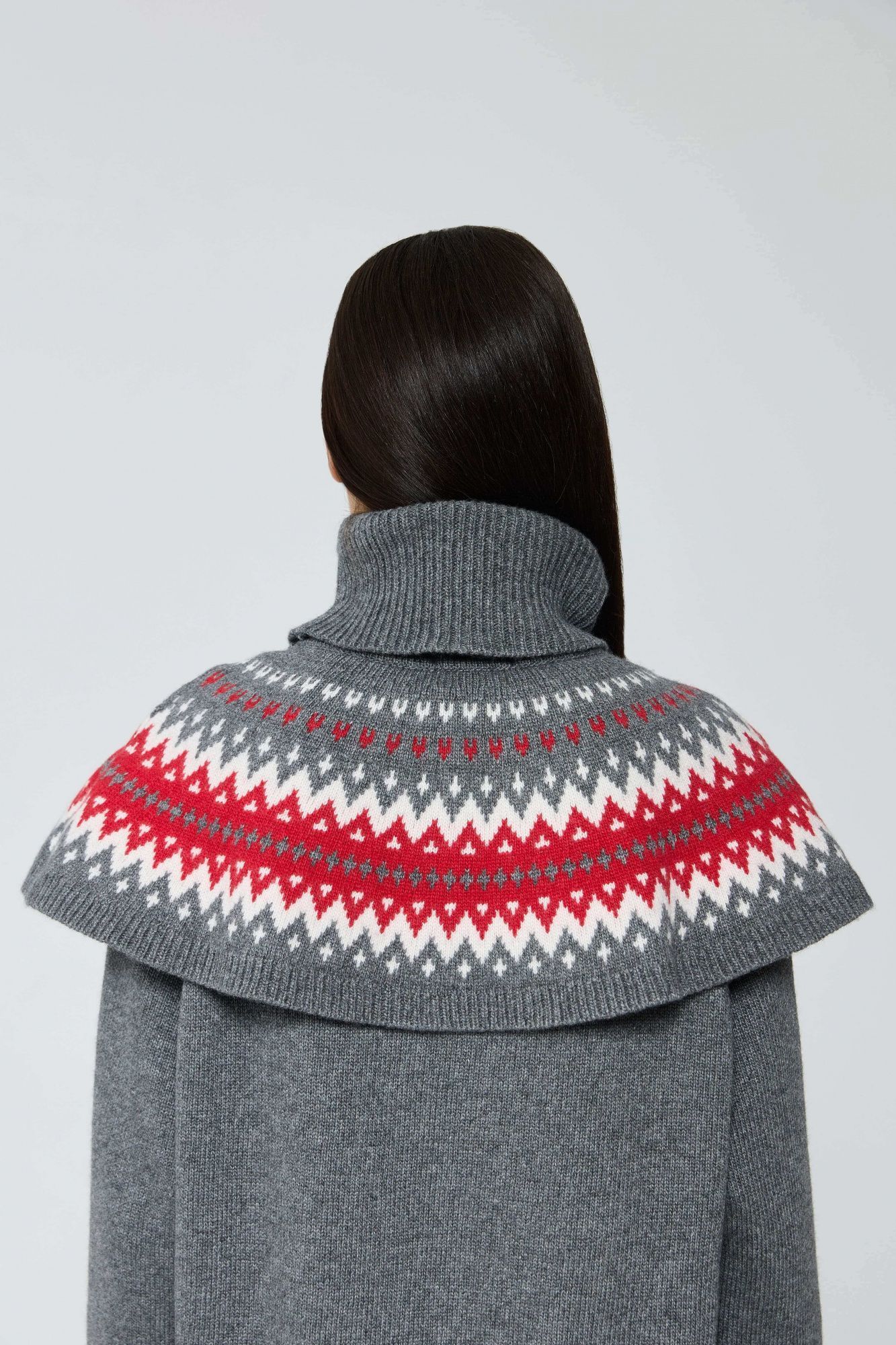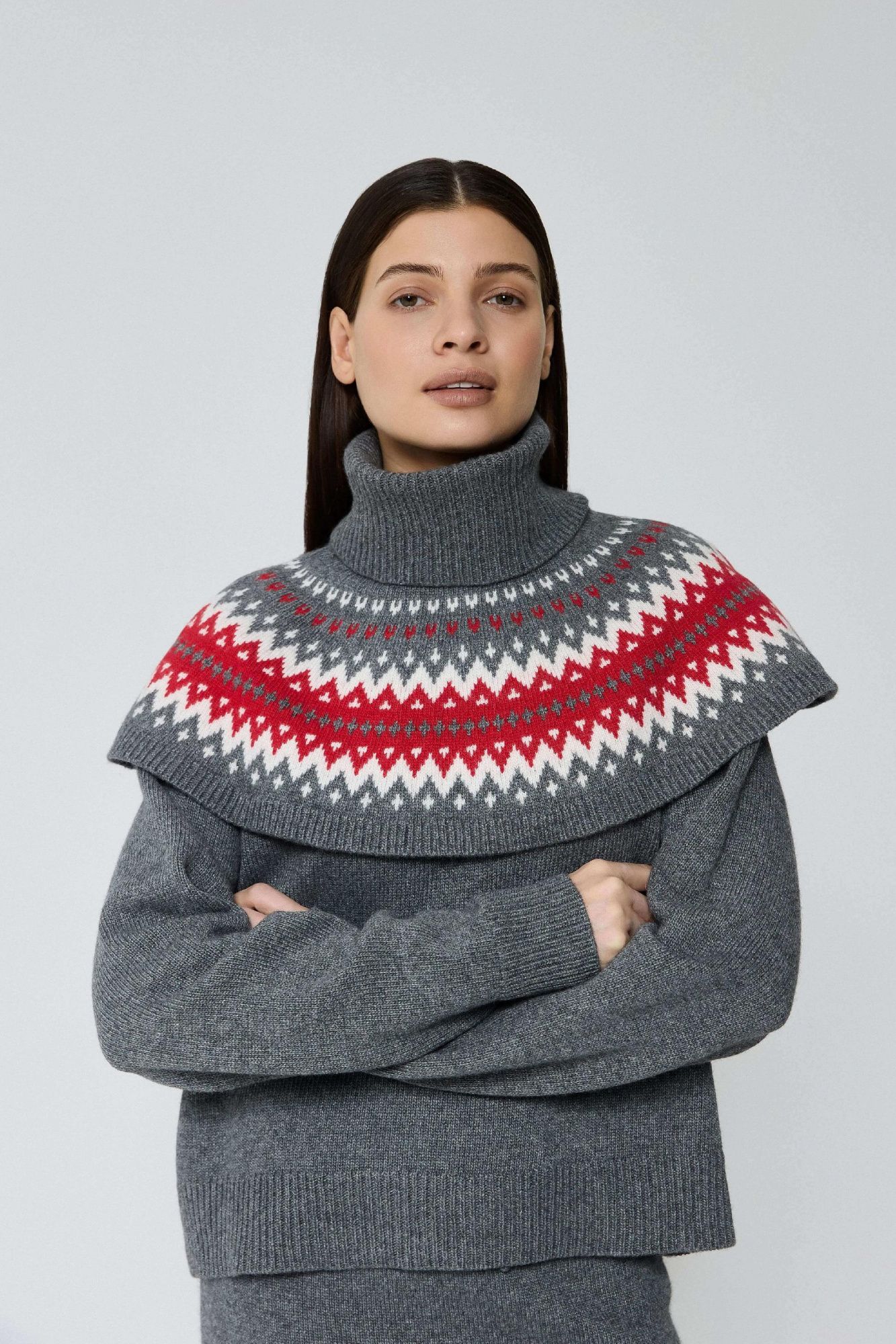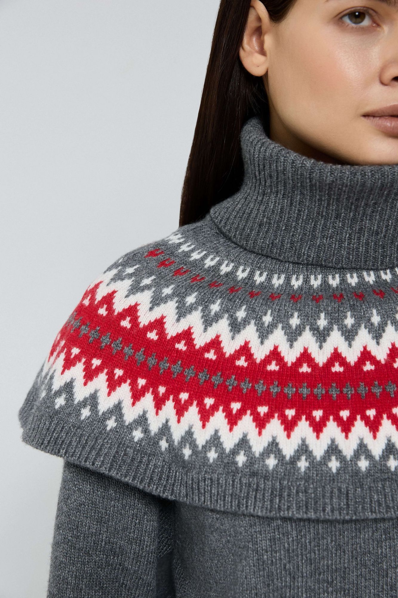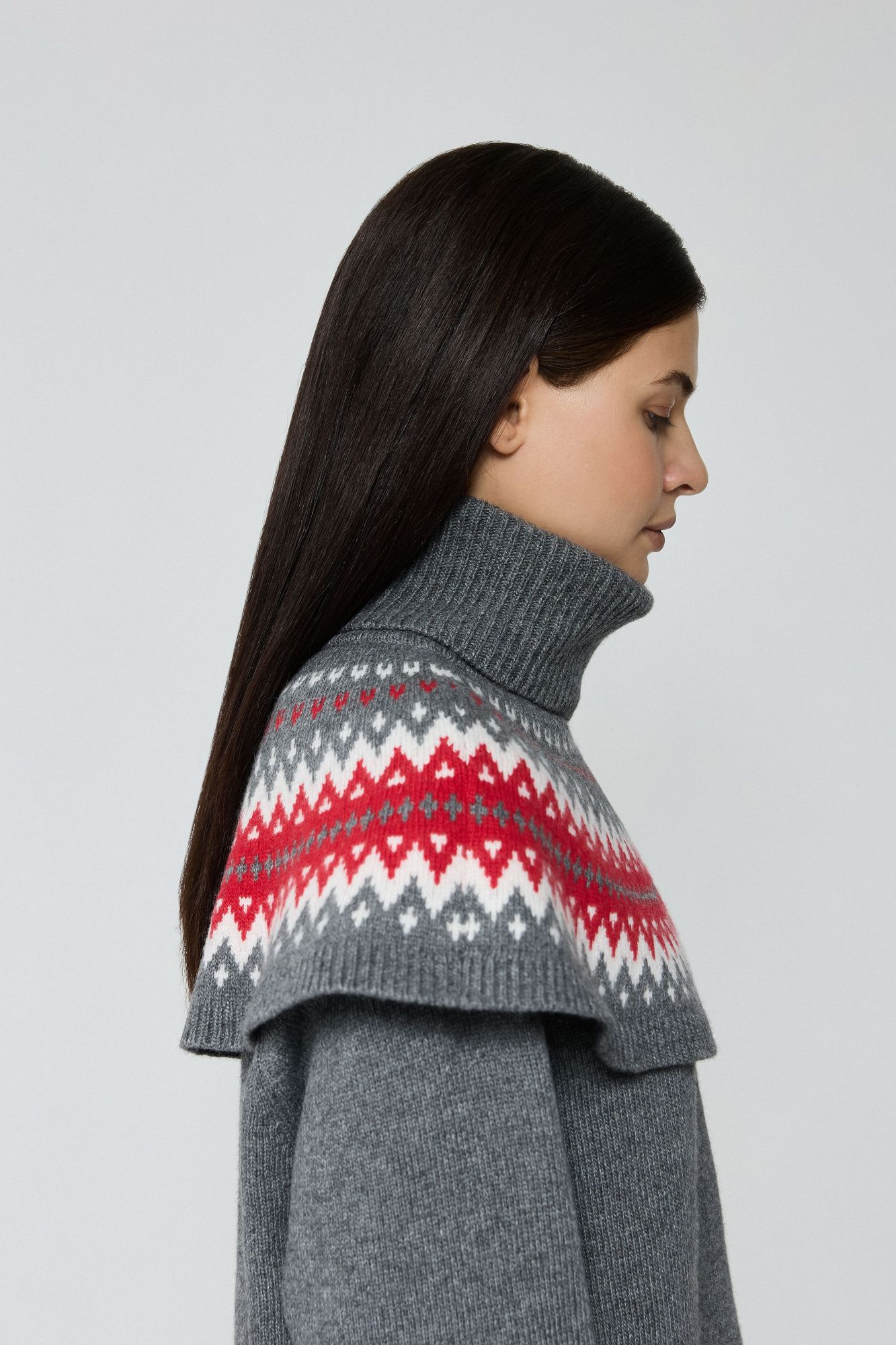 Манишка с узором связана из микса кашемира, шерсти мериноса и вискозы; нежной и комфортной к коже пряжи, сделанной в Италии.