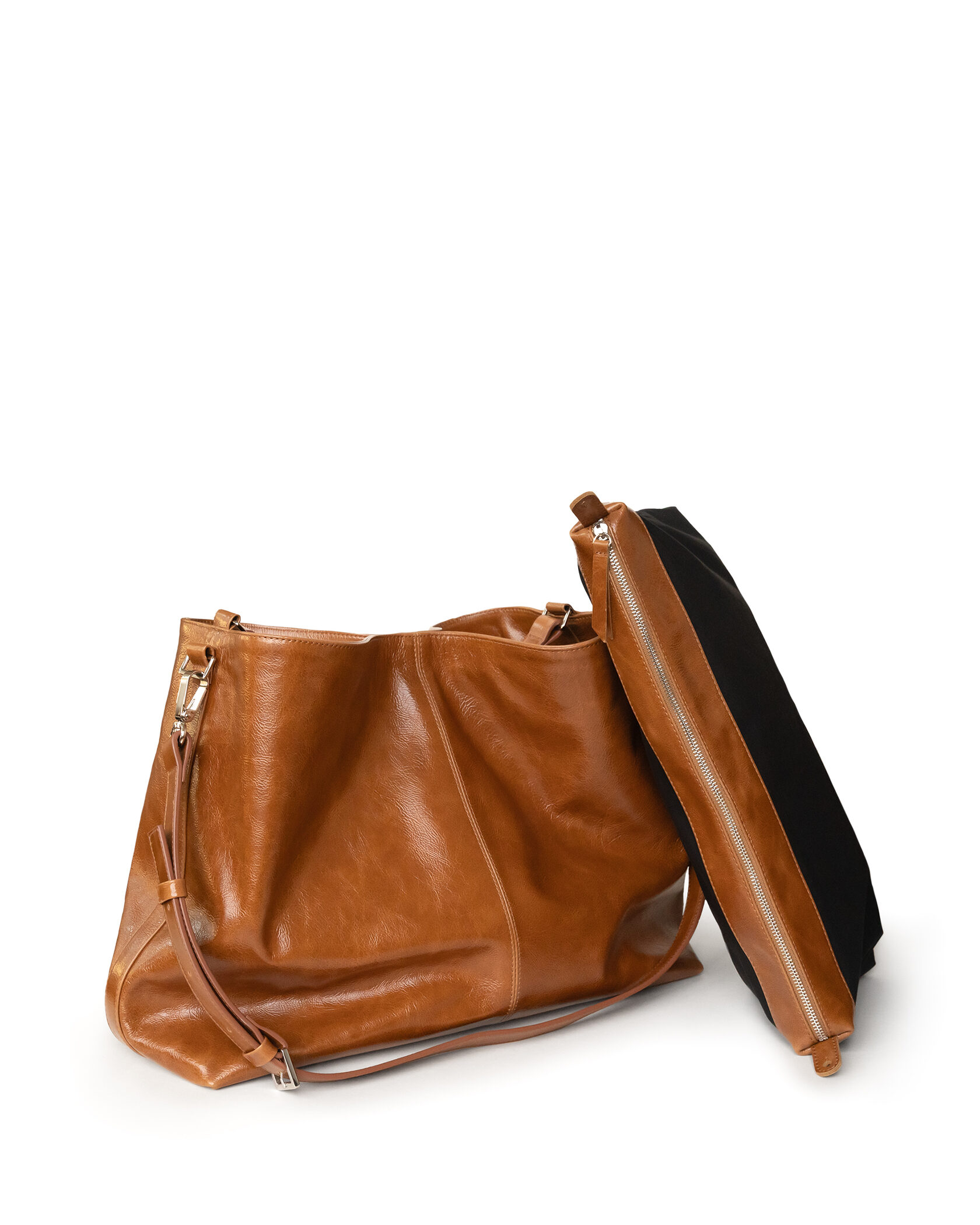 Внутри текстильный подклад черного цвета, карман на молнии с одной стороны и два открытых кожаных кармашка с другой.