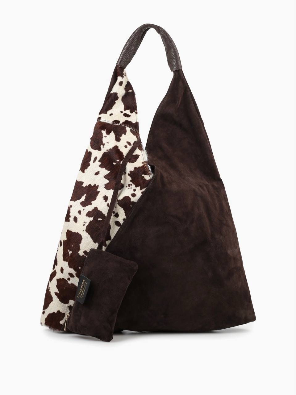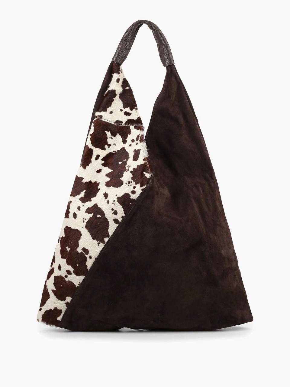 Вместительный шоппер, выполненный из натуральной замши и кожи. Отлично впишется в casual образы для прогулки или комфортного шоппинга.