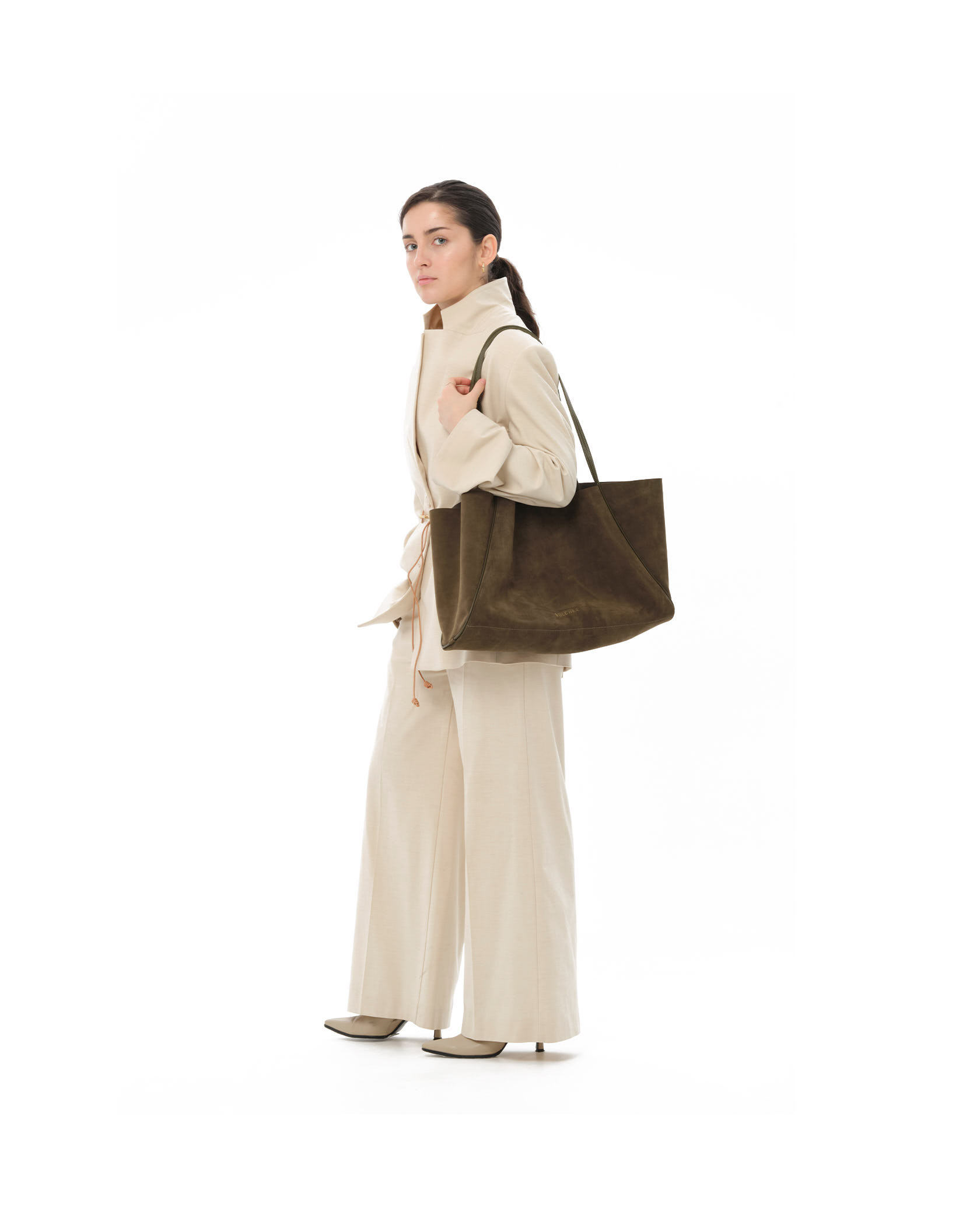 Мягкий вместительный шопер цвета хаки