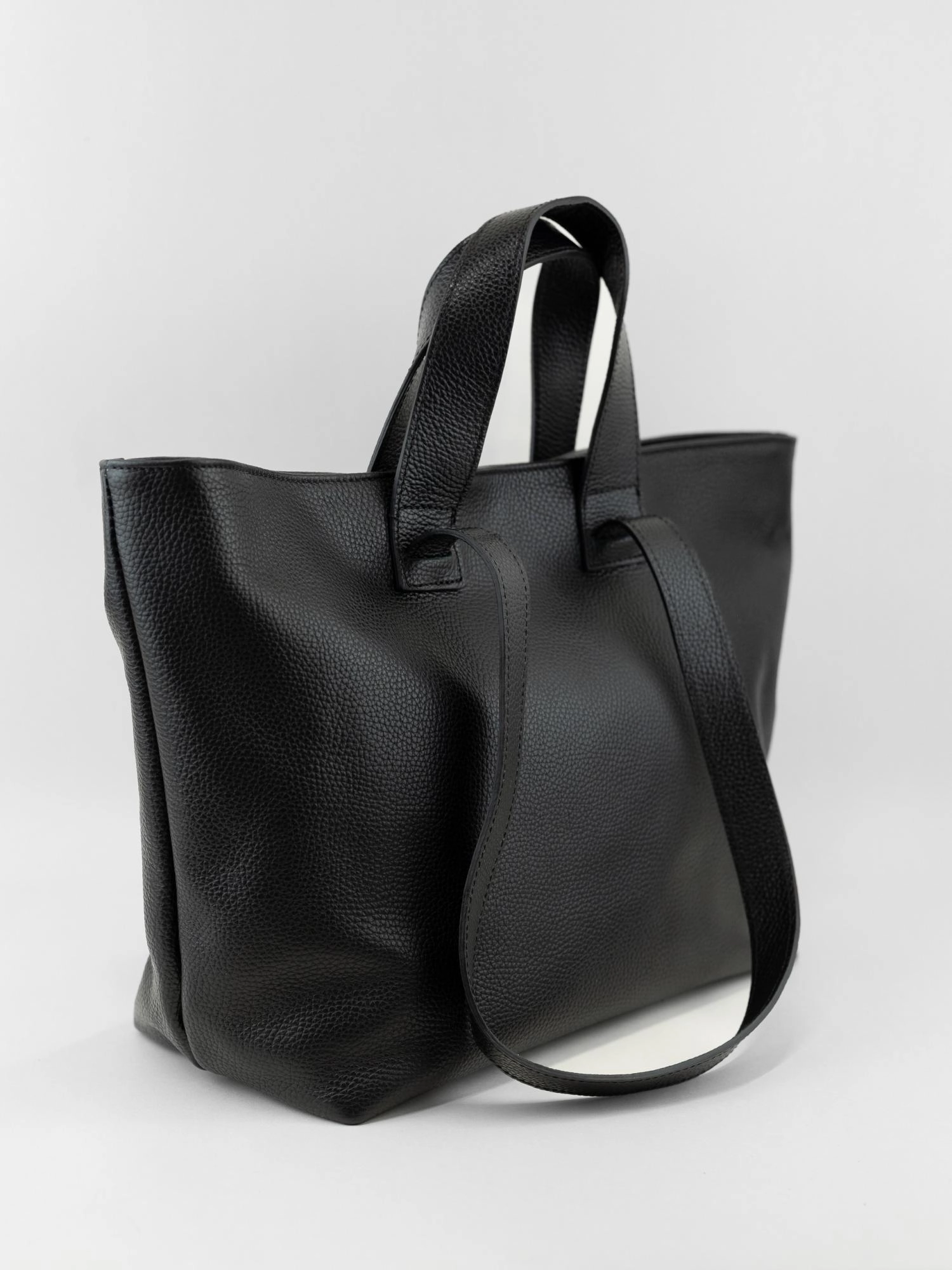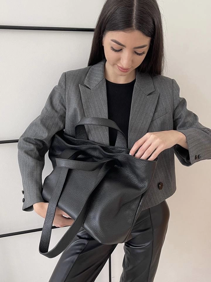 Вместительная сумка-шопер формата А4. Внутри - два отделения, боковые карманы для мелочей и разделительное отделение на молнии.Яркая деталь декора - удлиненные ручки, позволяющие комфортно носить сумку на плече. Модель дополняют удобные короткие ручки, чтобы при необходимости взять аксессуар в руку.