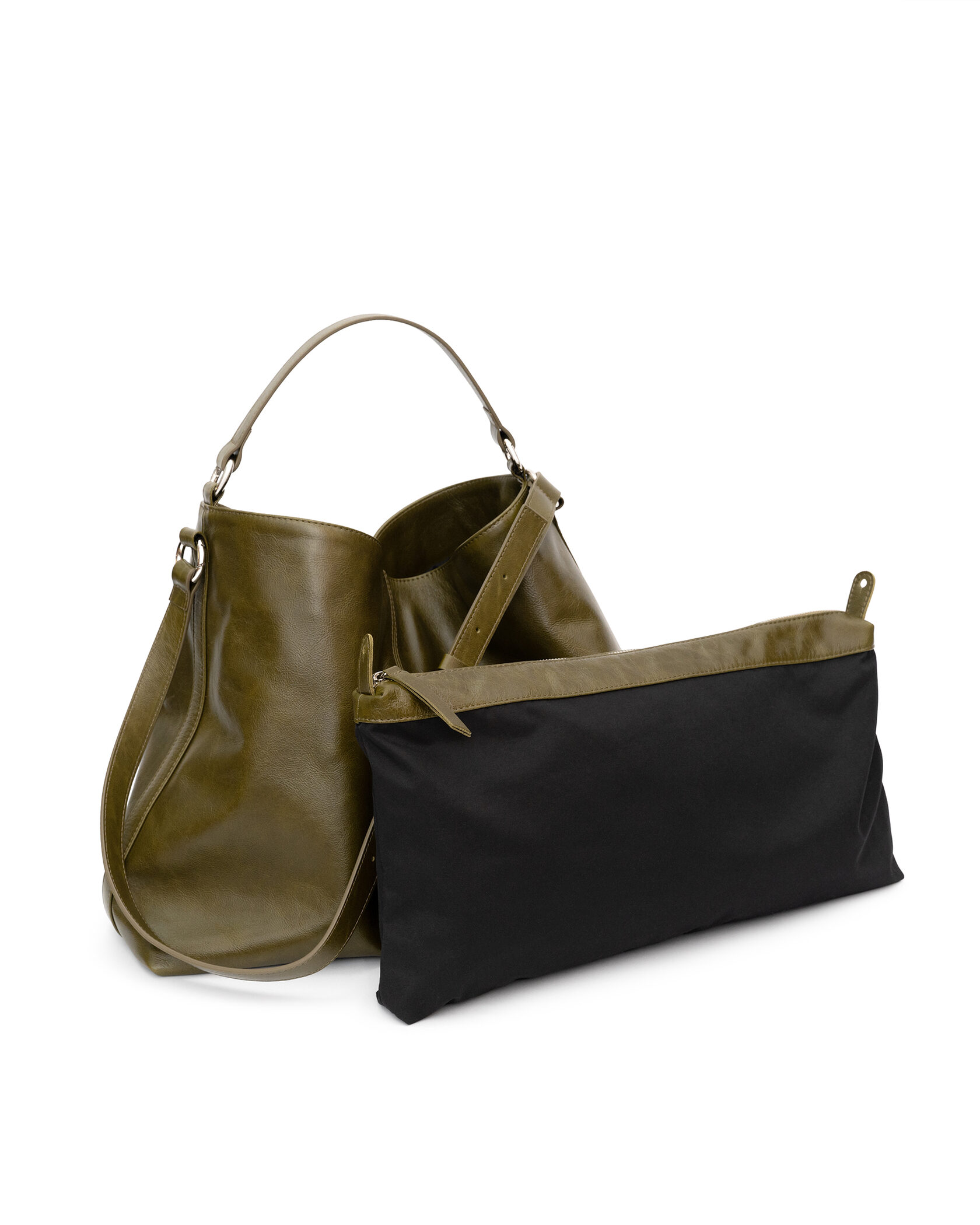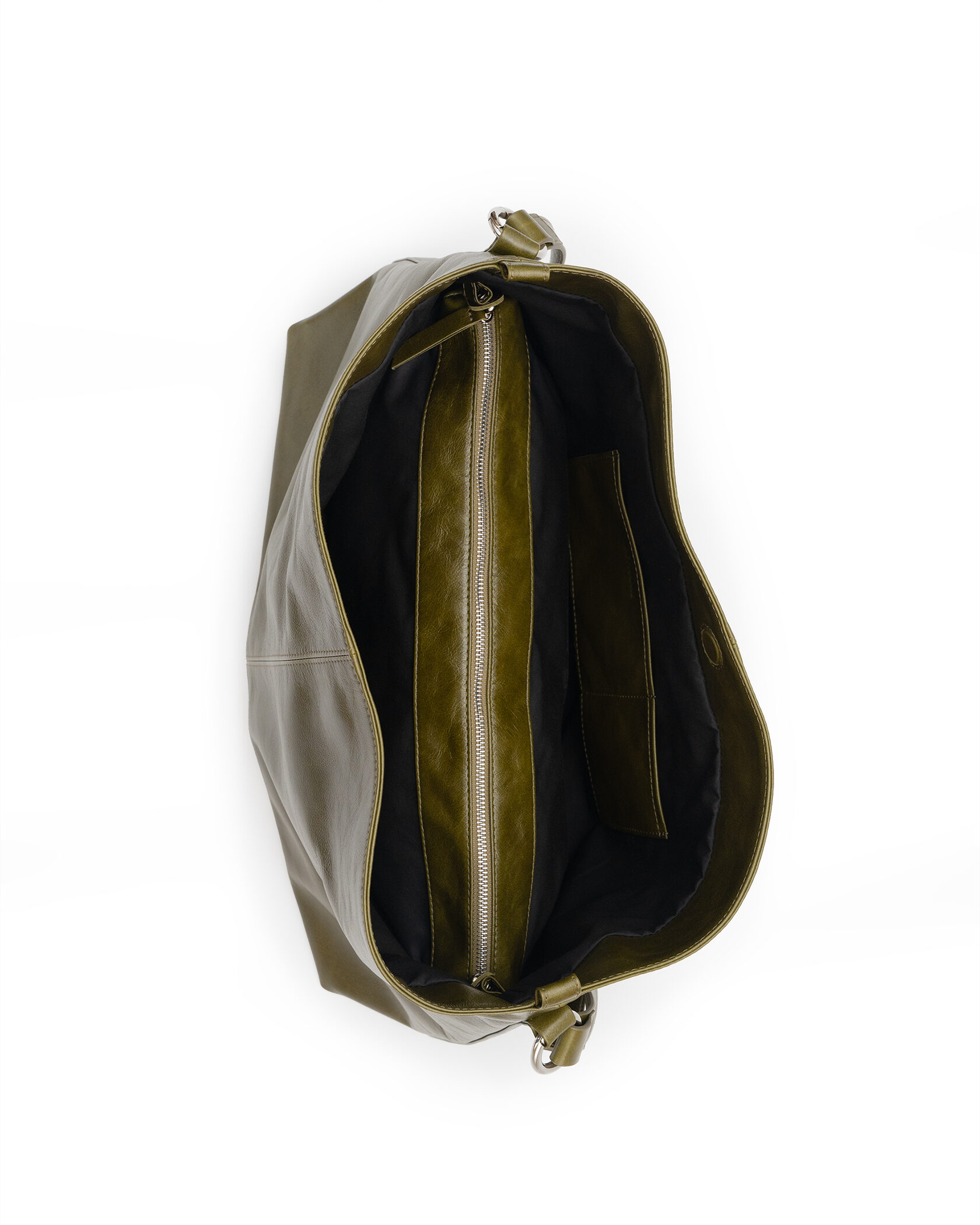 Внутри текстильный подклад черного цвета, карман на молнии с одной стороны и два открытых кожаных кармашка с другой.