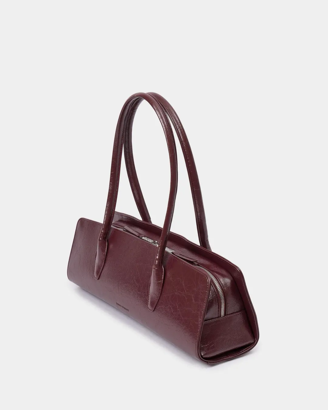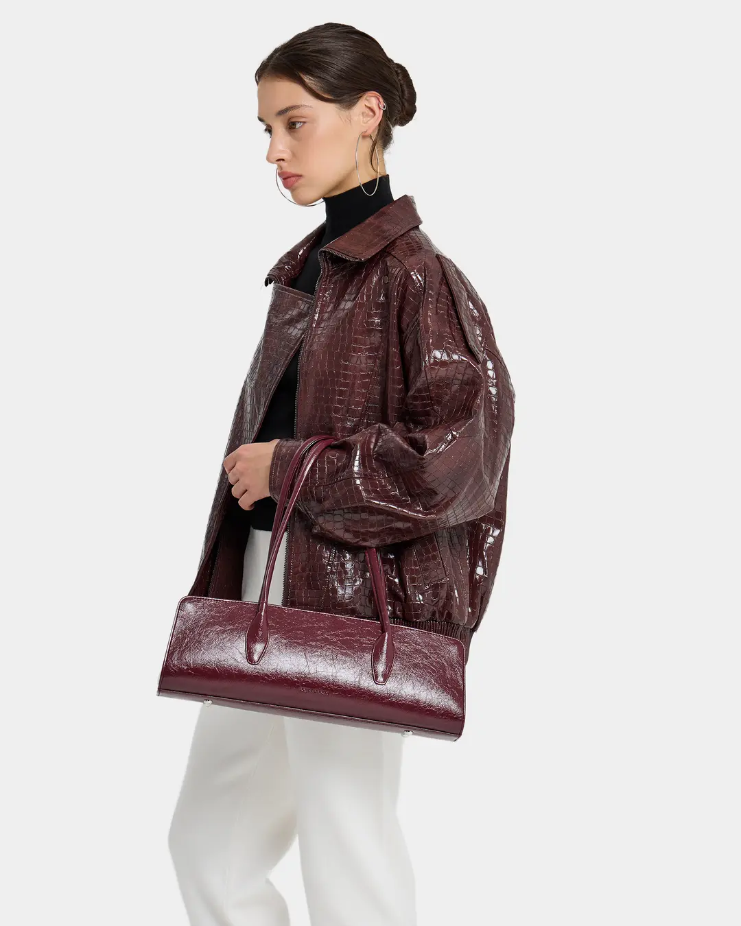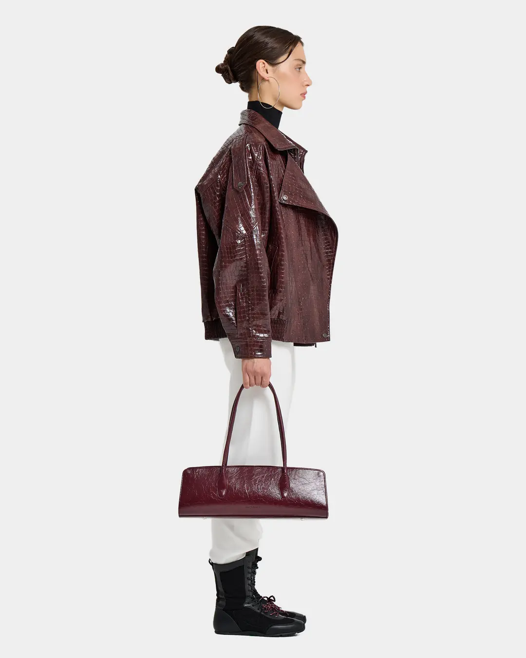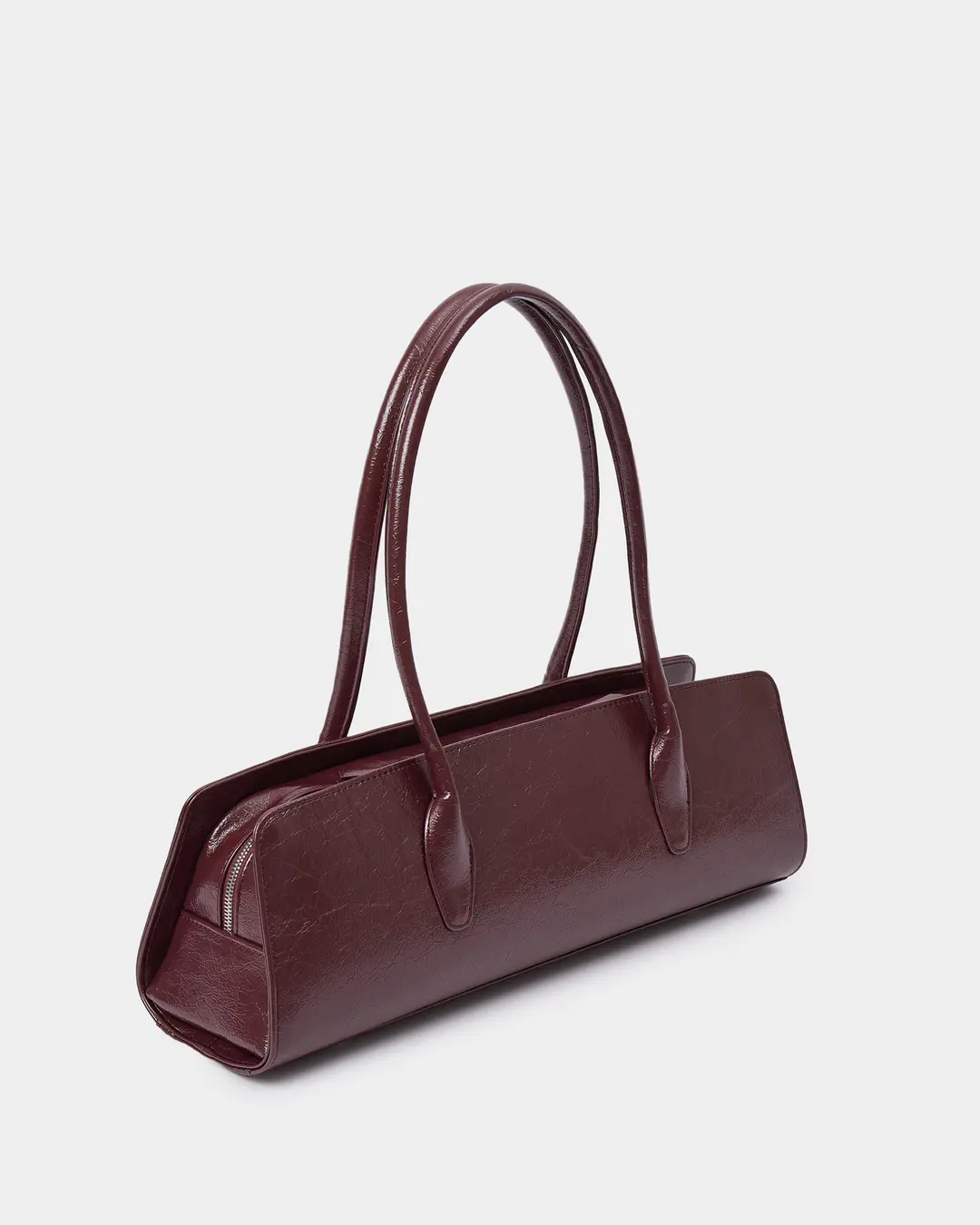 Утончённая сумка-такса с тонкими ручками из экокожи в бордовом цвете