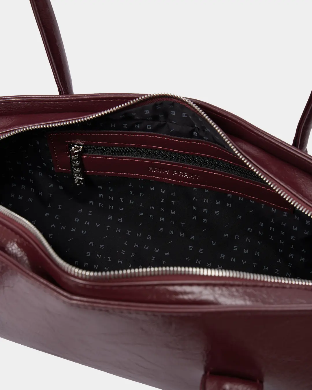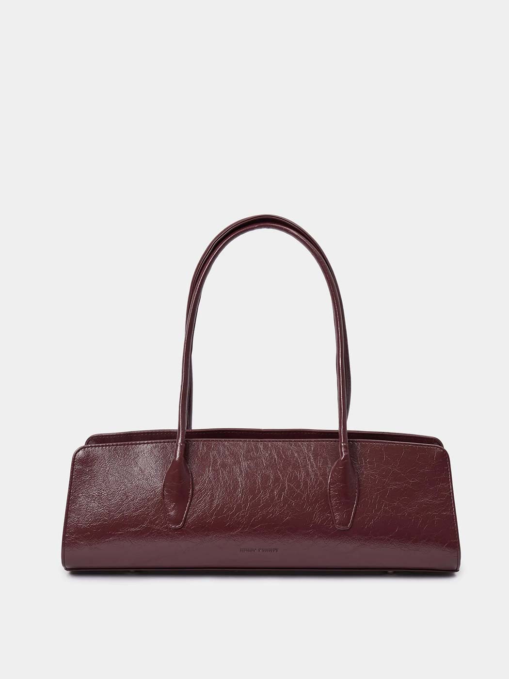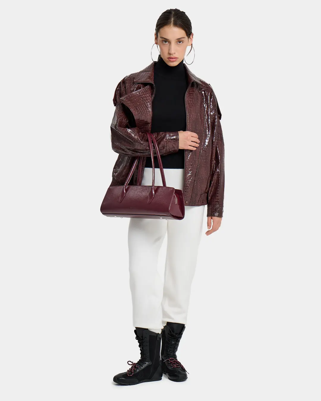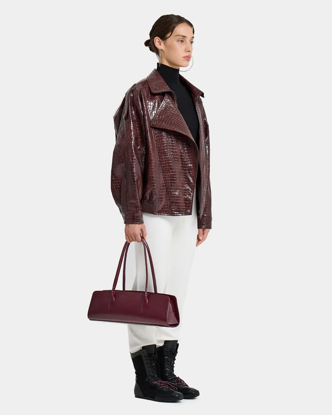 Утончённая сумка-такса с тонкими ручками из экокожи в бордовом цвете