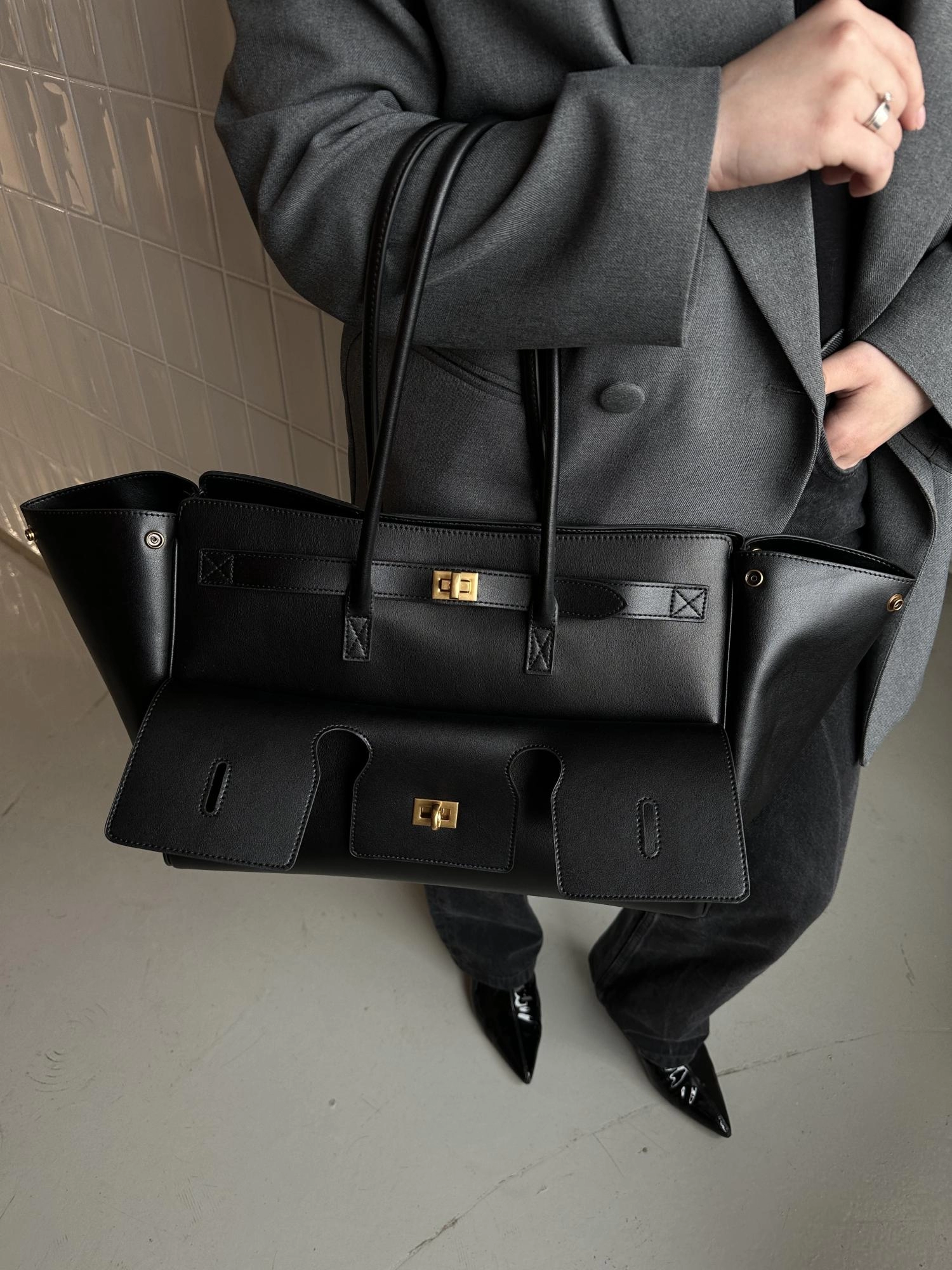 Вместительная сумка на каждый день. Внутри одно отделение,сбоку карман на молнии. Поместятся документы формата А4. Сумочка носится на плече, на сгибе руки или в руке.