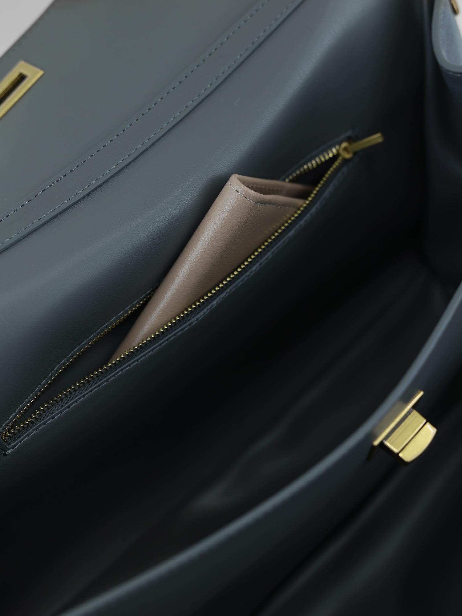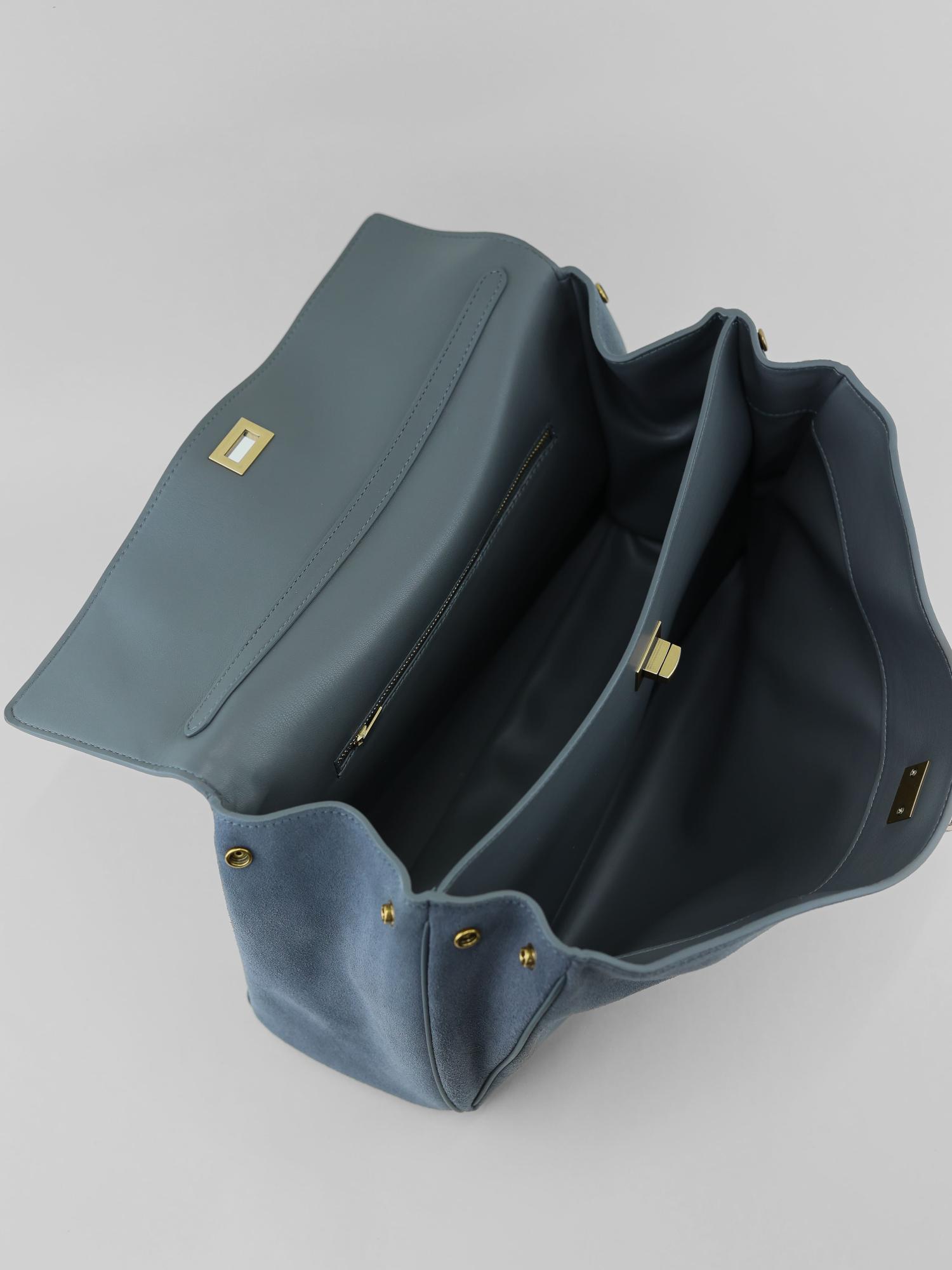 Сумка выполнена из натуральной кожи, закрывается перекидным клапаном на фурнитуру. Внутри два отделения, сбоку отделение на молнии. Поместятся документы формата А4. Снаружи сзади два кармана. Сумочка носится на плече, на сгибе руки или в руке. Прилагается длинный ремешок на плечо, длина 116 см (регулируется).