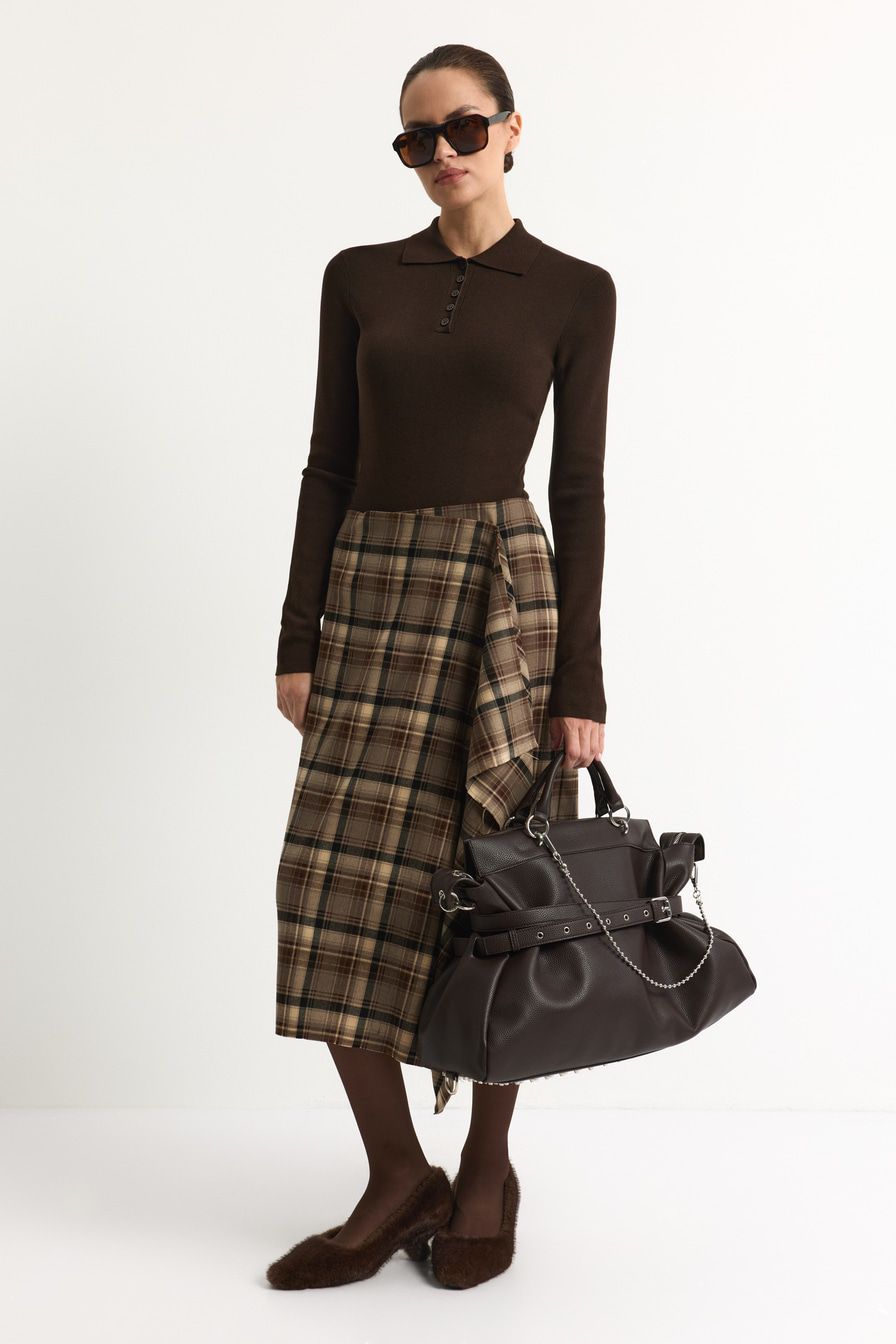 «Для повседневного лука сочетайте сумку с брюками прямого кроя, шерстяным джемпером, однобортным пальто приталенного кроя и ботильонами с широким голенищем».