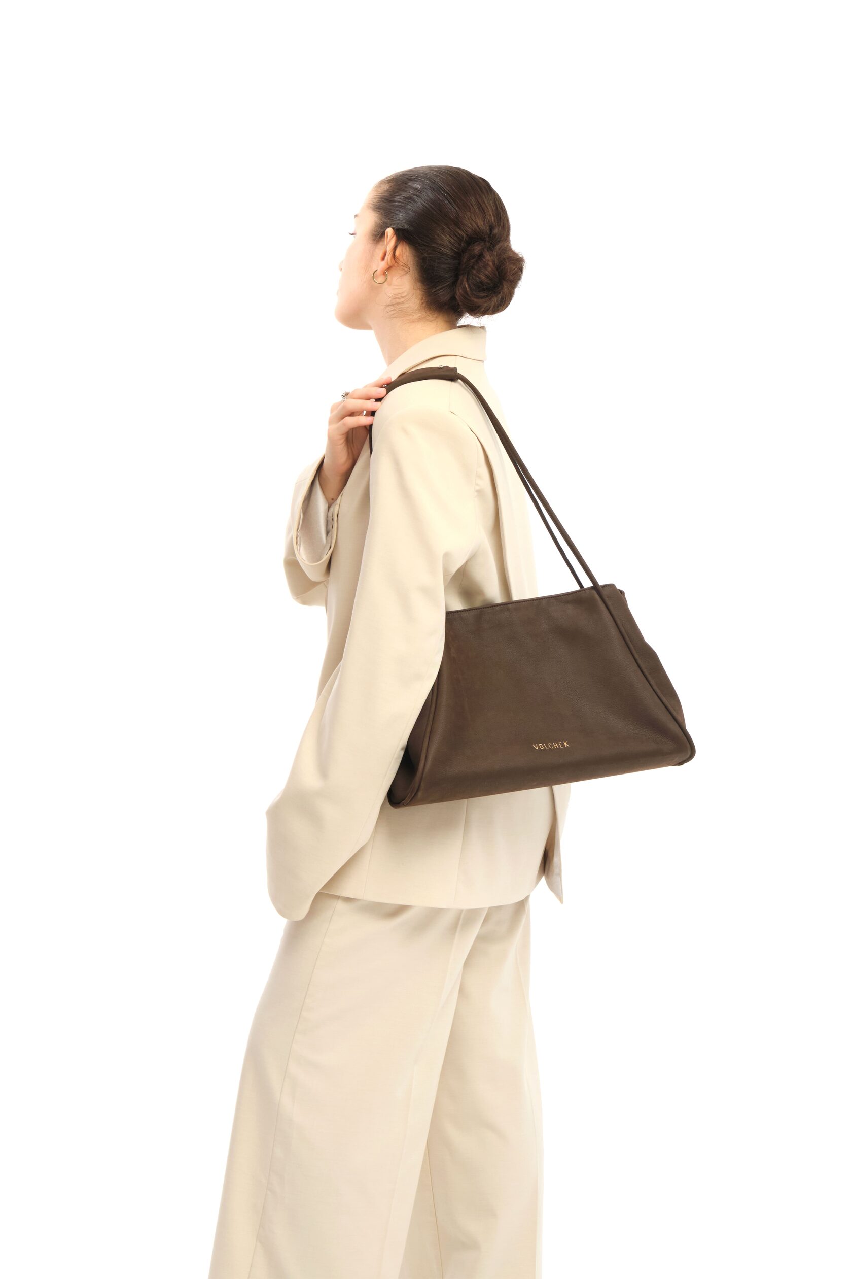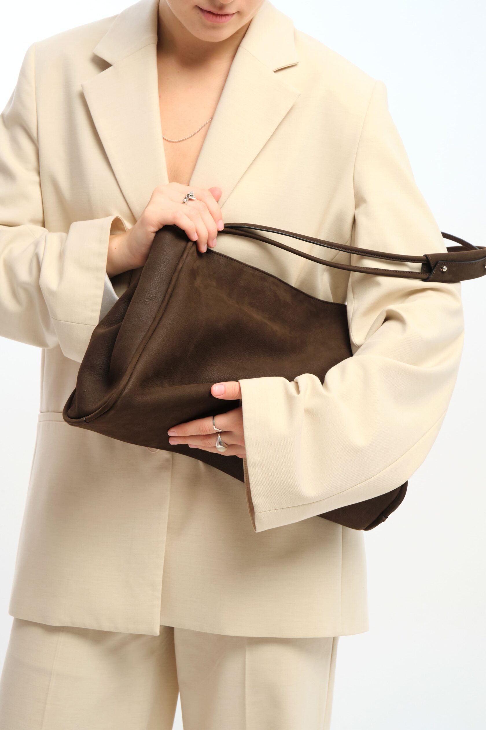 Базовая сумка формата А4 с двумя отделениями. Мягкая и одновременно держит форму.