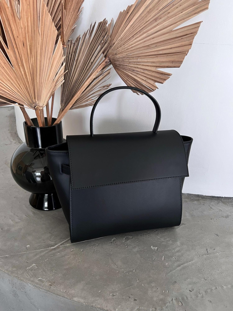 Сэтчел среднего размера на одной ручке из натуральной кожи наппа. Длинный ремень с регулировкой в комплекте. На внешней стороне декоративные элементы для регулировки ширины.