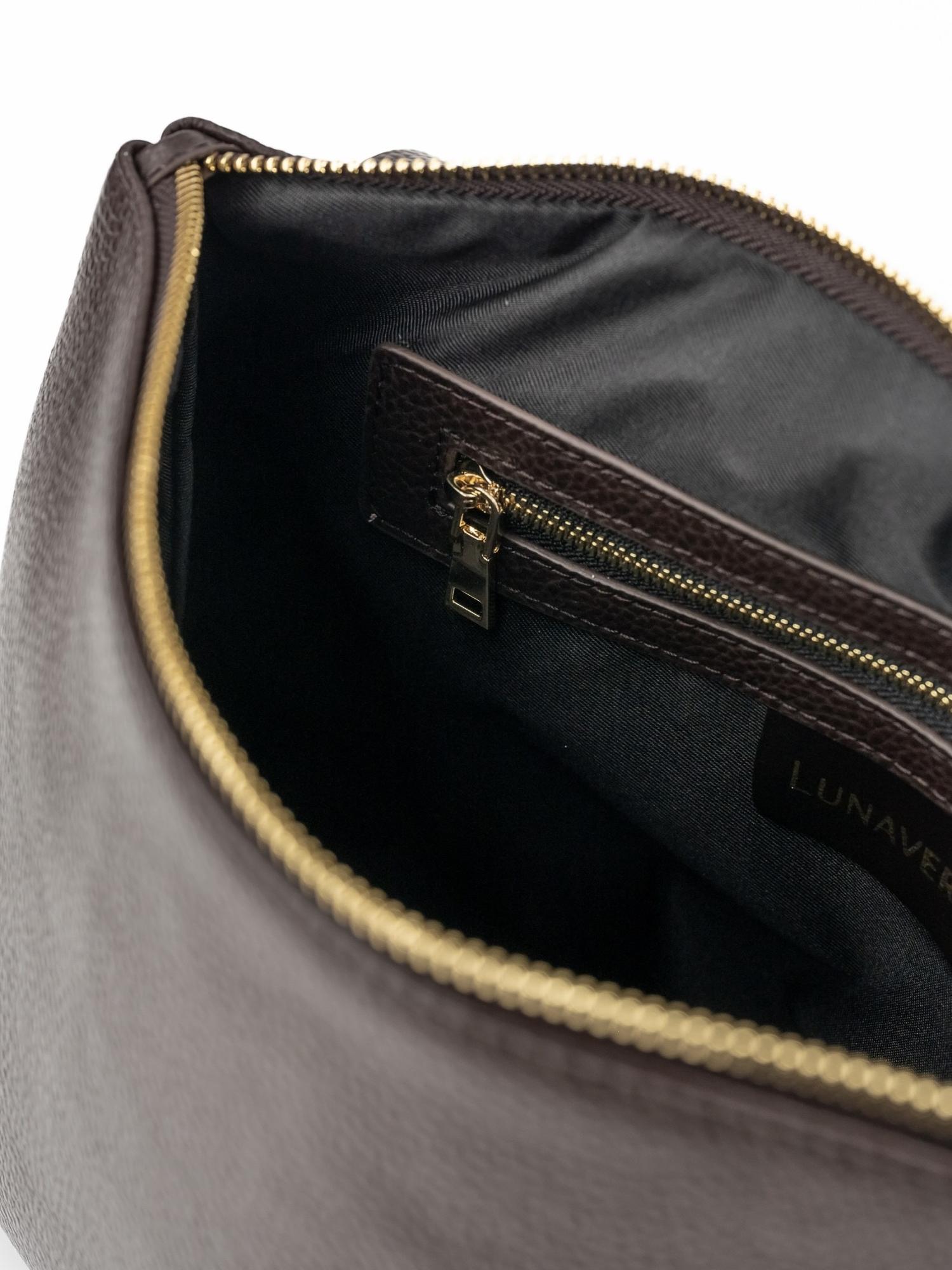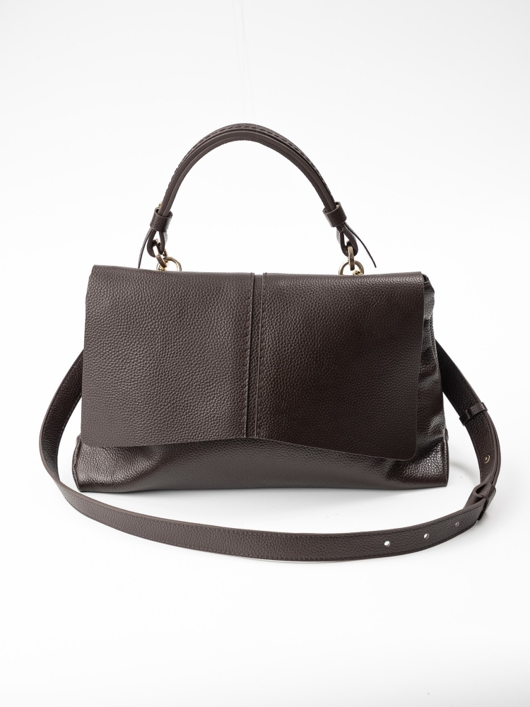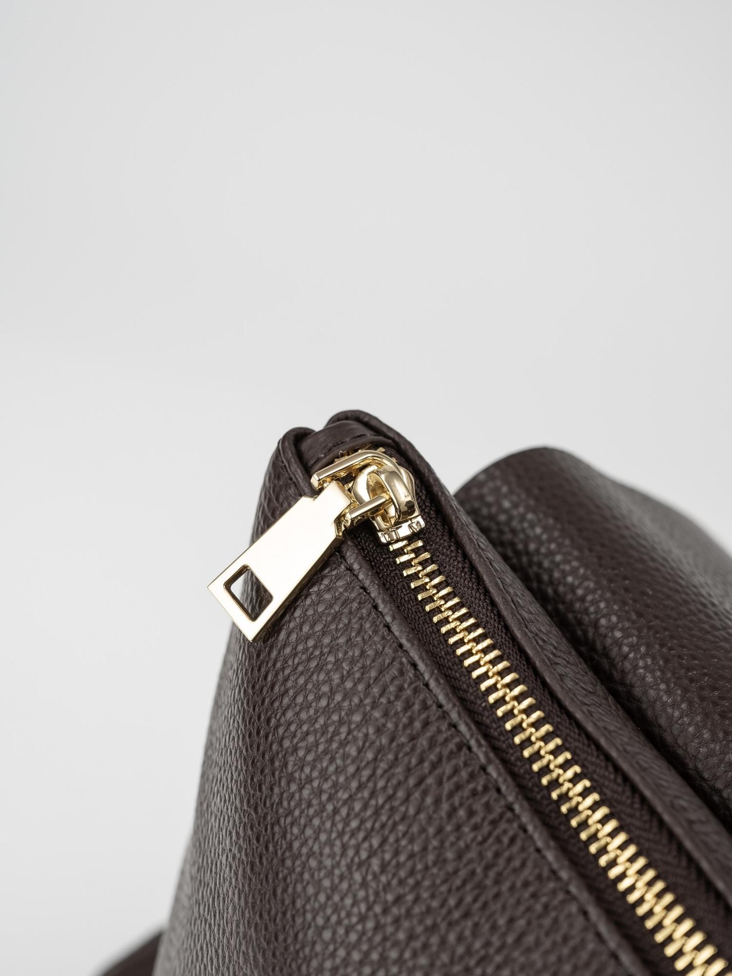 Эта элегантная сумка среднего размера из натуральной зернистой кожи насыщенного шоколадного оттенка воплощает идеальный баланс вместительности и безупречного стиля — она станет вашим надежным спутником. Внутри предусмотрено просторное основное отделение, дополненное внутренним карманом на молнии для надежного хранения ключей, документов или ценных мелочей, а снаружи расположен доп карман для самых необходимых вещей, которые всегда должны быть под рукой. В комплекте идет длинный регулируемый ремень 103 см, позволяющий носить аксессуар на плече или через тело, оставляя руки свободными для самых важных дел.