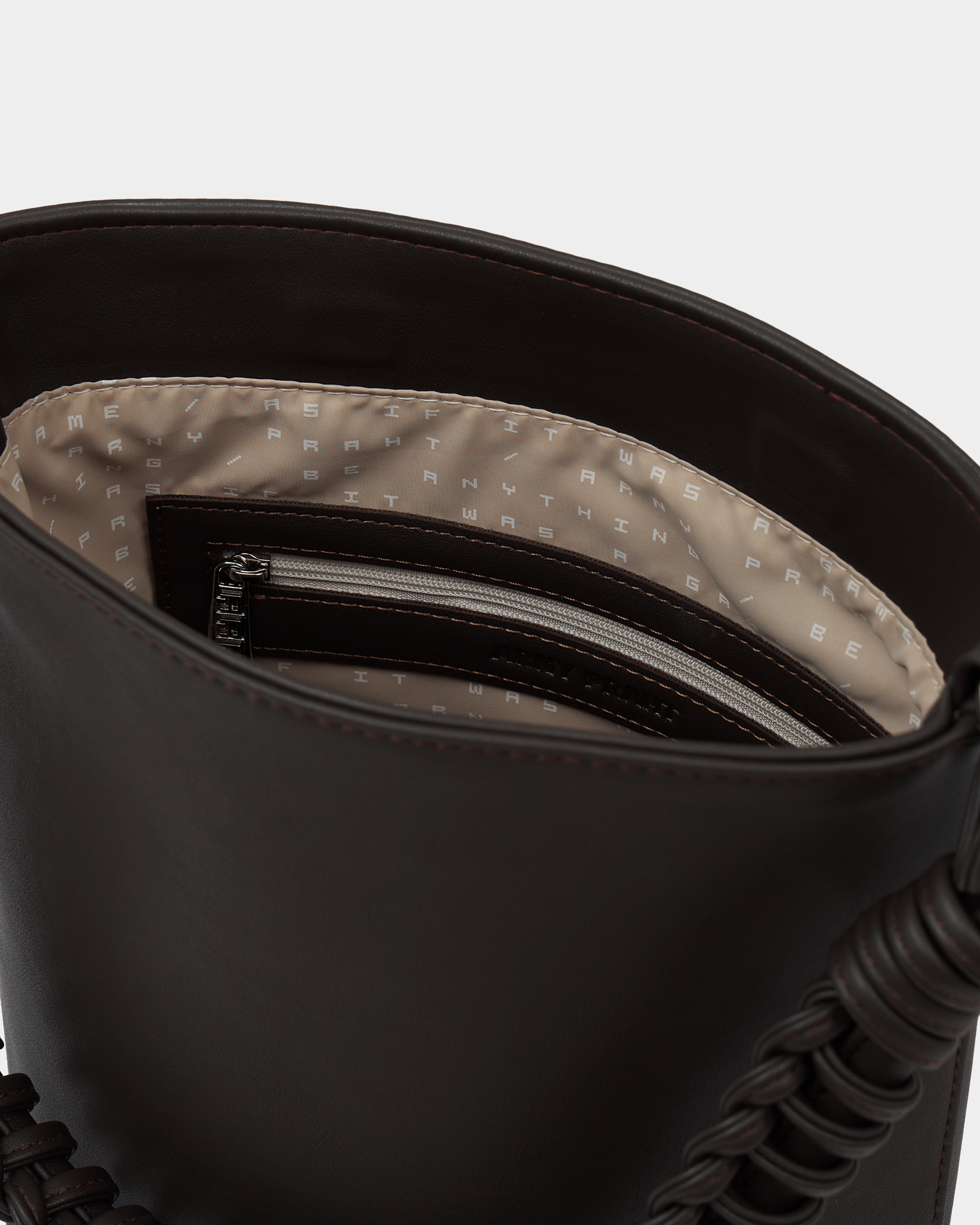 Внутри: Одно отделение, карман на молнии, плоский карман