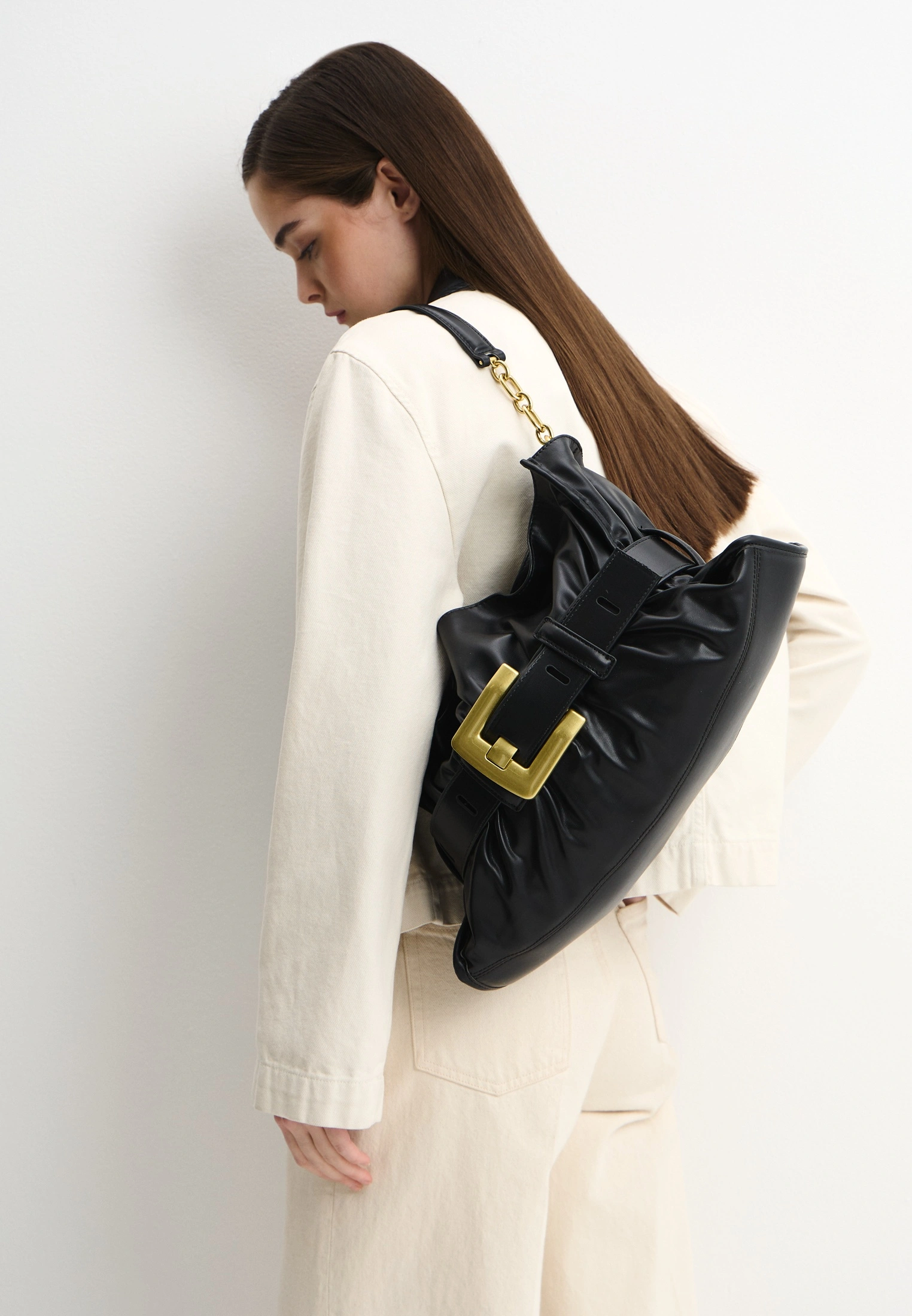 Сумка выполнена из искусственной кожи. Детали: застежка на магните, одно отделение, 2 внутренних кармана, текстильная подкладка.
