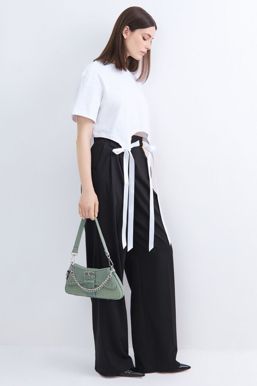 «Для встречи с друзьями в кафе сочетайте сумку с юбкой-карандаш с разрезом, тонким боди и минималистичными лодочками».