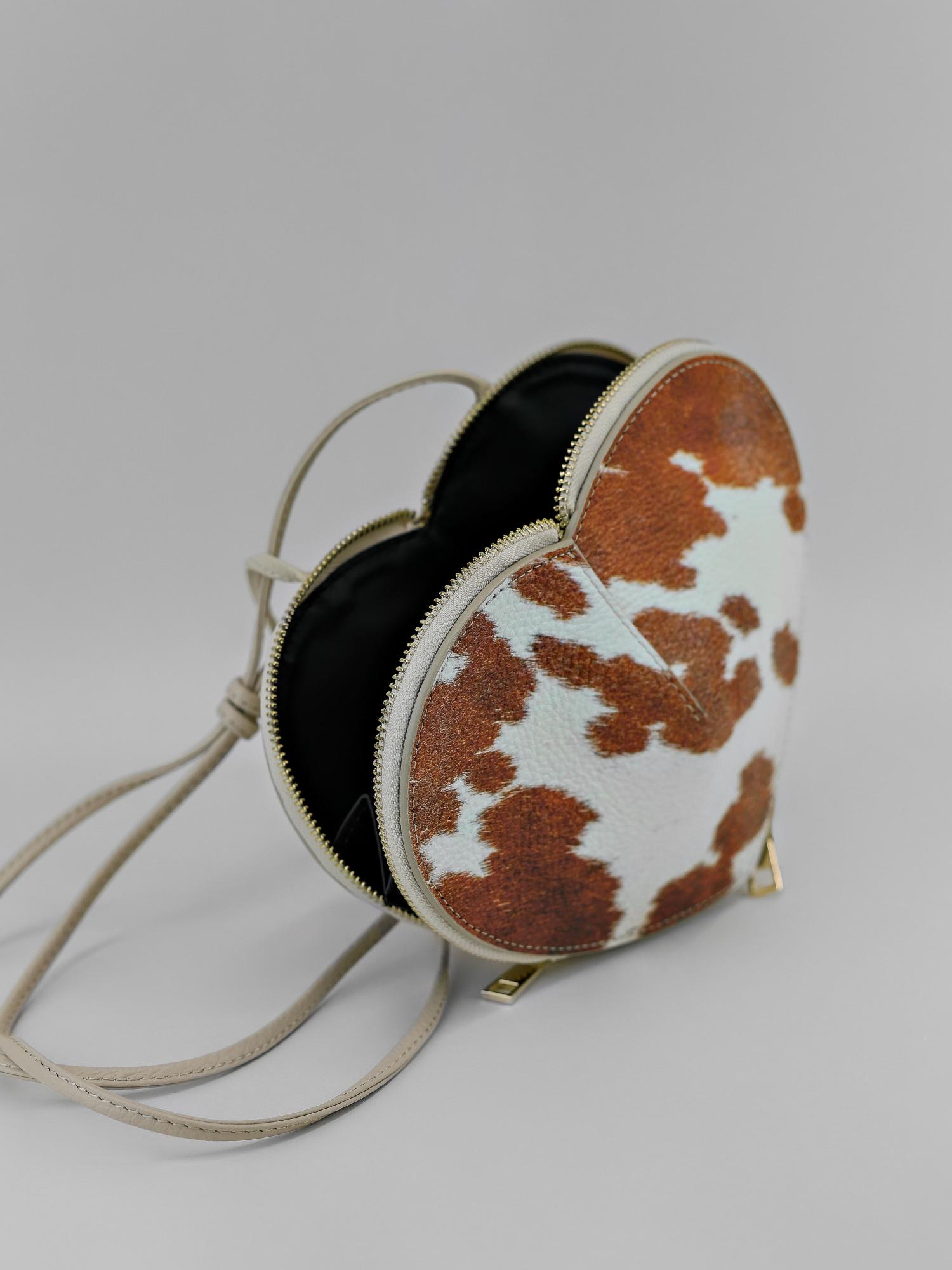 Маленькая, но вместительная сумка в форме сердца. Внутри один отдел, без дополнительных карманов. Длина ремешка регулируется перетяжками, от 69 см до 118 см.