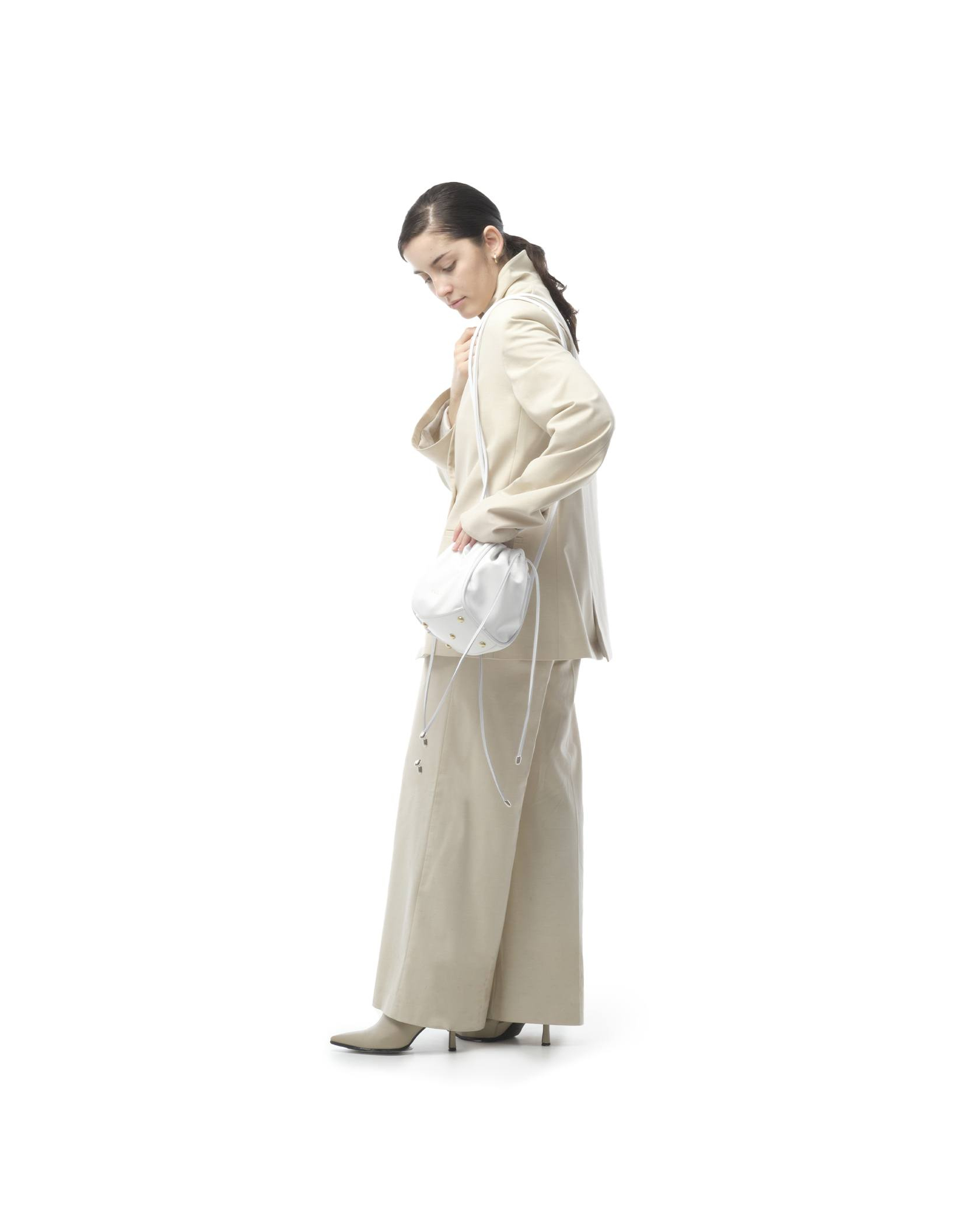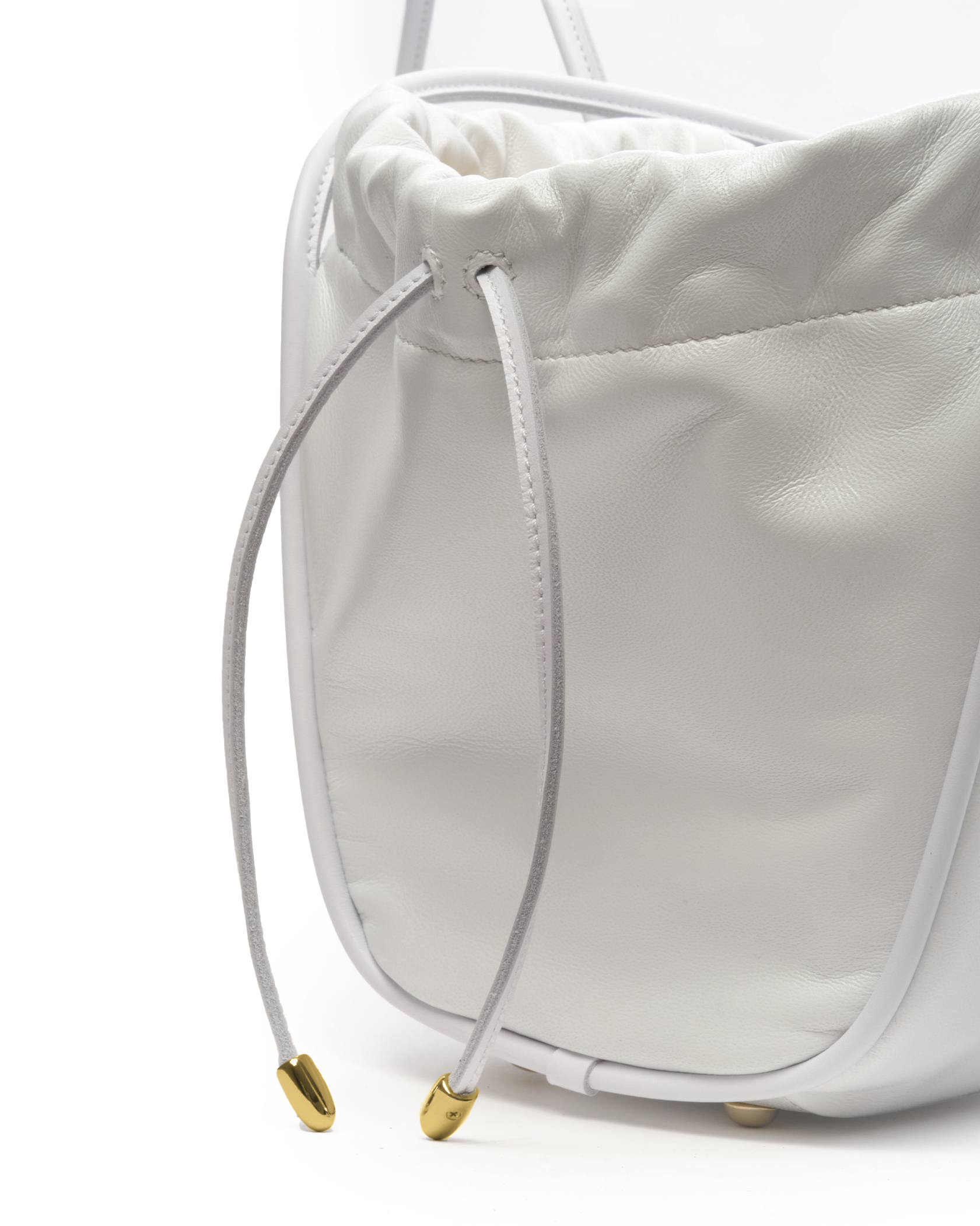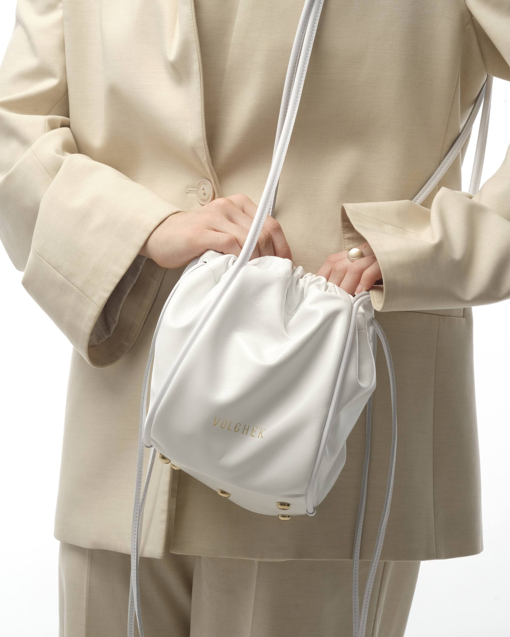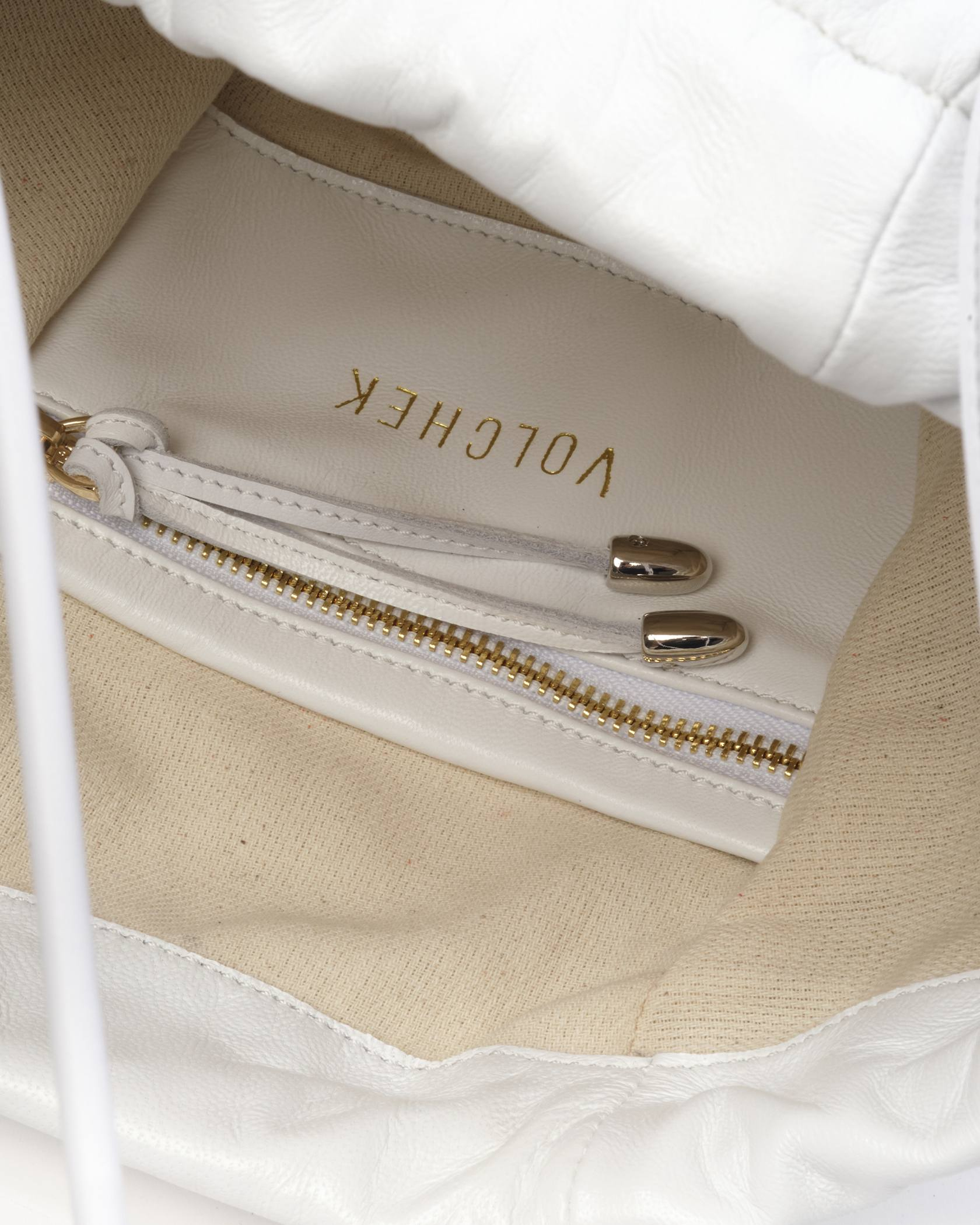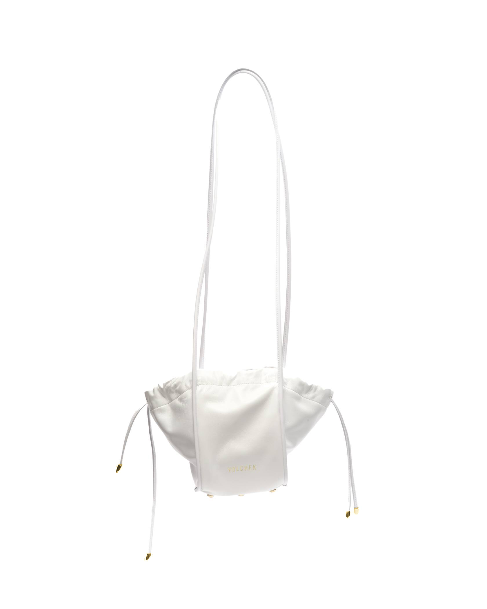 Сумка минималистичная, с минимумом фурнитуры на концах шнурков и молнии на кармашке. Фурнитура цвета золота
