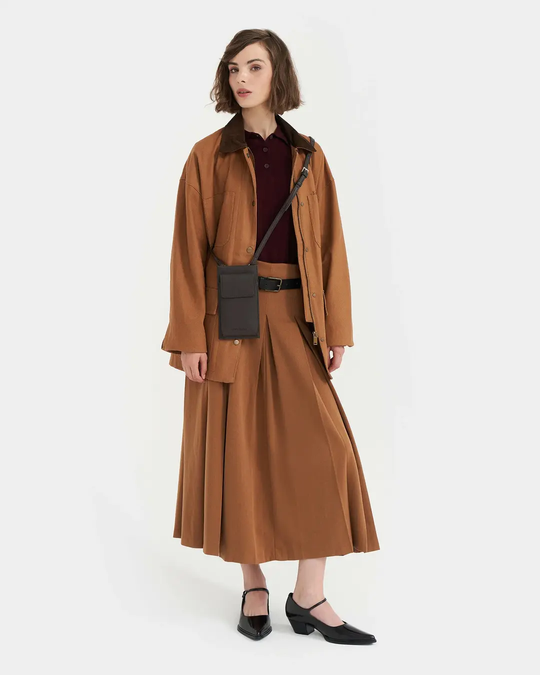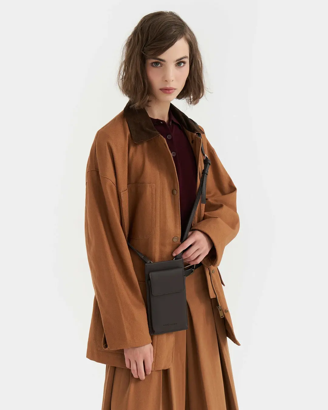 Сумка для телефона в цвете кофе.