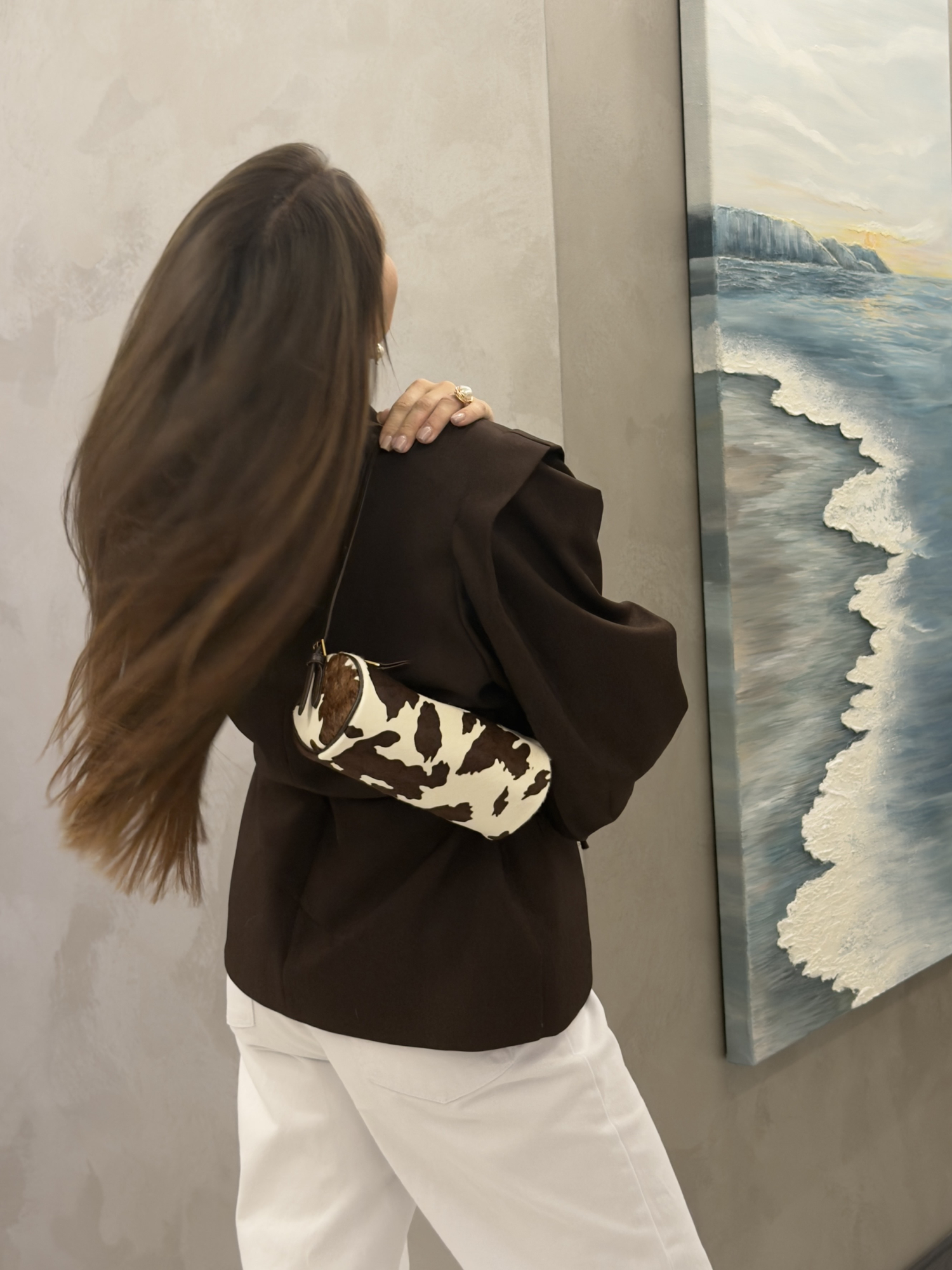 Маленькая сумка-тубус в коровий принт.