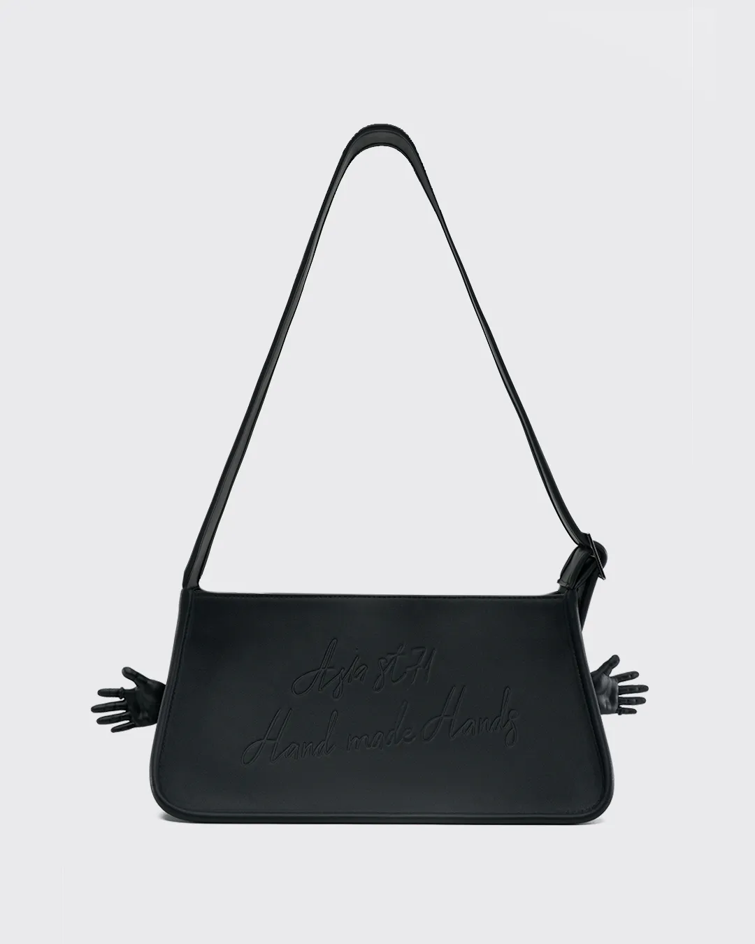 Bag — Hand Made Hands «Руки, сделанные руками» Причудливый концепт от нашей команды. Руки — это одни из главнейших частей тела и опорно-двигательного аппарата у человека, который помогает людям выполнять множество действий. В том числе и создание этой сумку. Мы использовали много ручного труда при ее создании. Моно-форма, широкий ремень, кант, гладкая искусственная кожа и маленькие 3D руки c нашими кольцами Arrow на первом и седьмом пальцах — элементы, которые были заложены в разработку идеи. Отсюда родилось и название— Hand Made Hands.
