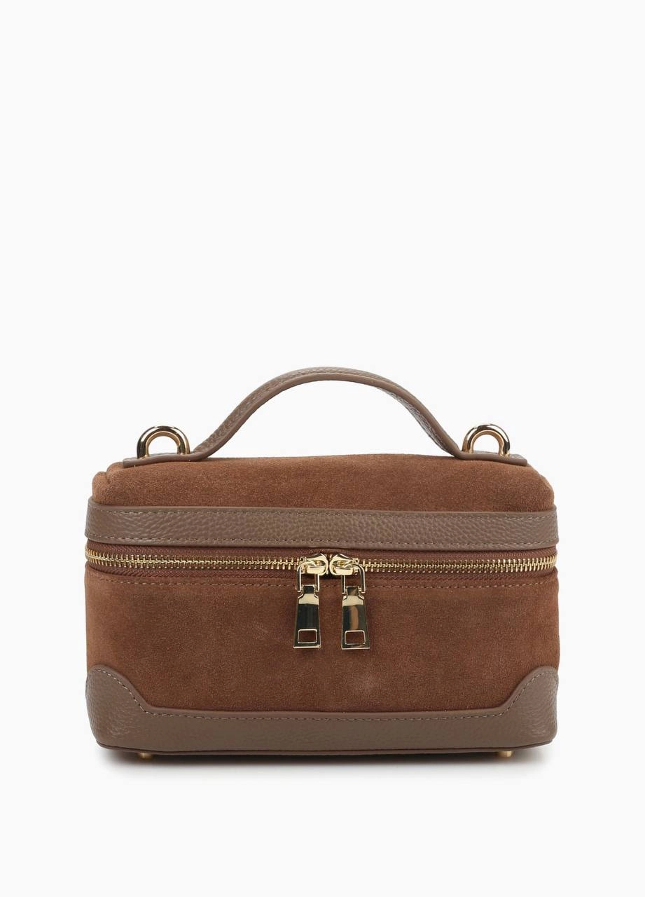 Популярная модель в формате мини размера на одной ручке в комбинации натуральной кожи и замши. Внутри одно отделение с дополнительным кармашком на молнии. Длинный кожаный ремень с регулировкой в комплекте