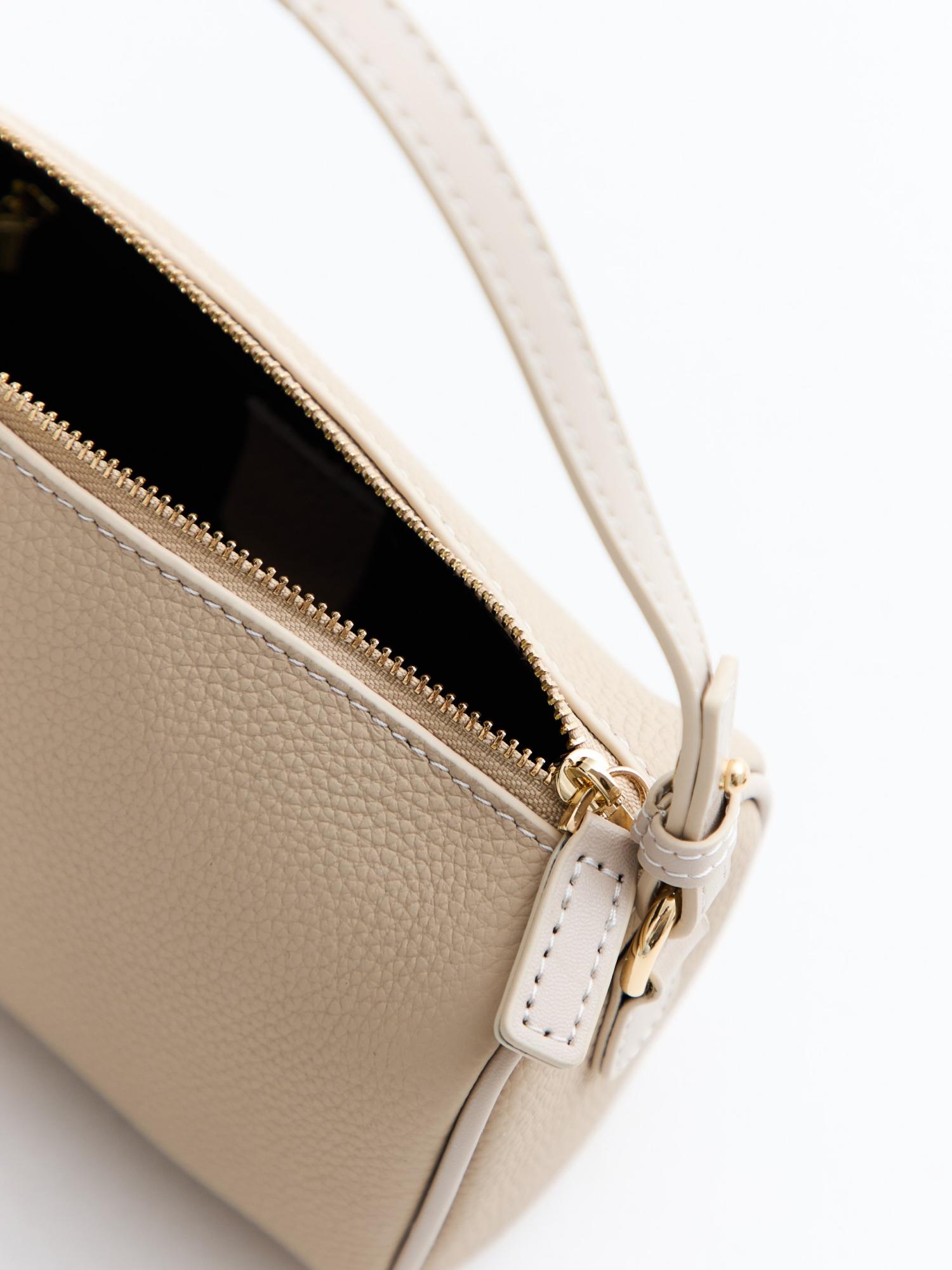Мини сумка выполнена из натуральной кожи. Представлена с коротким ремешком, но в комплекте есть доп. ремешок с регулировкой, что помогает носить сумку не только в руке, но и как модель кросс-боди.