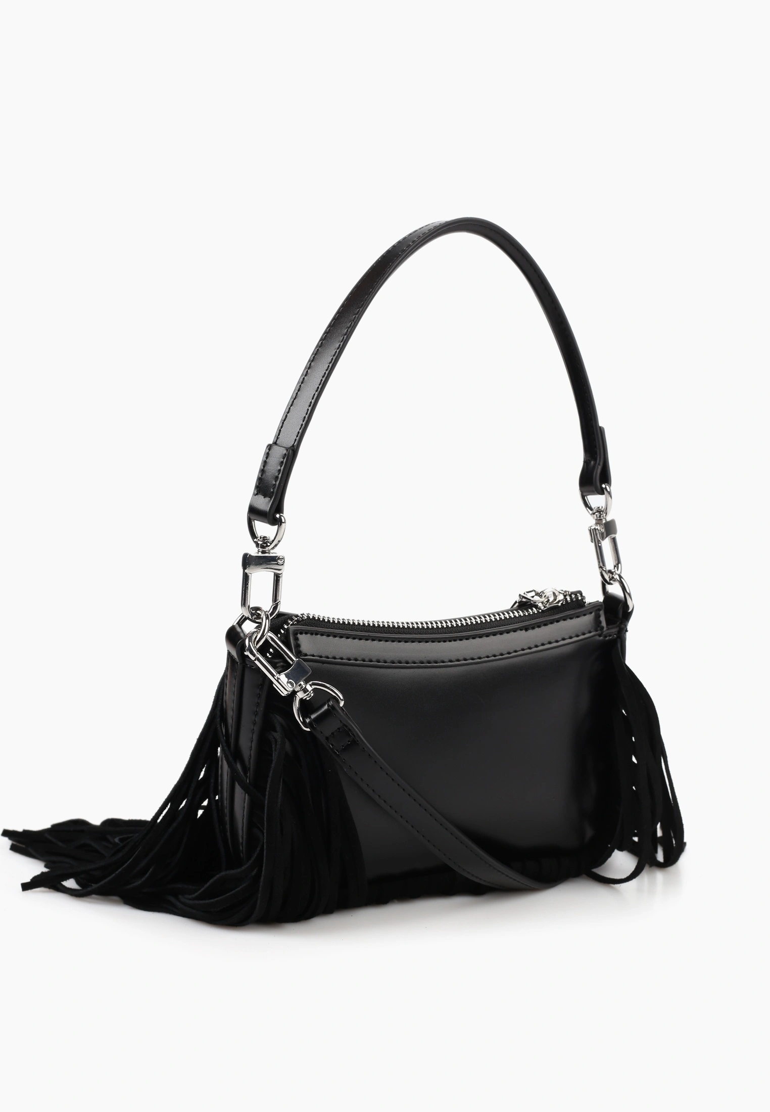 Сумка выполнена из искусственной кожи и натуральной замши с текстильной подкладкой. Детали: внутри 1 отделение, 2 кармана, застежка на молнию, в комплекте съемный плечевой ремень.
