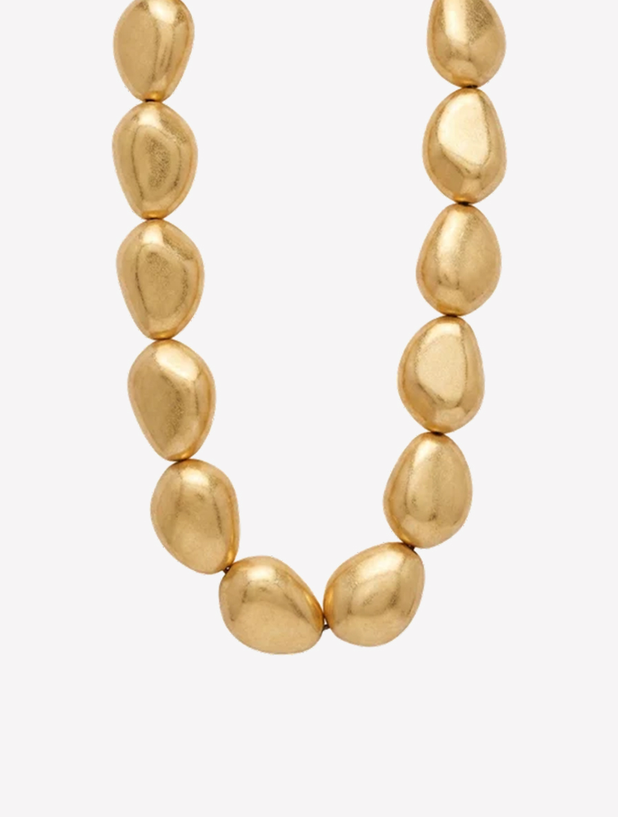 Матовые золотые бусы — изысканное украшение, которое добавит нотку элегантности в любой образ. Прекрасно подойдёт для создания как повседневного, так и вечернего стиля.