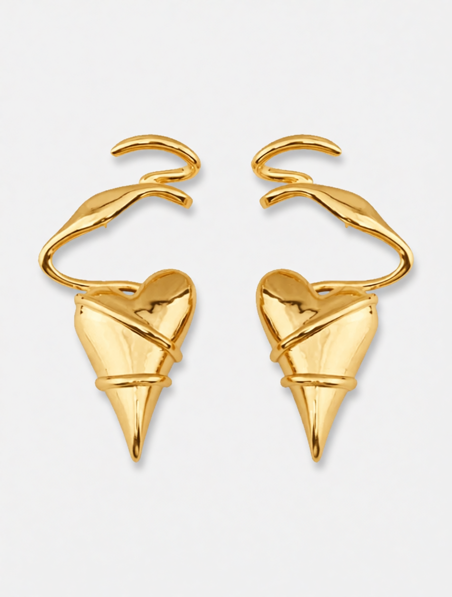 Изысканные серьги в форме сердца — идеальный аксессуар для создания романтичного образа. Серебристый цвет универсален и легко сочетается с разными нарядами. Замок-пусет и дополнительное крепление кафф обеспечивают удобство ношения.