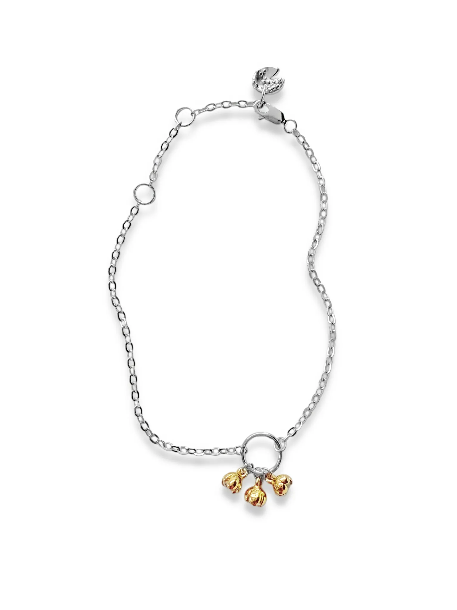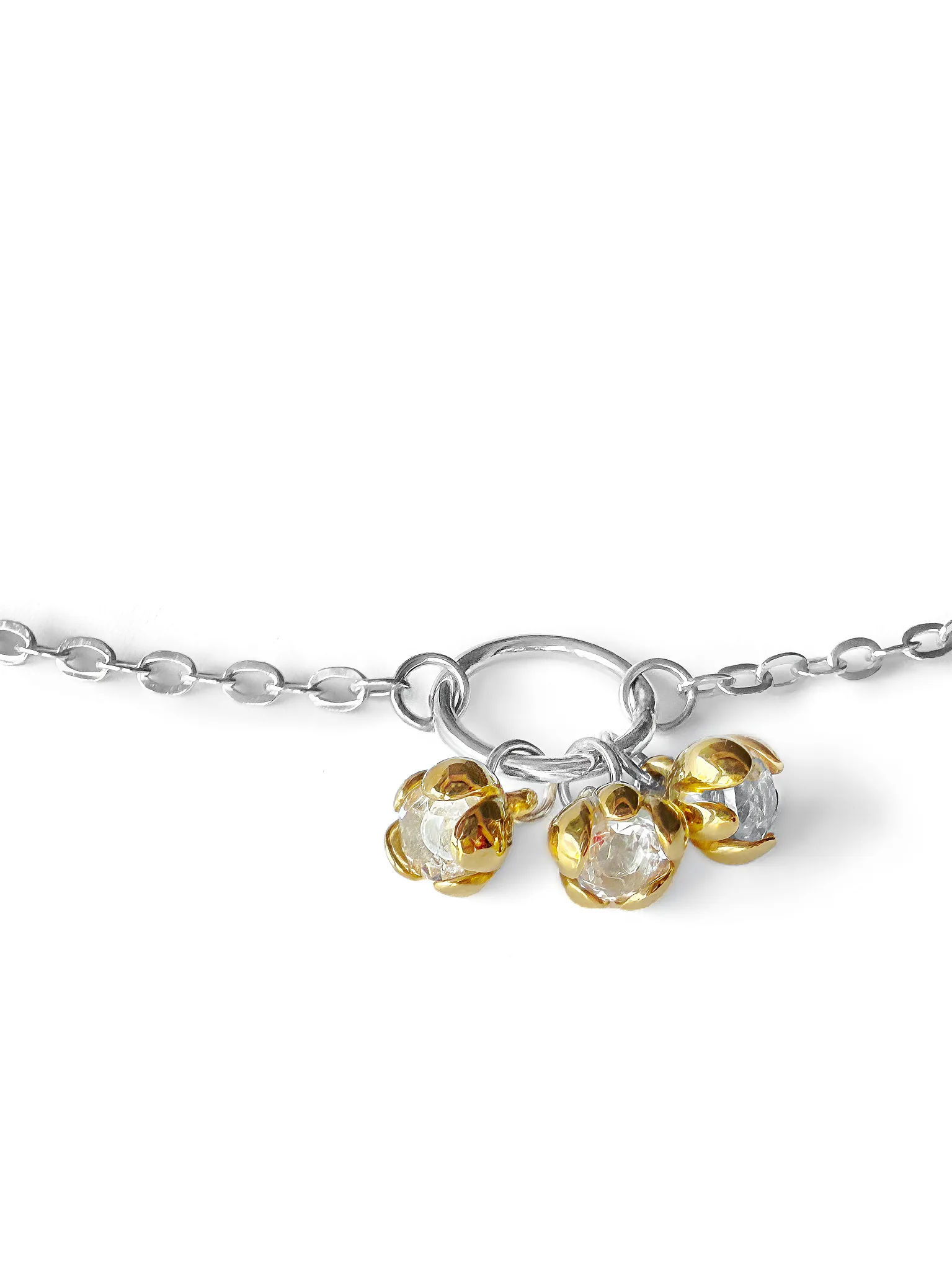 Объединили лаконичную цепочку, три золотистых цветка и один серебряный лист кувшинки в лаконичный браслет на ногу — такой, который станет идеальной парой для каждого вашего дня.