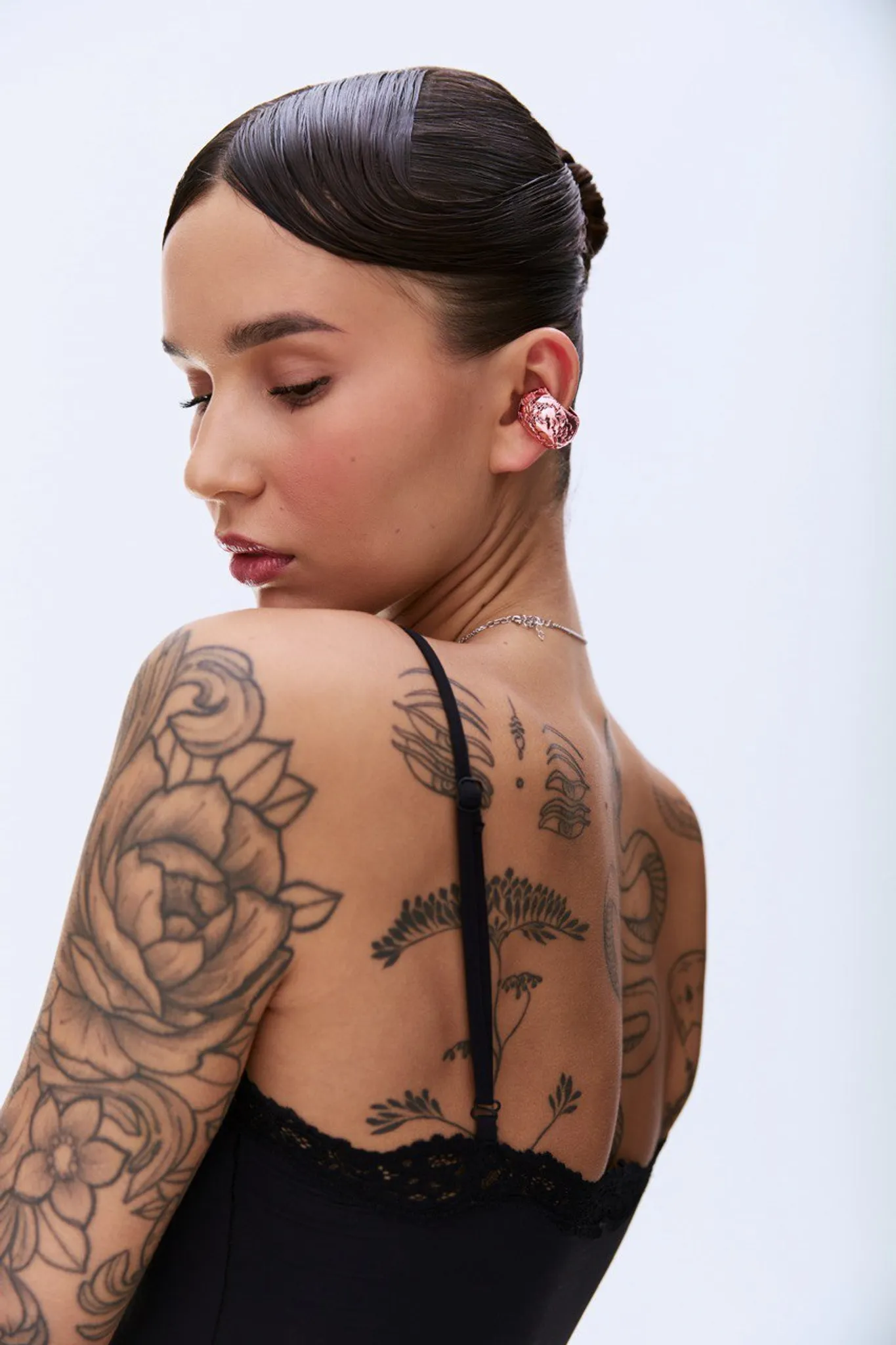 Кафф из серебряного кружева нежного розового оттенка в форме большого бублика — идеальная деталь для романтичных и воздушных образов. Сочетайте его с другими украшениями коллекции, чтобы получить законченный сет в винтажном стиле.
