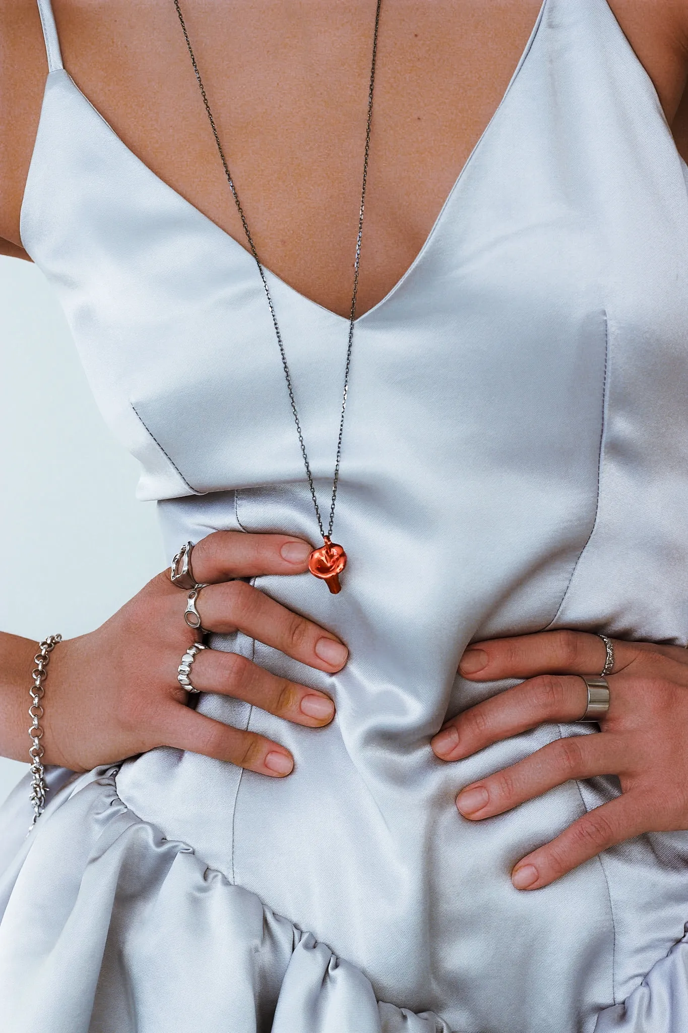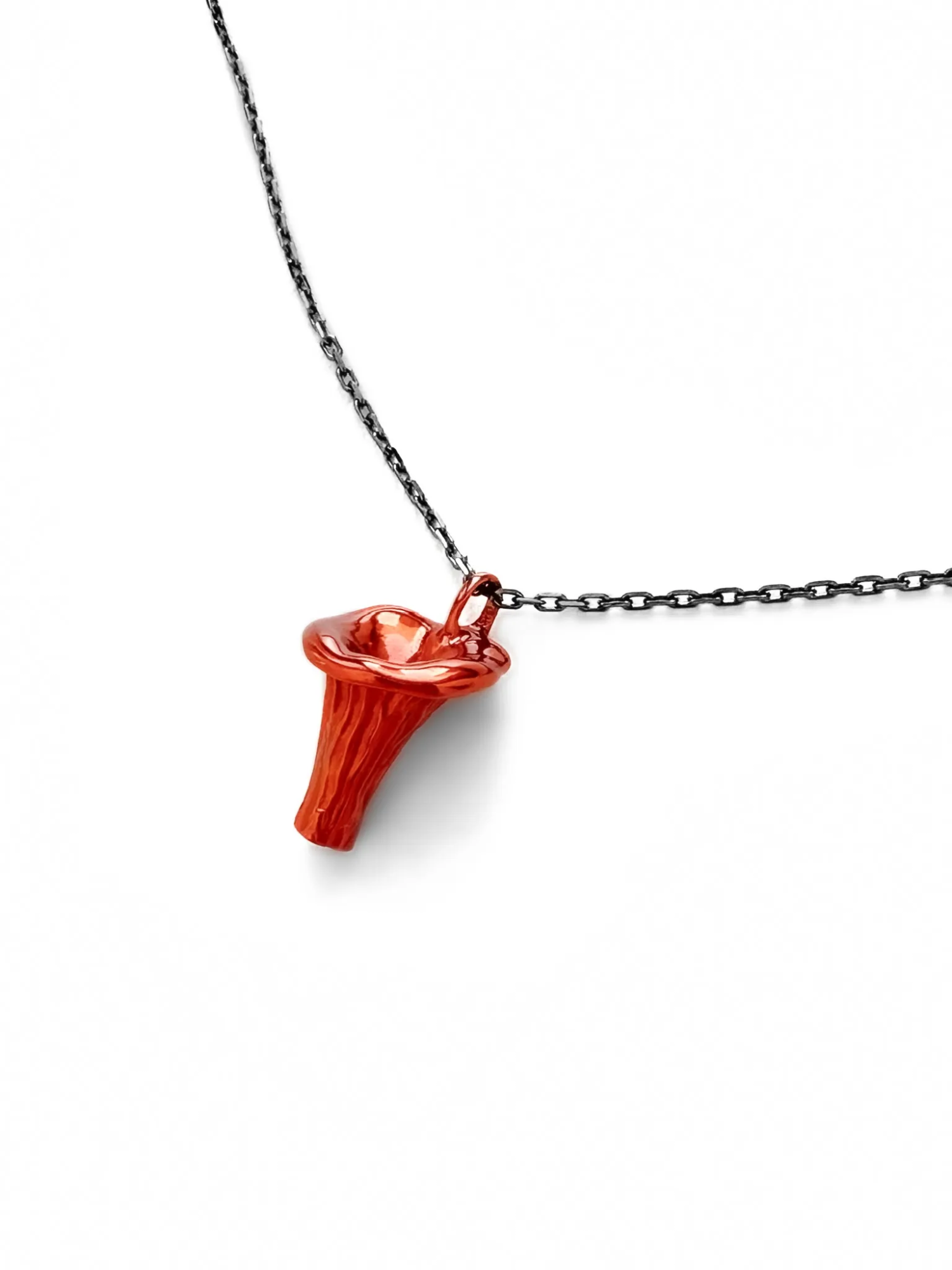 Один из самых питательных грибов, который растет небольшими семьями и обладает легко узнаваемой формой. Собрали урожай ювелирных лисичек и превратили их в минималистичное колье для ваших игривых образов.