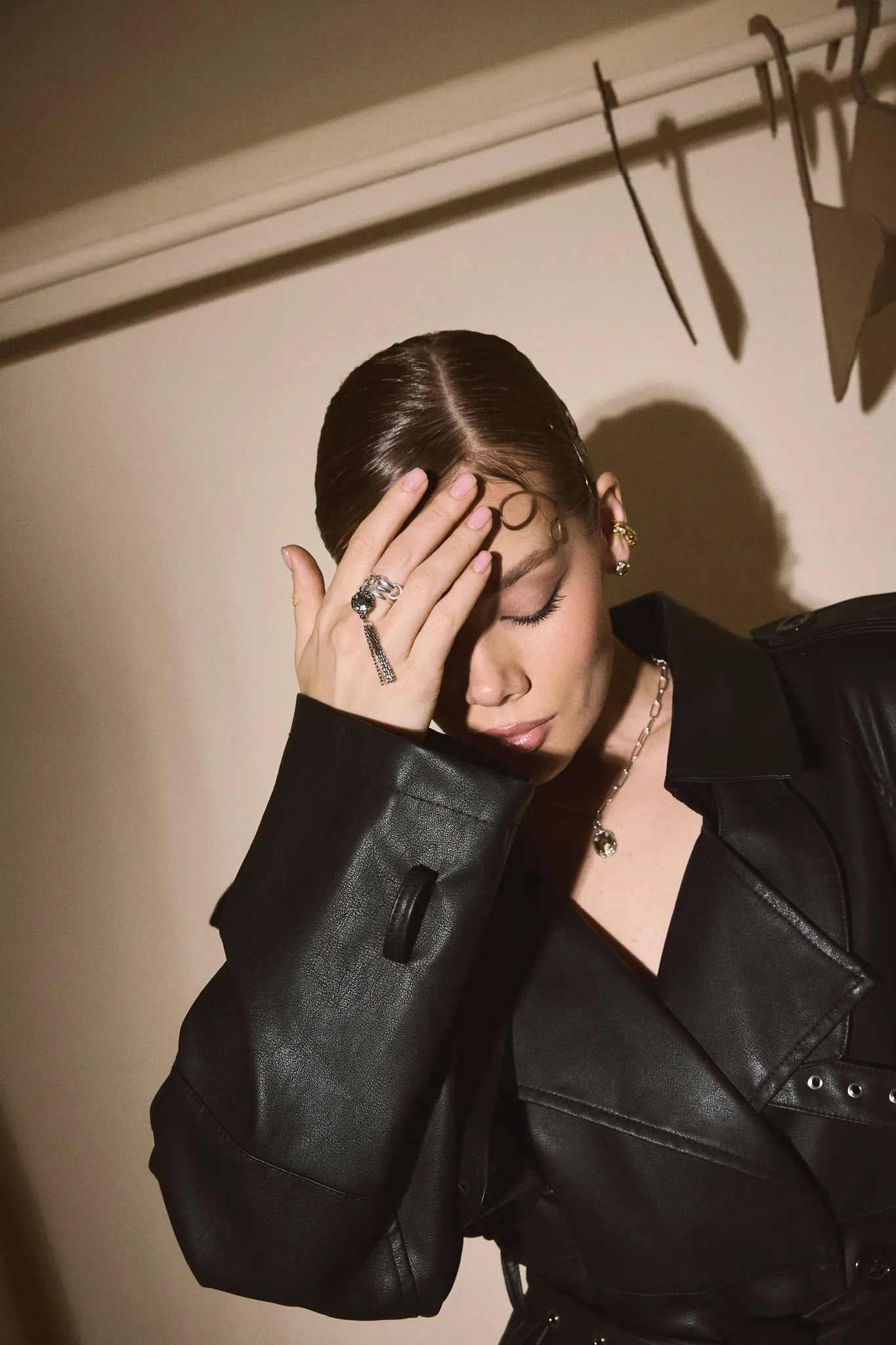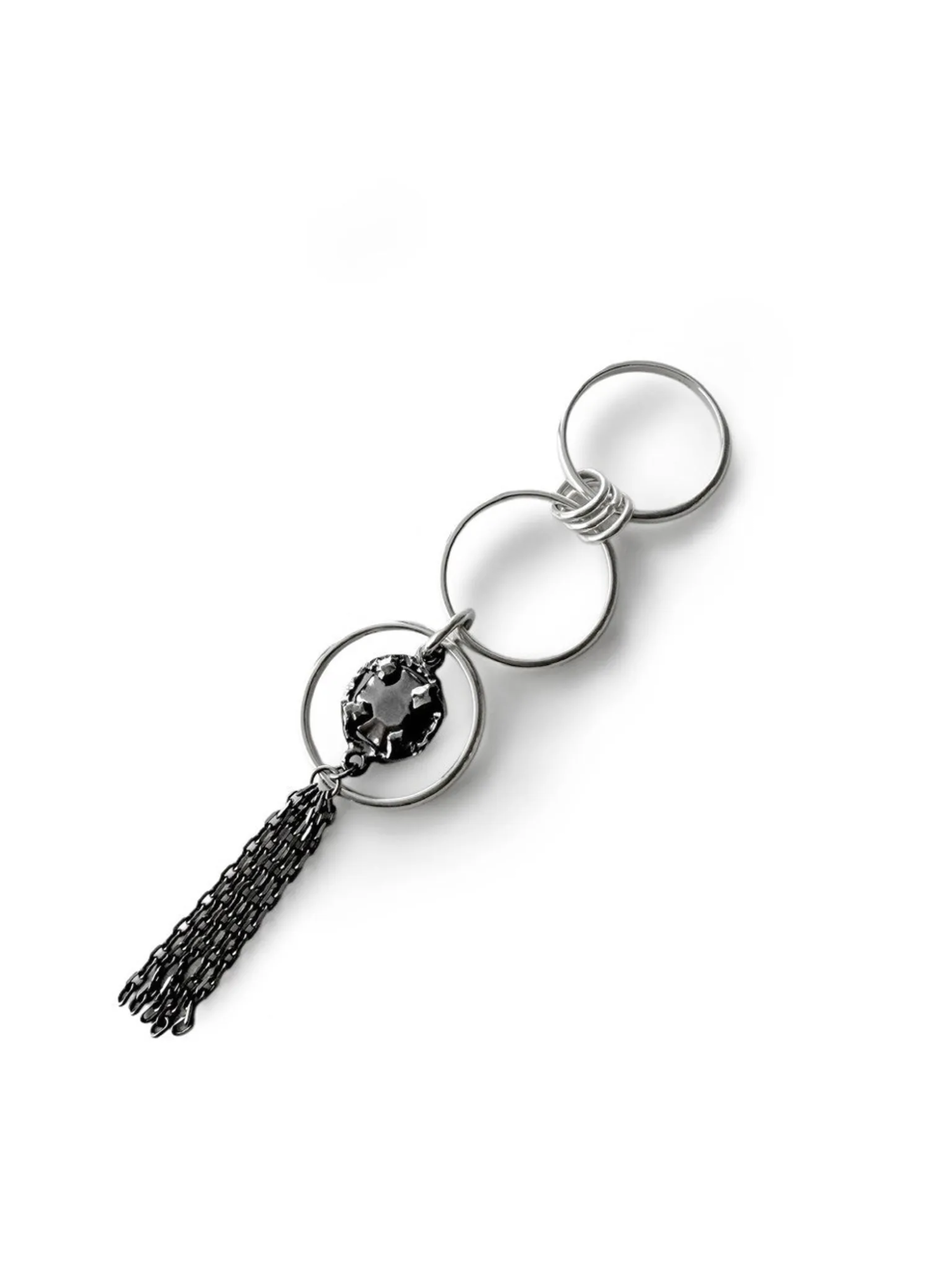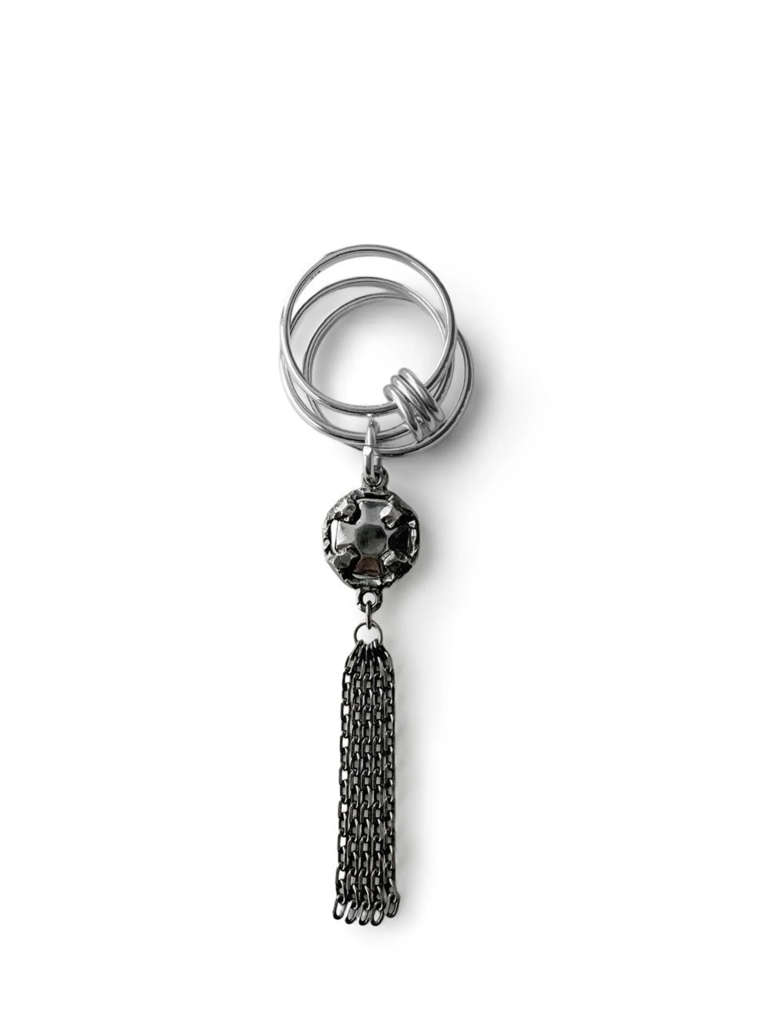 Тройное кольцо, в котором прекрасно все — лаконичная форма, стильная подвеска с кастом глубокого черного оттенка, игривая кисточка. Но больше всего нам нравится его многофункциональность — легким движением руки кольцо можно превратить в подвеску для серьги или цепочки.