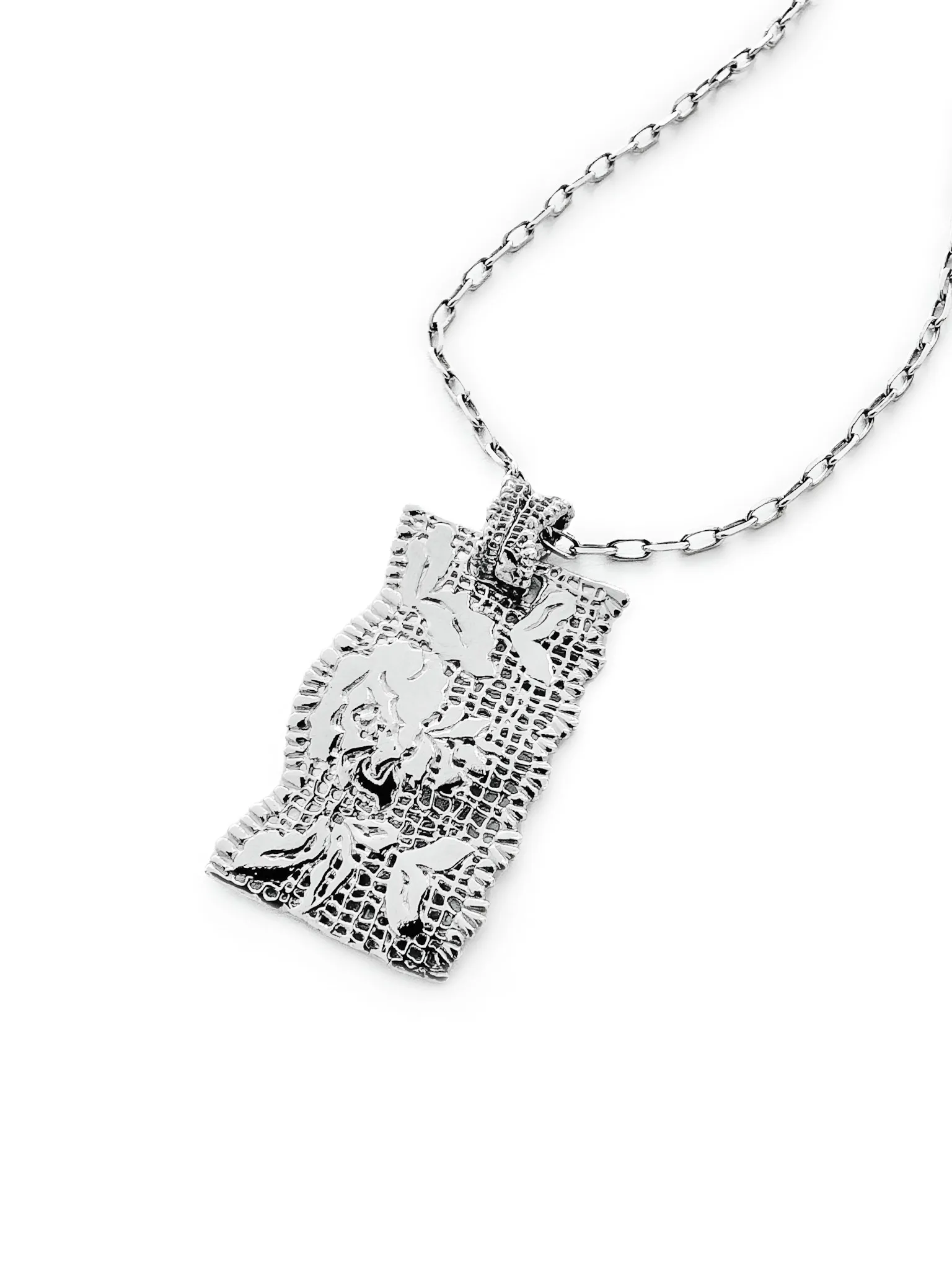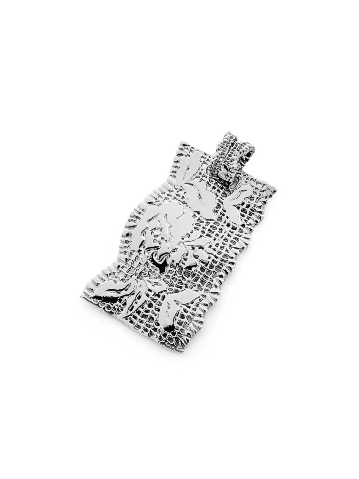 Подвеска в виде кусочка винтажного кружева — идеальная деталь для романтичных и воздушных образов. Сочетайте ее с легкими платьями или строгими костюмами, базовыми футболками или расслабленными свитшотами. Образ в любом стиле достоин нотки нежности и эстетики!