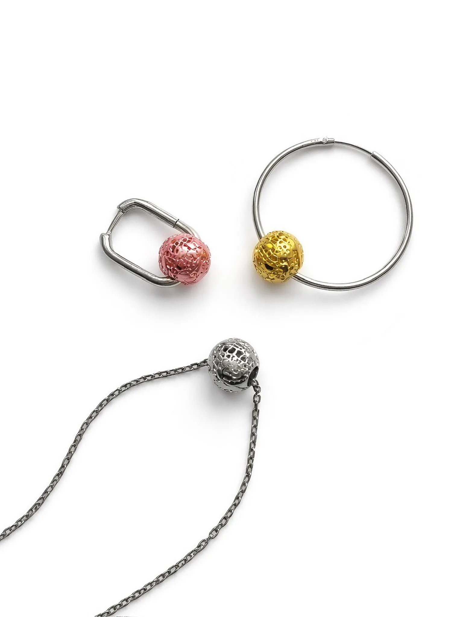Сплели из тонкого серебряного кружева теплого золотого оттенка миниатюрный шарик — и превратили его в подвеску, превращающую любой образ в воздушный. Носите ее на любимой цепочке, бархатном шнурке, серьге или на браслете, создавая новые образы каждый день.