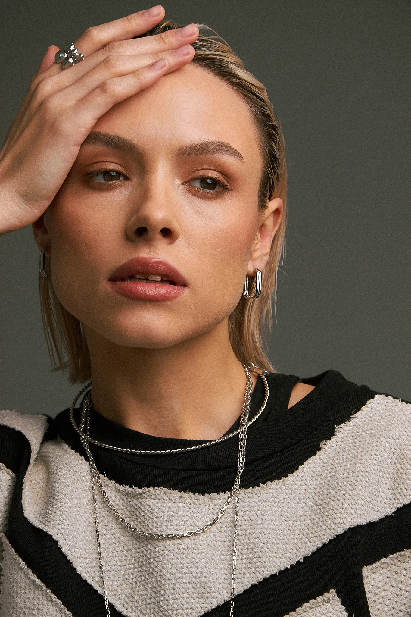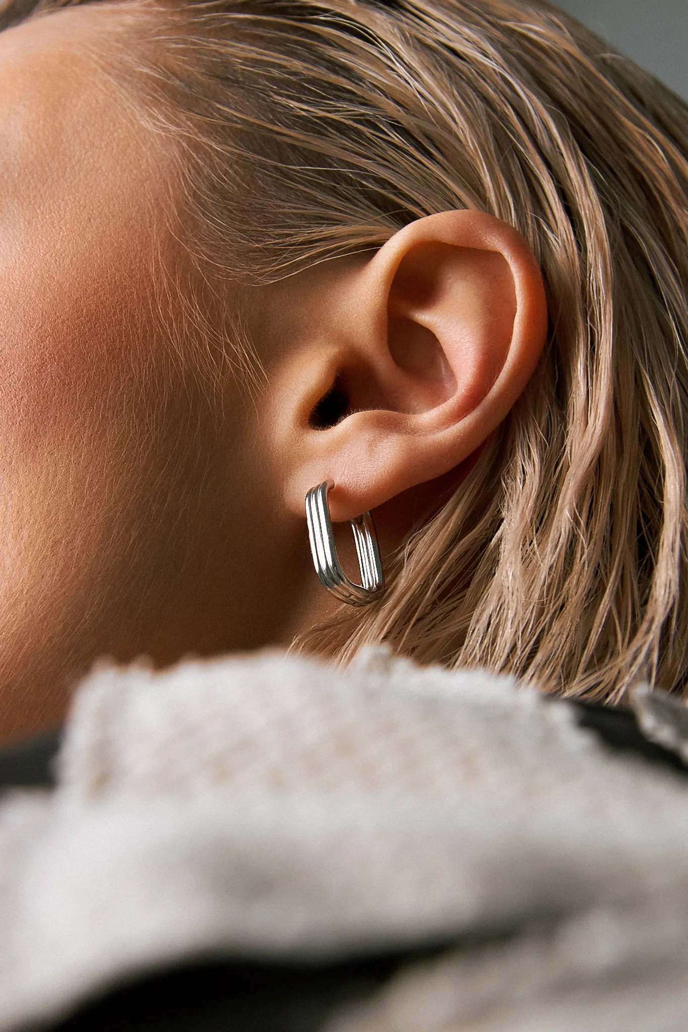 Составили из серебряных «трубочек» элегантные прямоугольные серьги, дополнили глянцевой текстурой и получили идеальное базовое украшение на каждый день.