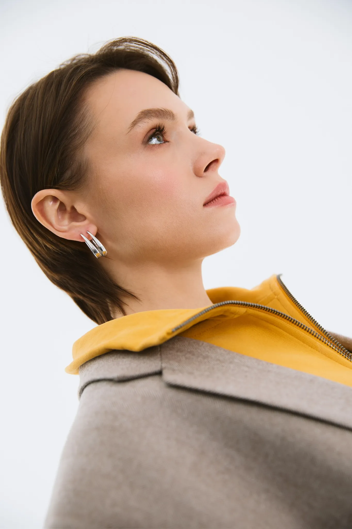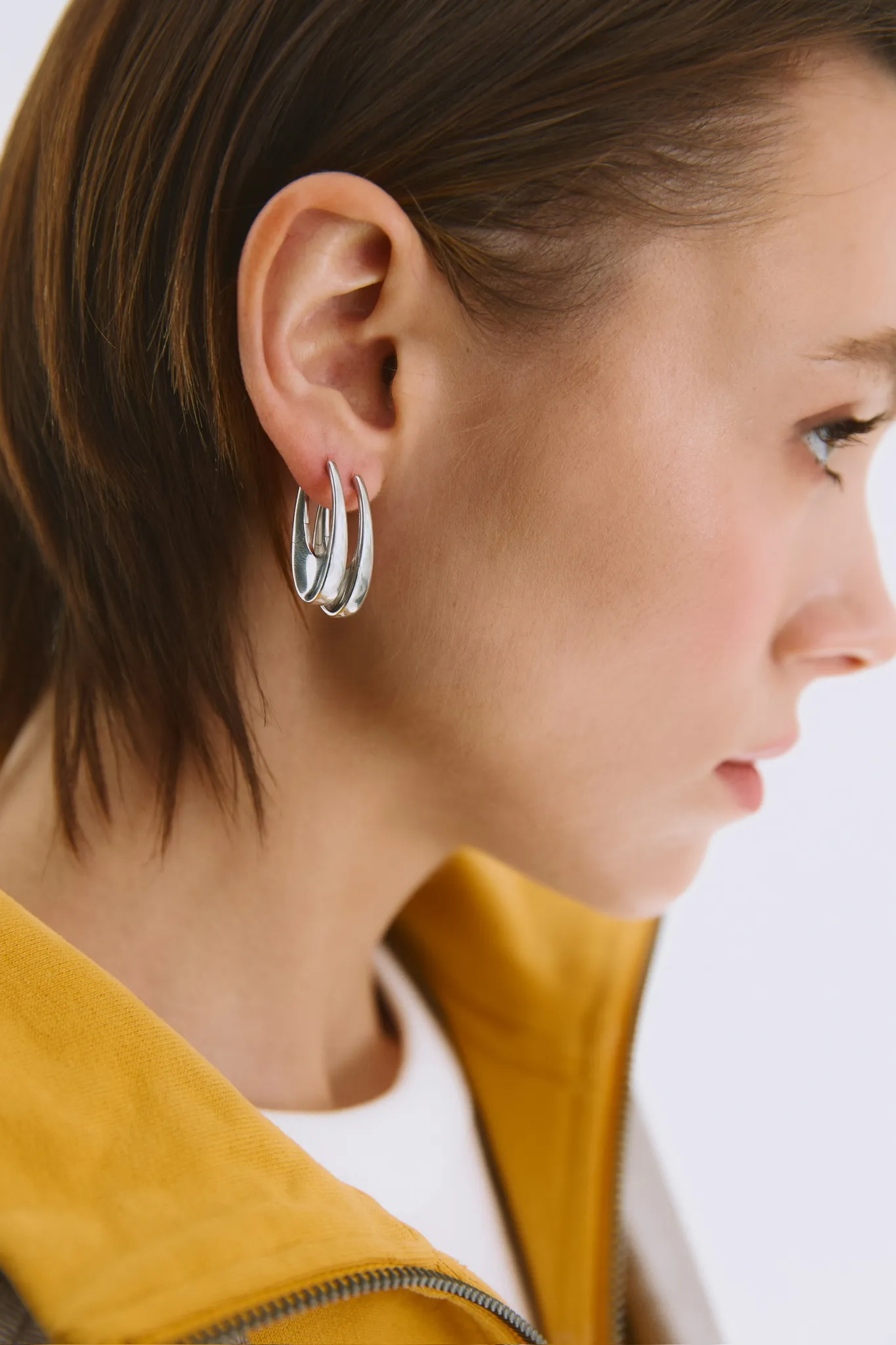 Базовые серьги необычной формы классического серебряного оттенка — идеальная ювелирная инвестиция в повседневные образы.