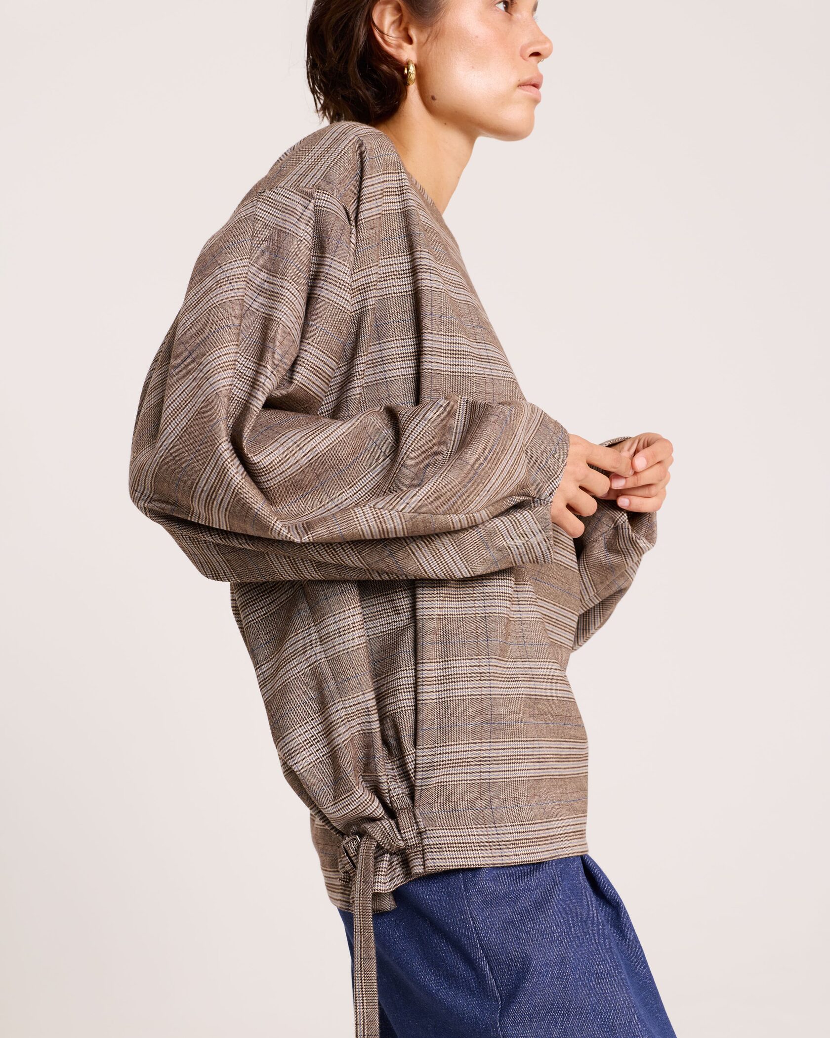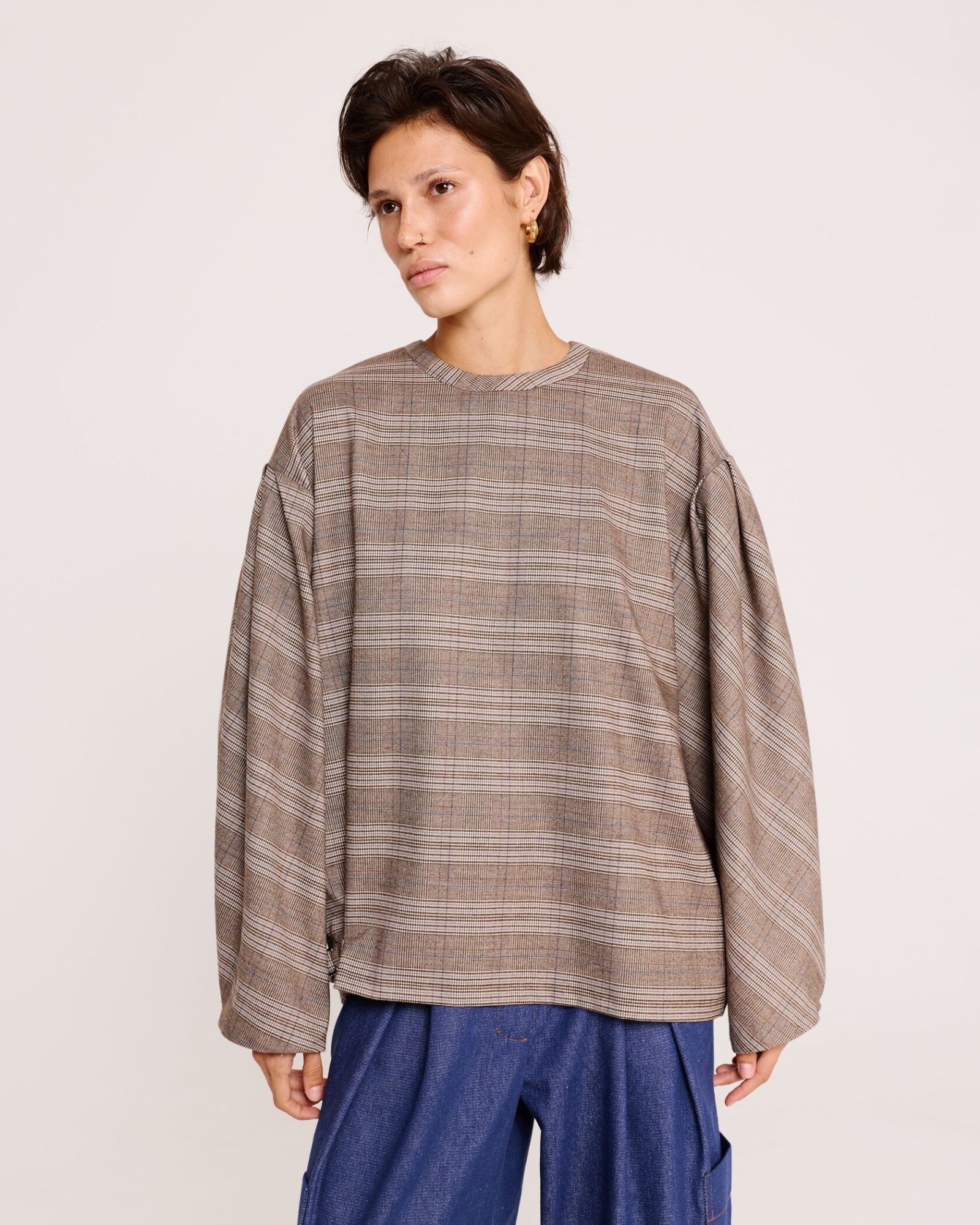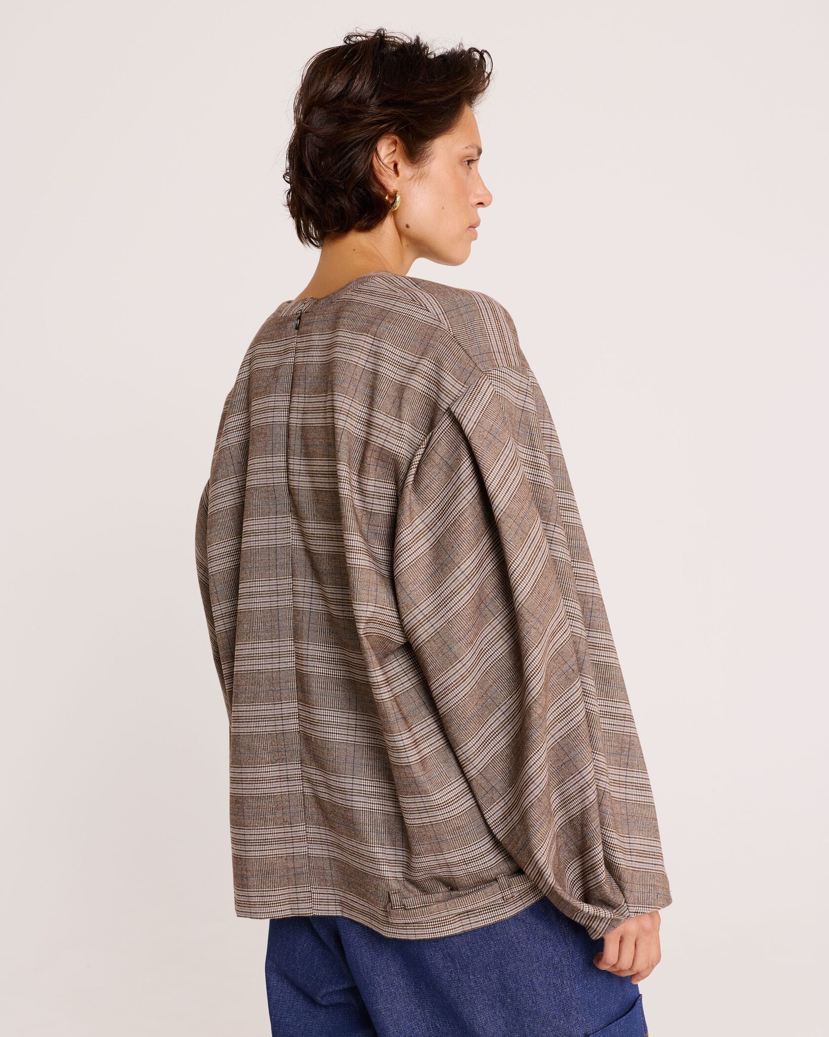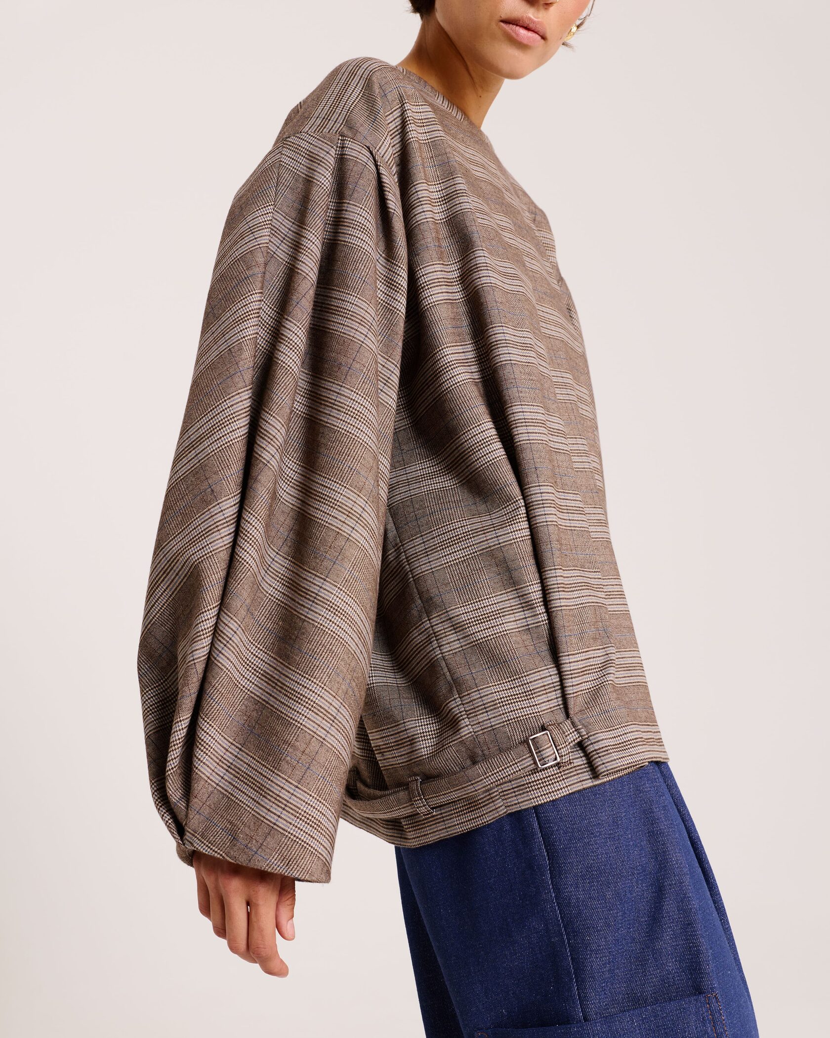 Блуза с объёмными рукавами в клетку