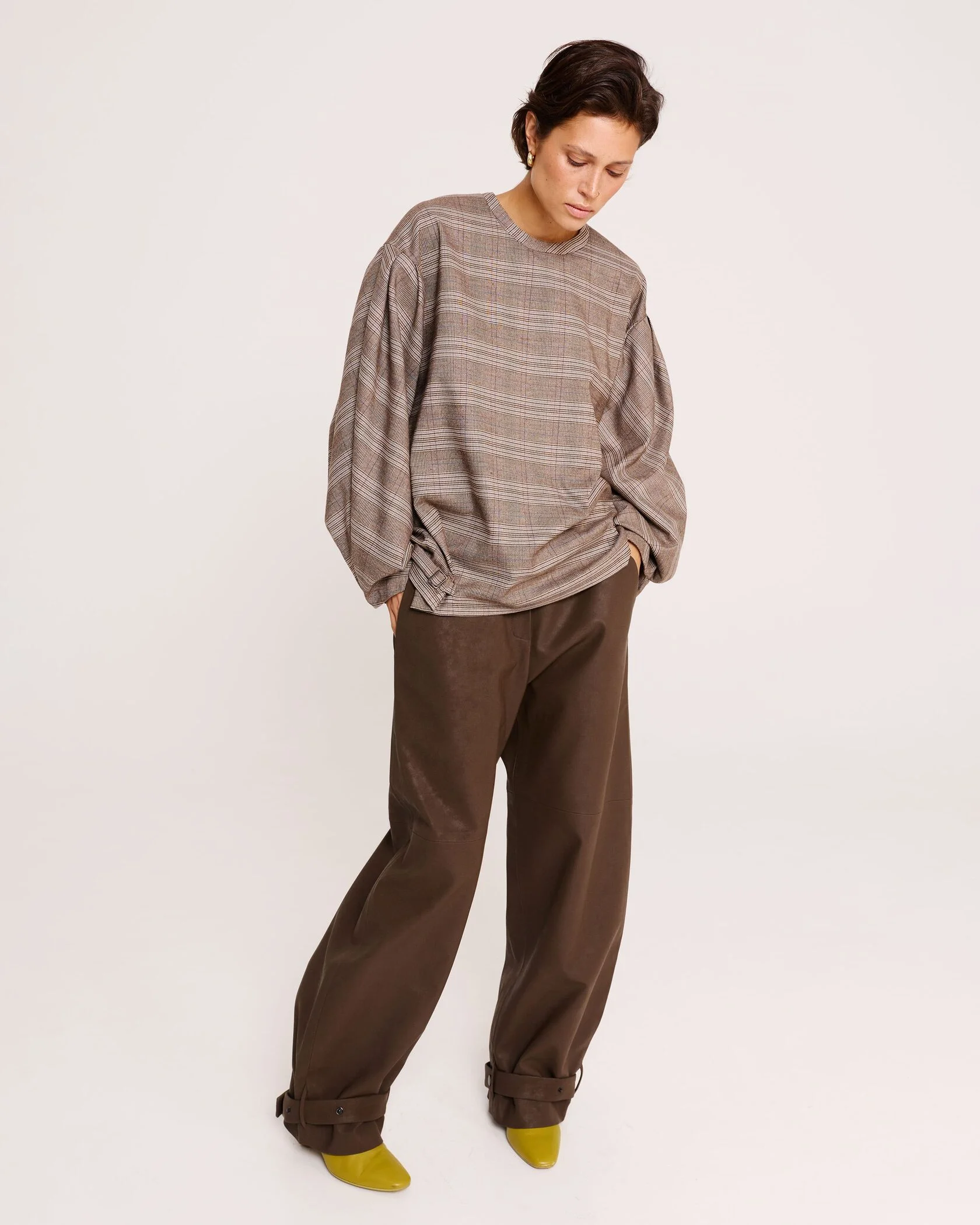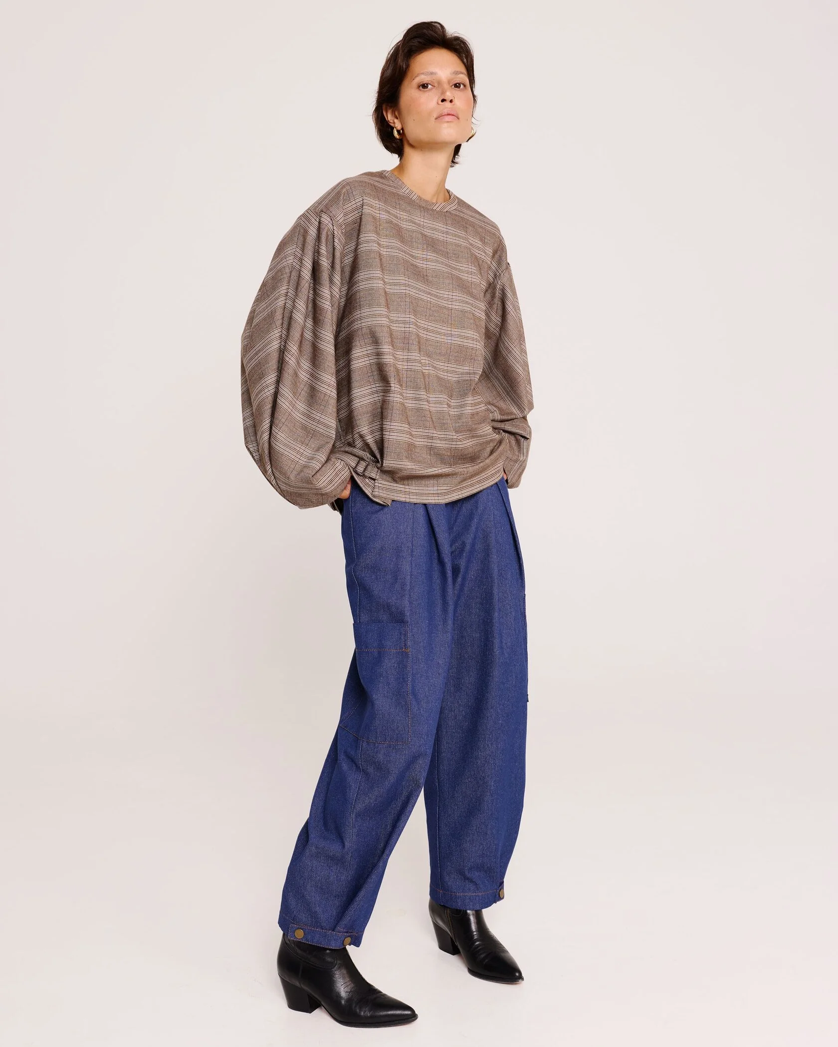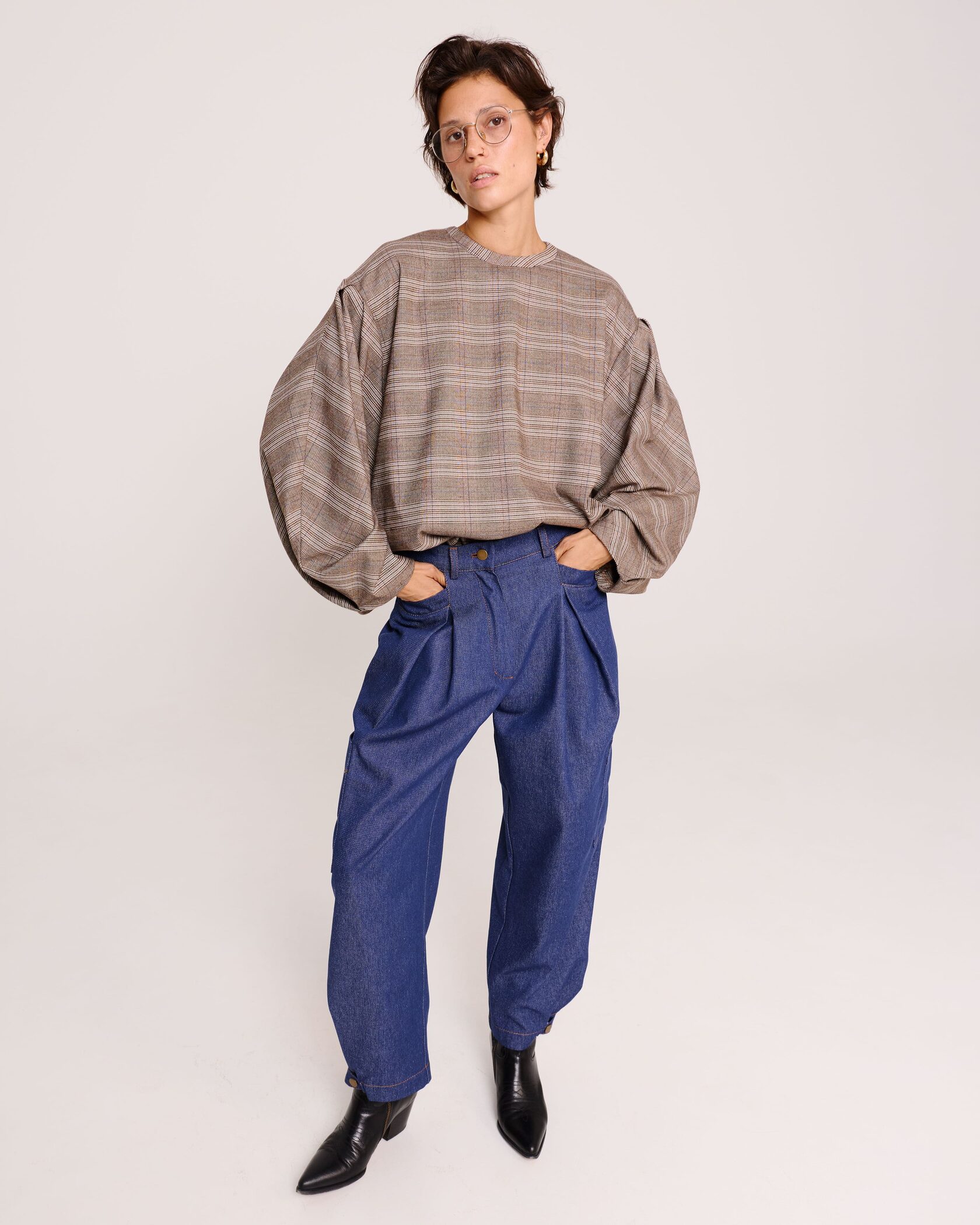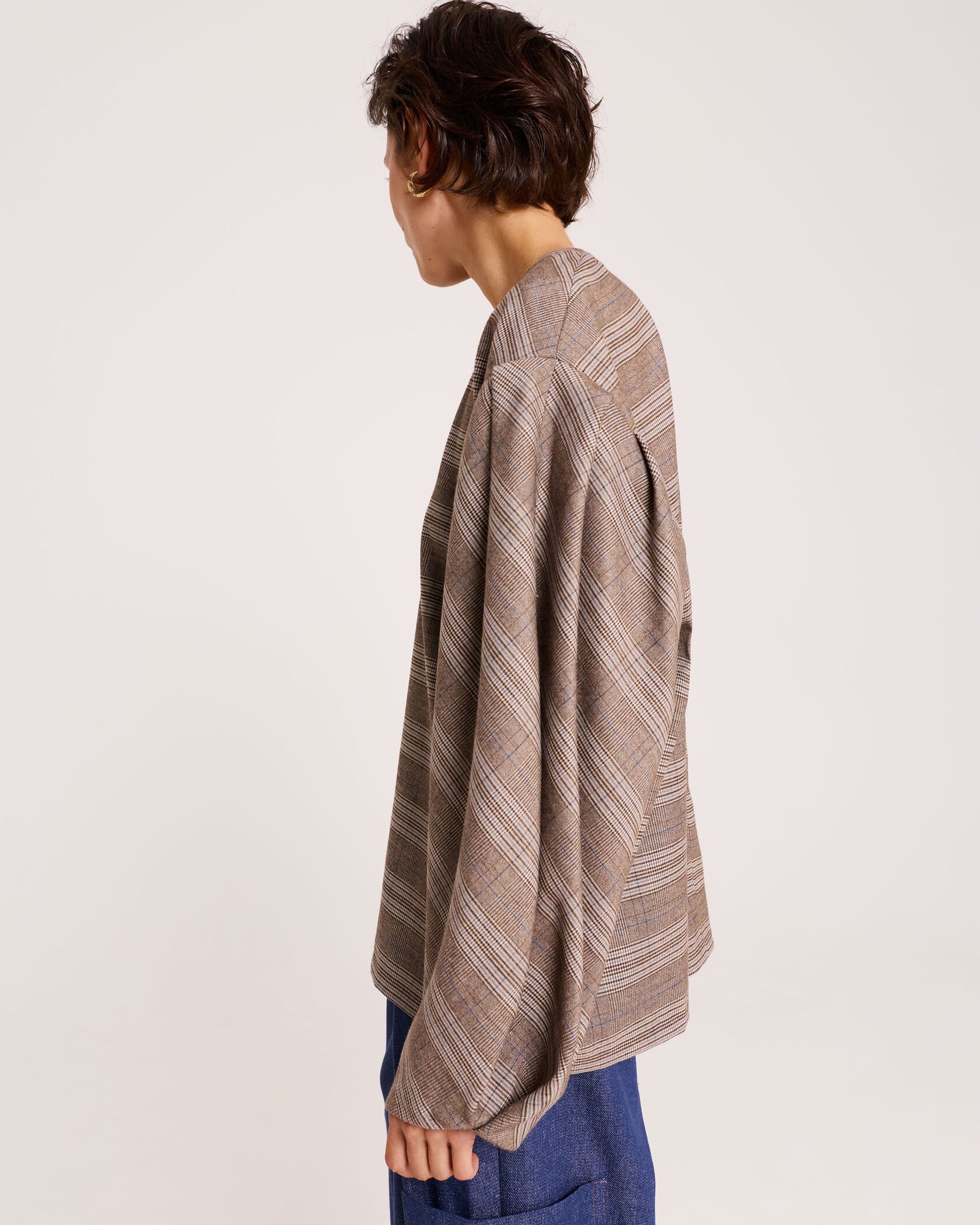 Блуза с объёмными рукавами в клетку
