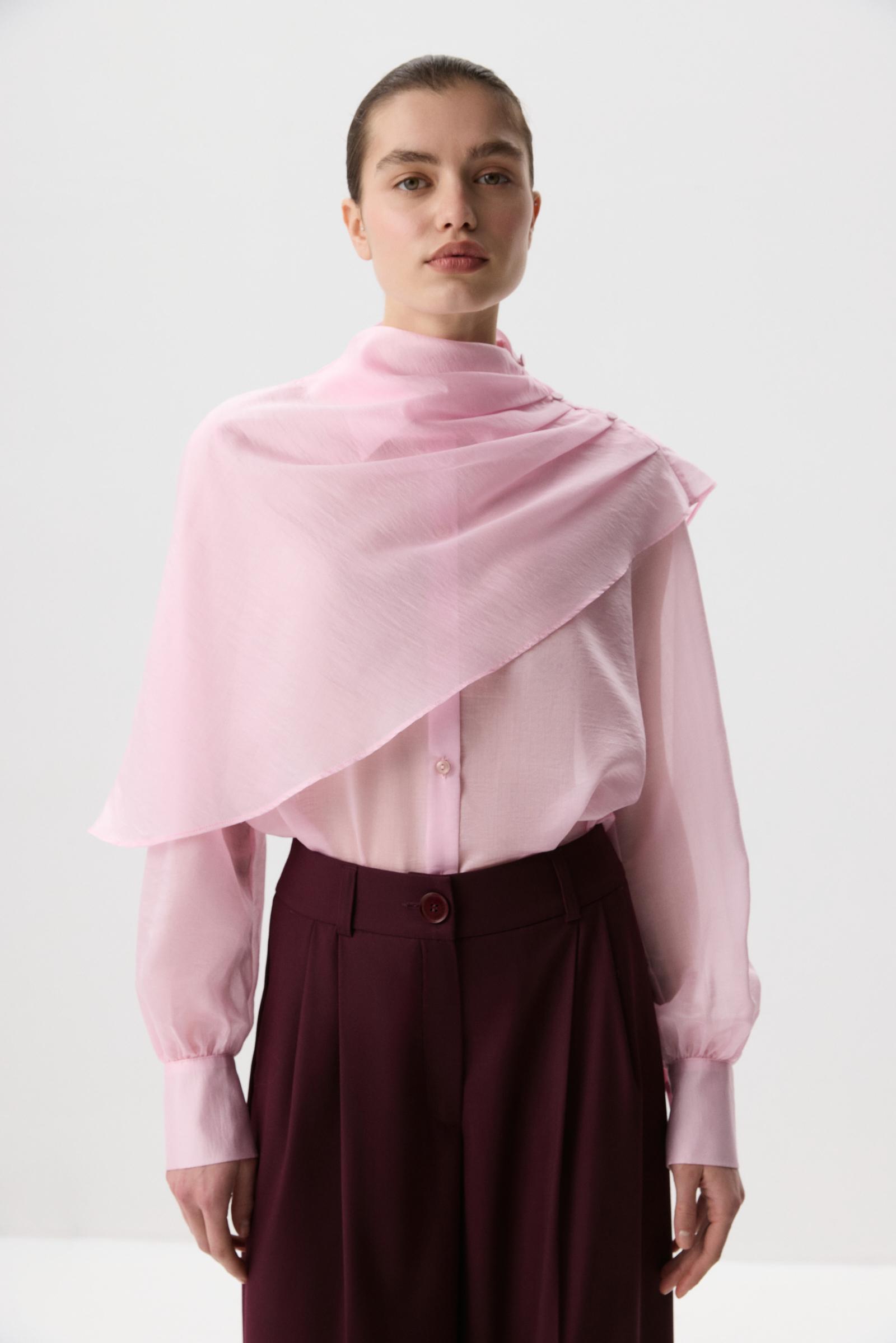 Блуза из тенселя с кейпом